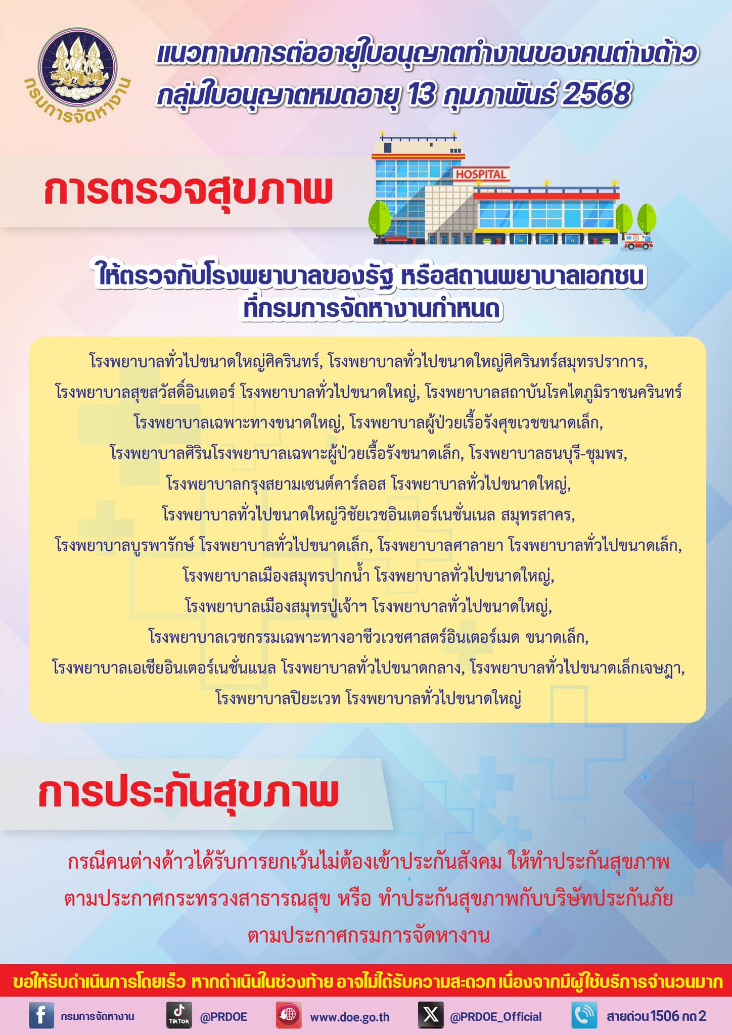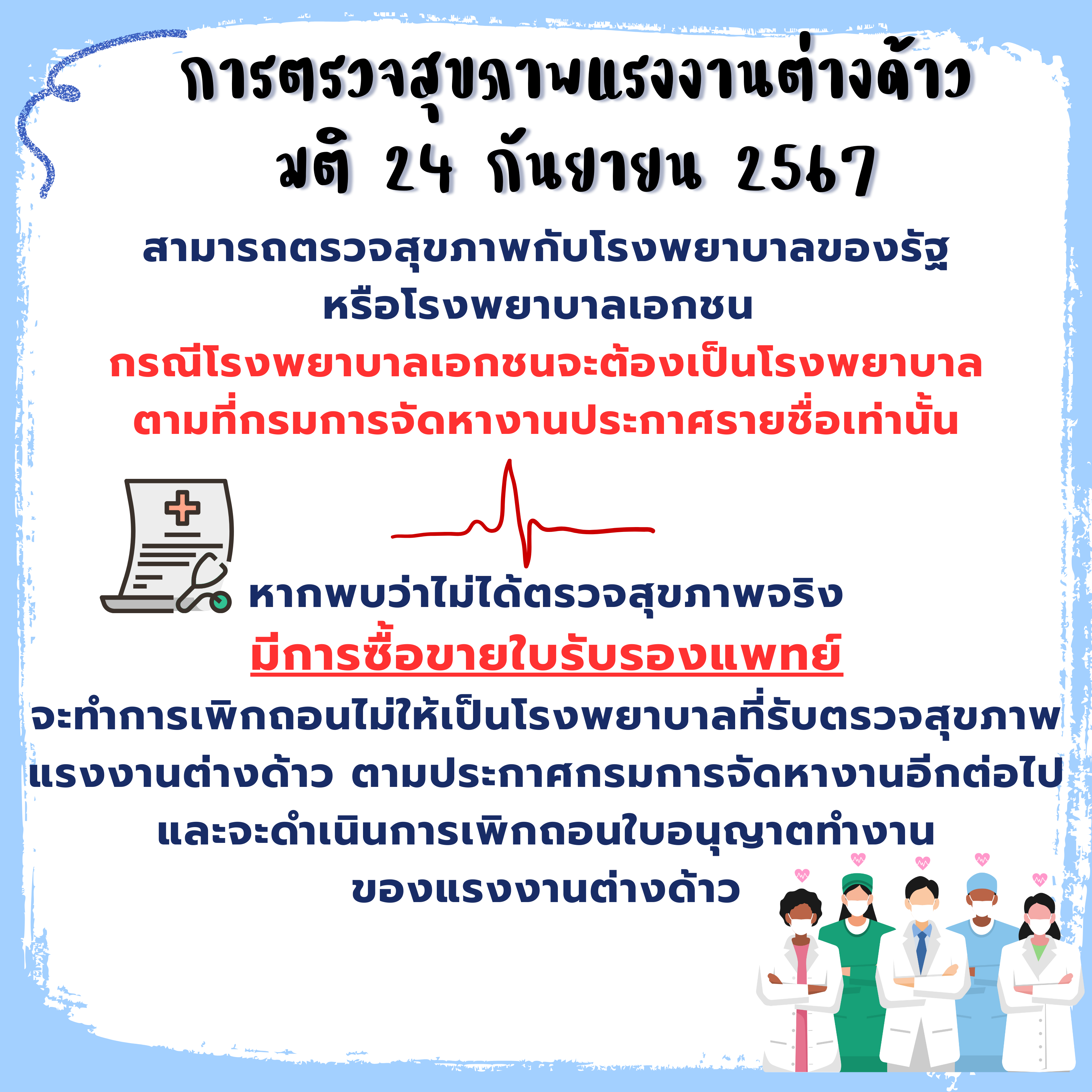รายชื่อสถานพยาบาลเอกชนที่ผ่านการพิจารณาและดำเนินการเชื่อมข้อมูลกับระบบกรมการจัดหางาน ตามมติคณะรัฐมนตรี 24 กันยายน 2567