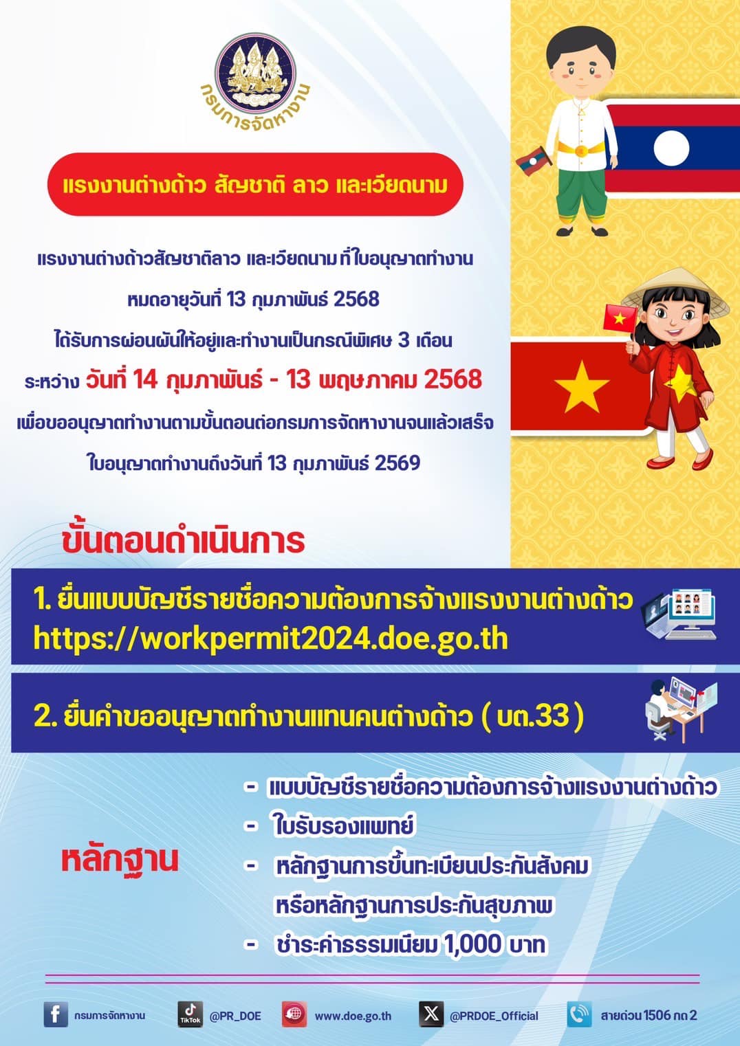 3.การต่ออายุใบอนุญาตทำงานของคนต่างด้าว สัญชาติลาว และสัญชาติเวียดนาม