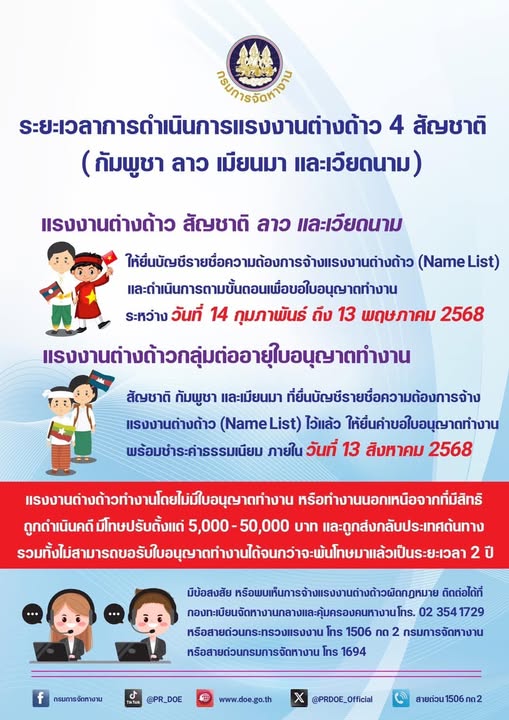 และสัญชาติกัมพูชา ในลักษณะ MOU และแนวทางการต่ออายุใบอนุญาตทำงานของสัญชาติลาว และเวียดนาม