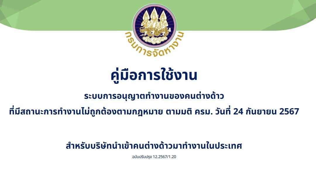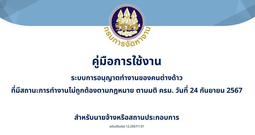 คู่มือการใช้งานระบบการอนุญาตทำงานของคนต่างด้าวที่มีสถานะไม่ถูกต้องตามกฏหมาย มติ 24 กันยายน 2567 สำหรับนายจ้าง และ บริษัทนำเข้า