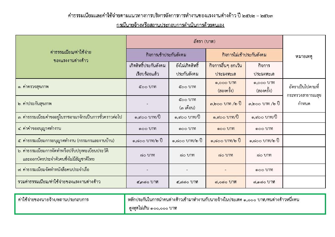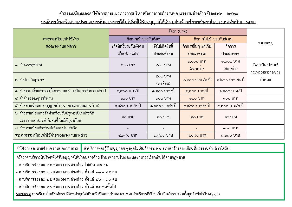 ค่าธรรมเนียมและค่าใช้จ่าย ในการต่ออายุใบอนุญาตทำงาน ของแรงงานต่างด้าว 3 สัญชาติ (กัมพูชา ลาว และเมียนมา)