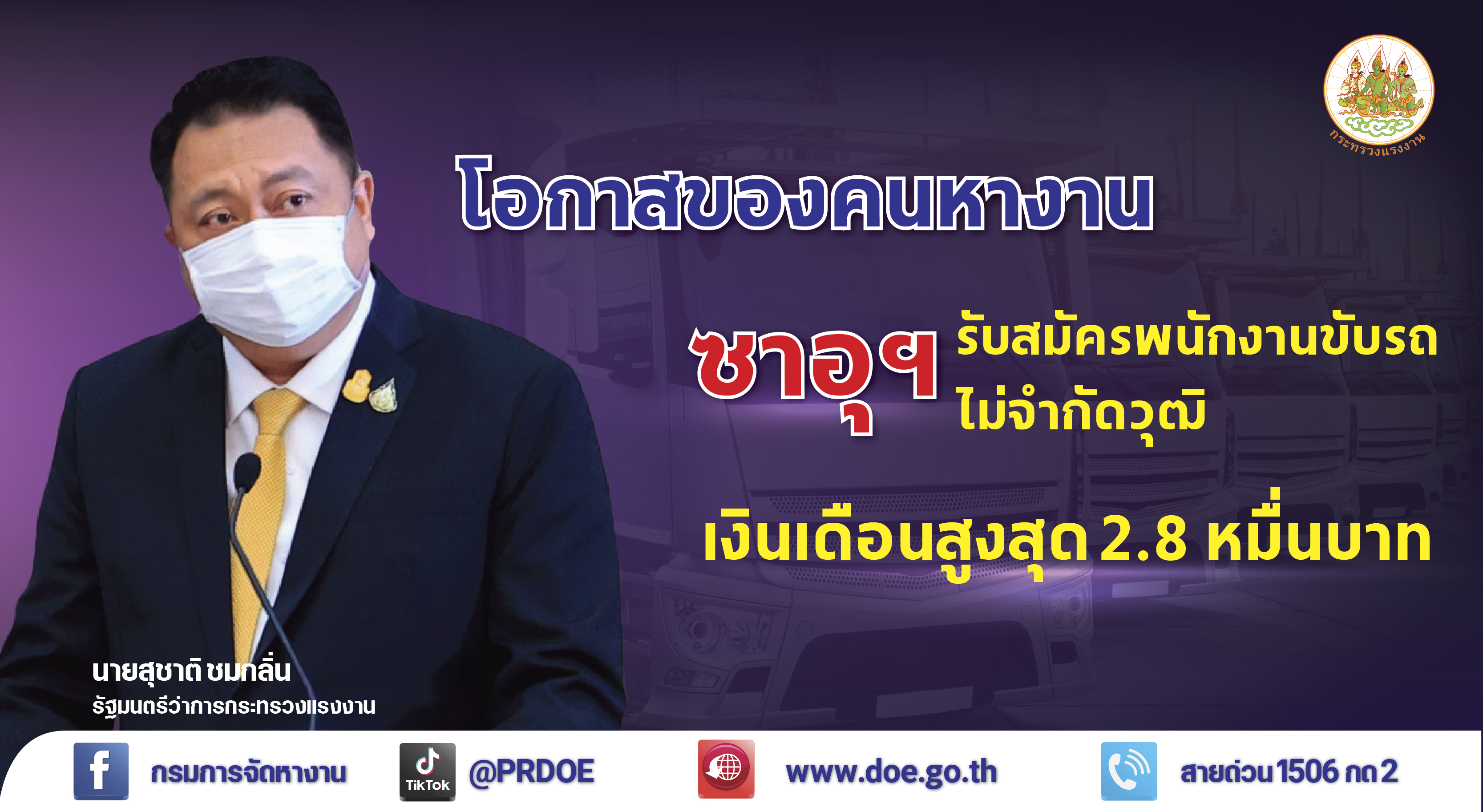 นายสุชาติ ชมกลิ่น รัฐมนตรีว่าการกระทรวงแรงงาน เปิดเผยว่า กระทรวงแรงงาน โดยกรมการจัดหางานเปิดรับสมัครคนหางานเพื่อไปทำงานซาอุดีอาระเบียกับนายจ้างบริษัท AL Madeed Contracting Est. ซึ่งประกอบกิจการก่อสร้างซ่อมแซมและบำรุงรักษาถนน ทางเท้า สิ่งอำนวยความสะดวกบนท้องถนน สะพาน และอุโมงค์ จำนวน 43 อัตรา เป็นเพศชาย อายุระหว่าง 22 - 45 ปี ไม่จำกัดวุฒิการศึกษา สามารถสื่อสารภาษาอังกฤษได้พอเข้าใจ ในตำแหน่งพนักงานขับรถและควบคุมดูแล 30 อัตรา (Heavy Drivers and Operators) ช่างเครื่องยนต์ (Mechanic) จำนวน 10 อัตรา ช่างไฟฟ้า (Electrician) จำนวน 2 อัตรา และเจ้าหน้าที่บันทึกข้อมูล (Data Entry) จำนวน 1 อัตรา โดยหากมีประสบการณ์การทำงานที่เกี่ยวข้อง 2 ปีขึ้นไป จะได้รับการพิจารณาเป็นพิเศษ ซึ่งผู้ที่ได้รับการคัดเลือกจะได้ค่าจ้างเดือนละ 2,000 – 3,000 ริยาล หรือประมาณ 18,766 – 28,149 บาท (อัตราแลกเปลี่ยนเงินตราต่างประเทศ ณ วันที่ 17 สิงหาคม 2565) โดยนายจ้างจะจัดเตรียมที่พักให้ฟรี จ่ายค่าตั๋วโดยสารเครื่องบินเที่ยวไปทำงานครั้งแรก ค่ารักษาพยาบาลและประกันสุขภาพ ซึ่งคนหางาน ที่สนใจสามารถสมัครได้ระหว่างวันที่ 29 สิงหาคม – 9 กันยายน 2565 ในวันและเวลาราชการ