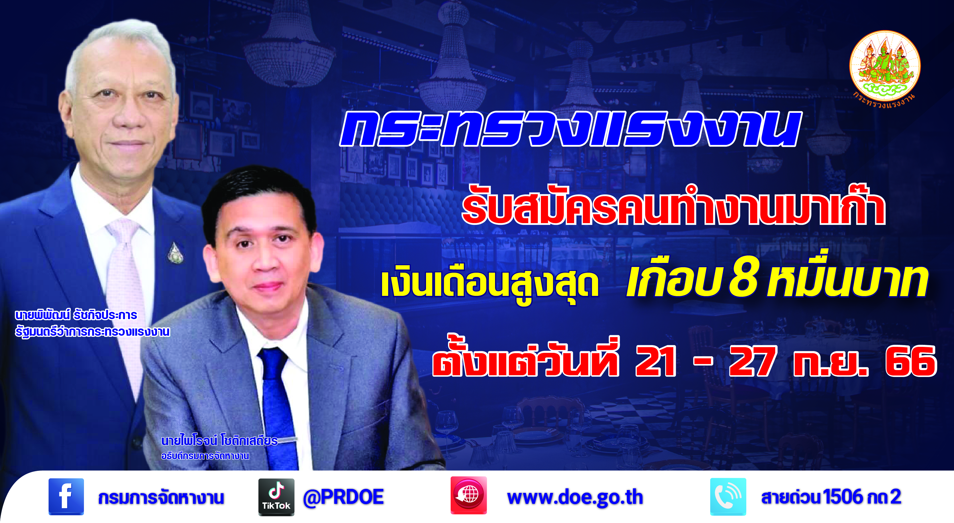 นายไพโรจน์ โชติกเสถียร อธิบดีกรมการจัดหางาน เปิดเผยว่า กรมการจัดหางาน เปิดรับสมัครคนไทยไปทำงานในเขตบริหารพิเศษมาเก๊า กับนายจ้าง บริษัท Galaxy Entertainment Group ซึ่งประกอบกิจการโรงแรม คาสิโน และร้านอาหาร จำนวน 7 ตำแหน่ง รวม 34 อัตรา ได้แก่ พนักงานต้อนรับลูกค้าวีไอพี กัปตัน พนักงานเสิร์ฟ บาร์เทนเดอร์/บาร์แอทเทนแดน พนักงานฝ่ายต้อนรับวีไอพี พนักงานนวดสปา และพนักงานนวดฝ่าเท้า เงินเดือนอยู่ระหว่าง 50,370 - 78,840 บาท โดยนายจ้างจะจ่ายค่าโดยสารเครื่องบินไป - กลับ เมื่อทำงานสิ้นสุดสัญญาจ้าง ช่วยจ่ายค่าที่พักเดือนละ 500 เหรียญมาเก๊า จัดอาหารในช่วงเวลาทำงาน ทำประกันสุขภาพ และสวัสดิการอื่นๆ ตามกฎหมายแรงงานมาเก๊ากำหนด ซึ่งการรับสมัครในครั้งนี้เป็นการดำเนินการเพื่อจัดส่งคนหางานไปทำงานต่างประเทศโดยวิธีรัฐจัดส่ง คนหางานไม่เสียค่าสมัครหรือค่าบริการใดๆทั้งสิ้น ผู้ที่ได้รับการคัดเลือกให้ไปทำงานจ่ายเพียงค่าใช้จ่ายที่จำเป็น ได้แก่ ค่าถ่ายรูป ค่าทำหนังสือเดินทาง (กรณียังไม่มี) ค่าตรวจสุขภาพ ค่าตรวจสอบประวัติอาชญากรรม และค่าสมัครสมาชิกกองทุนเพื่อช่วยเหลือคนหางานไปทำงานในต่างประเทศ รวมค่าใช้จ่าย ประมาณ 5,500 บาท โดยสามารถศึกษารายละเอียดการสมัครสอบ และดาวน์โหลดแบบฟอร์มใบสมัคร ได้ที่เว็บไซต์ doe.go.th/overseas หัวข้อ “ข่าวประกาศรับสมัคร” โดยยื่นใบสมัครทางอีเมล ตั้งแต่วันที่ 21 - 27 กันยายน 2566 ไม่เว้นวันหยุดราชการ
