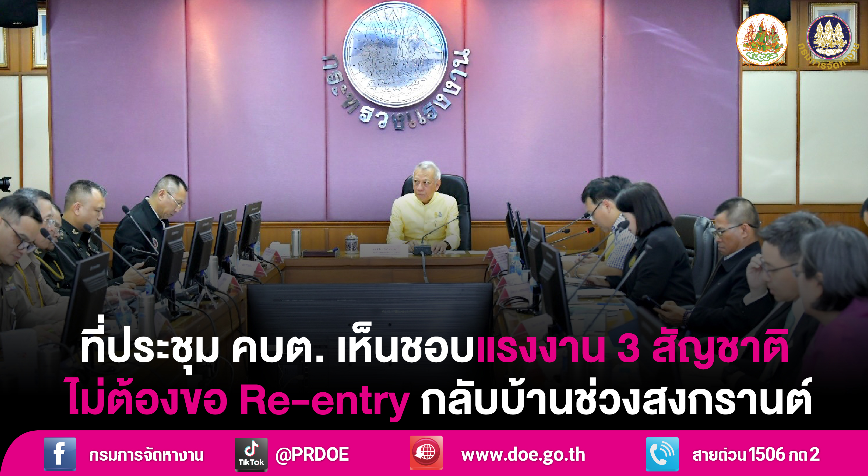 เดินทางกลับเข้าประเทศไทยหลังจากวันที่ 15 พฤษภาคม 2567 หรือยังไม่ทราบกำหนดการเดินทางกลับเข้าประเทศไทยที่แน่ชัด จะต้องยื่นคำขอ Re-Entry ตามปกติ มิฉะนั้นการอนุญาตให้อยู่ในราชอาณาจักรของคนต่างด้าวผู้นั้นเป็นอันสิ้นสุด ซึ่งจากนี้กรมการจัดหางานจะเสนอต่อคณะรัฐมนตรีเพื่อขอความเห็นชอบ ในระหว่างนี้กระทรวงมหาดไทย สำนักงานตรวจคนเข้าเมือง จะเร่งยกร่างกฎกระทรวงและประกาศกระทรวงมหาดไทย ให้แล้วเสร็จและแจ้งแนวทางให้นายจ้าง สถานประกอบการ และแรงงาน 3 สัญชาติทราบต่อไป