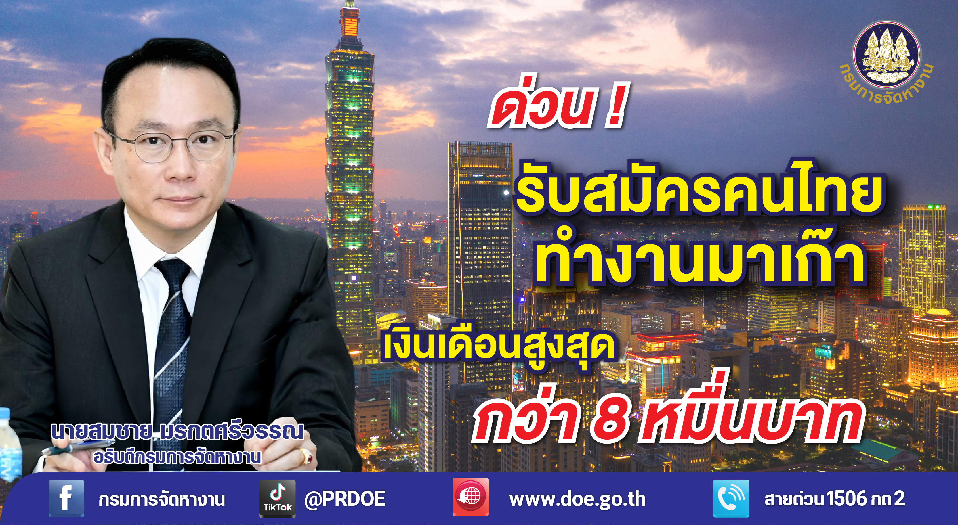 นายสมชาย มรกตศรีวรรณ อธิบดีกรมการจัดหางาน เปิดเผยว่า กรมการจัดหางาน เปิดรับสมัครคนไทยไปทำงานในเขตบริหารพิเศษมาเก๊า กับนายจ้างบริษัท MGM Grand Paradise Limited ซึ่งประกอบกิจการสถานคาสิโน ร้านอาหาร และโรงแรม ตั้งอยู่ที่ MGM MACAU Building, Avenida Dr. Sun Yat Sen, N.1101, NAPE, Macau จำนวน 7 ตำแหน่ง รวม 46 อัตรา ได้แก่ พนักงานบริการอาหารและเครื่องดื่ม พนักงานบริการอาหารและเครื่องดื่ม วีไอพี พนักงานยกกระเป๋า บัตเลอร์ พนักงานต้อนรับ พนักงานต้อนรับส่วนหน้า วีไอพี และพนักงานบริการลูกค้า เงินเดือนอยู่ระหว่าง 53,469 – 85,916 บาท โดยนายจ้างจะจ่ายค่าโดยสารเครื่องบินไป - กลับ เมื่อทำงานสิ้นสุดสัญญาจ้าง ช่วยจ่ายค่าที่พักเดือนละ 500 เหรียญมาเก๊า จัดอาหารให้ในช่วงเวลาทำงาน มีค่าล่วงเวลา และสวัสดิการตามกฎหมายแรงงานมาเก๊า ผู้สนใจสามารถยื่นใบสมัครได้ที่เว็ปไซต์ toea.doe.go.th ได้ตั้งแต่วันที่ 13 - 22 พฤษภาคม 2567 ตลอด 24 ชั่วโมง โดยไม่เว้นวันหยุดราชการ