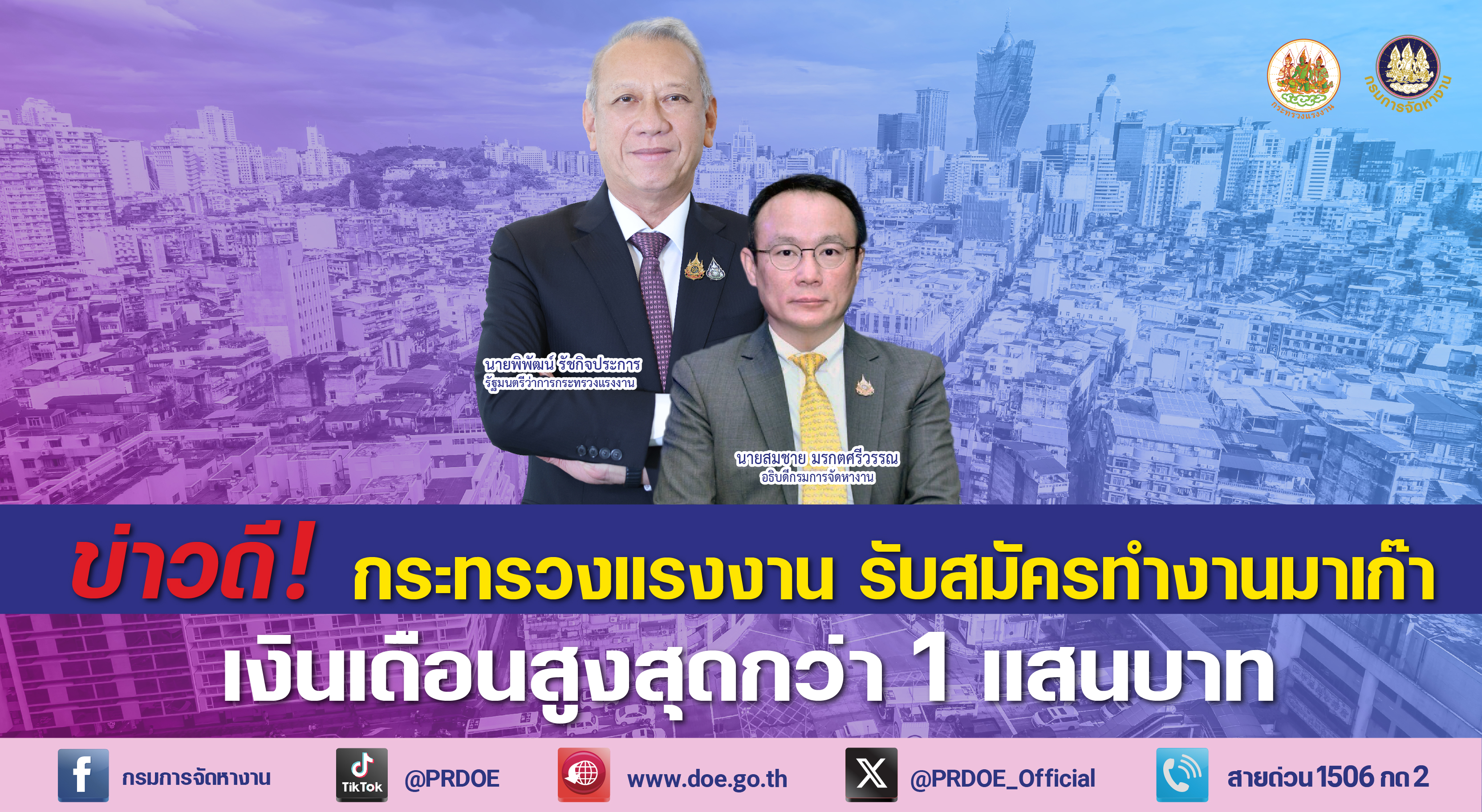 นายสมชาย มรกตศรีวรรณ อธิบดีกรมการจัดหางาน กล่าวว่า กระทรวงแรงงาน โดยกรมการจัดหางาน ได้รับการประสานจากสำนักงานแรงงาน ณ เมืองฮ่องกงว่า บริษัท COD Resorts Limited ซึ่งประกอบกิจการโรงแรมรีสอร์ทครบวงจร เปิดรับสมัครคนไทยไปทำงานในเขตบริหารพิเศษมาเก๊า จำนวน 10 ตำแหน่ง 85 อัตรา ได้แก่ ผู้ช่วยผู้จัดการร้านอาหาร จำนวน 2 อัตรา พนักงานลูกค้าสัมพันธ์ จำนวน 5 อัตรา พนักงานต้อนรับลูกค้า จำนวน 5 อัตรา หัวหน้าแผนกบริการอาหารและเครื่องดื่ม จำนวน 5 อัตรา บัตเลอร์ จำนวน 20 อัตรา พนักงานแผนกต้อนรับส่วนหน้า จำนวน 10 อัตรา พนักงานแผนกต้อนรับ จำนวน 10 อัตรา พนักงานนวดสปา จำนวน 1 อัตรา พนักงานบริการอาหารและเครื่องดื่ม จำนวน 20 อัตรา พนักงานยกสัมภาระ จำนวน 7 อัตรา อัตราเงินเดือน อยู่ระหว่าง47,311 – 116,127 บาท โดยนายจ้างจะจ่ายค่าโดยสารเครื่องบินไป - กลับ เมื่อทำงานสิ้นสุดสัญญาจ้าง ช่วยจ่ายค่าที่พักเดือนละ 500 เหรียญมาเก๊า จัดอาหารให้ในช่วงเวลาทำงาน มีค่าล่วงเวลา มีประกันสุขภาพและสวัสดิการตามที่กฎหมายแรงงานมาเก๊ากำหนด สำหรับผู้สนใจสามารถสมัครทางเว็บไซต์ toea.doe.go.th โดยลงทะเบียนระบบอิเล็กทรอนิกส์การบริหารแรงงานไทยไปต่างประเทศ กรอกข้อมูลเพื่อลงทะเบียนคนหางาน และดำเนินการสมัครไปทำงาน โดยเลือกหัวข้อ “สมัครไปทำงานโดยรัฐจัดส่ง” และเลือกรายการ “การรับสมัครคนหางานเพื่อไปทำงานในเขตบริหารพิเศษมาเก๊ากับนายจ้างบริษัท COD Resorts Limited” สมัครได้ตั้งแต่บัดนี้ถึง 6 มกราคม 2568 ตลอด 24 ชั่วโมง ไม่เว้นวันหยุดราชการ