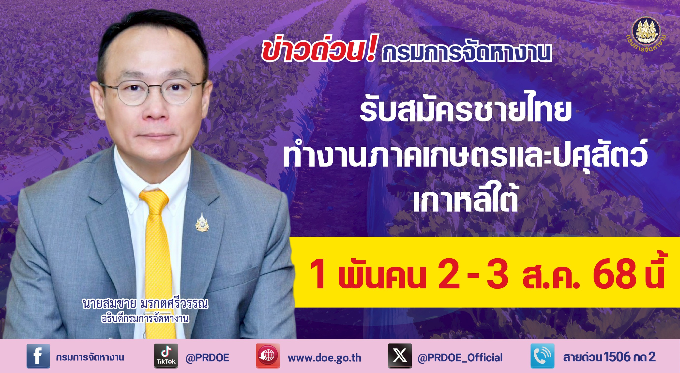 นายสมชาย มรกตศรีวรรณ อธิบดีกรมการจัดหางาน เปิดเผยว่า กรมการจัดหางานประกาศรับสมัครทดสอบภาษาเกาหลีและทักษะการทำงาน