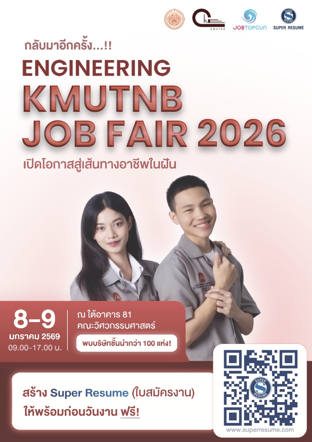 คณะวิศวกรรมศาสตร์ มหาวิทยาลัยเทคโนโลยีพระจอมเกล้าพระนครเหนือ ขอเชิญเข้าร่วมงานนัดพบแหล่งงาน คณะวิศวกรรมศาสตร์ ประจำปี 2569 (Engineering KMUTNB JOB FAIR 2026)