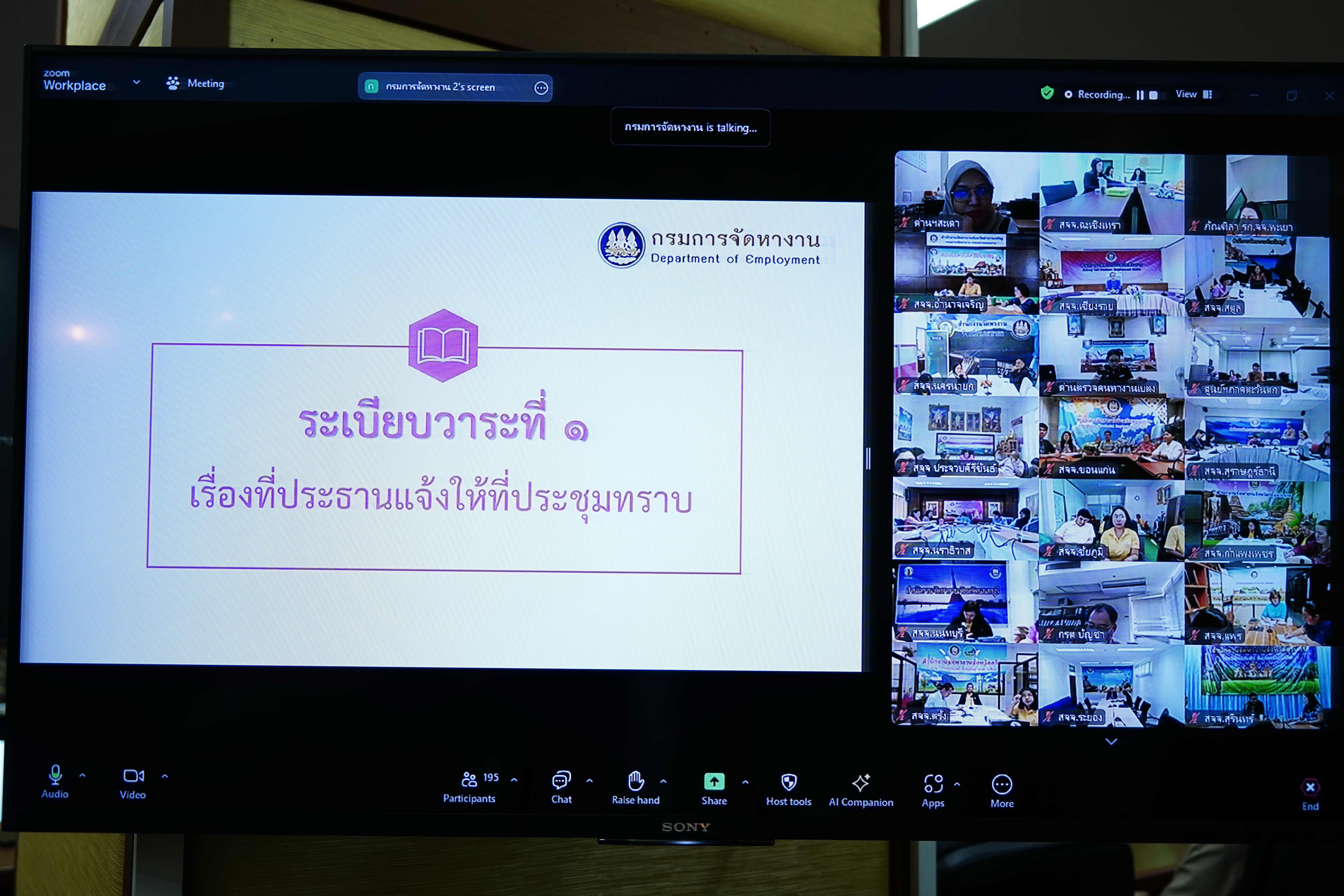 ทั้งนี้ ในที่ประชุมมีการนำเสนอผลการดำเนินงานตามภารกิจกรมการจัดหางาน จำนวน 2 หน่วยงาน ได้แก่ กองบริหารข้อมูลตลาดแรงงาน และกองทะเบียนจัดหางานกลางและคุ้มครองคนหางาน