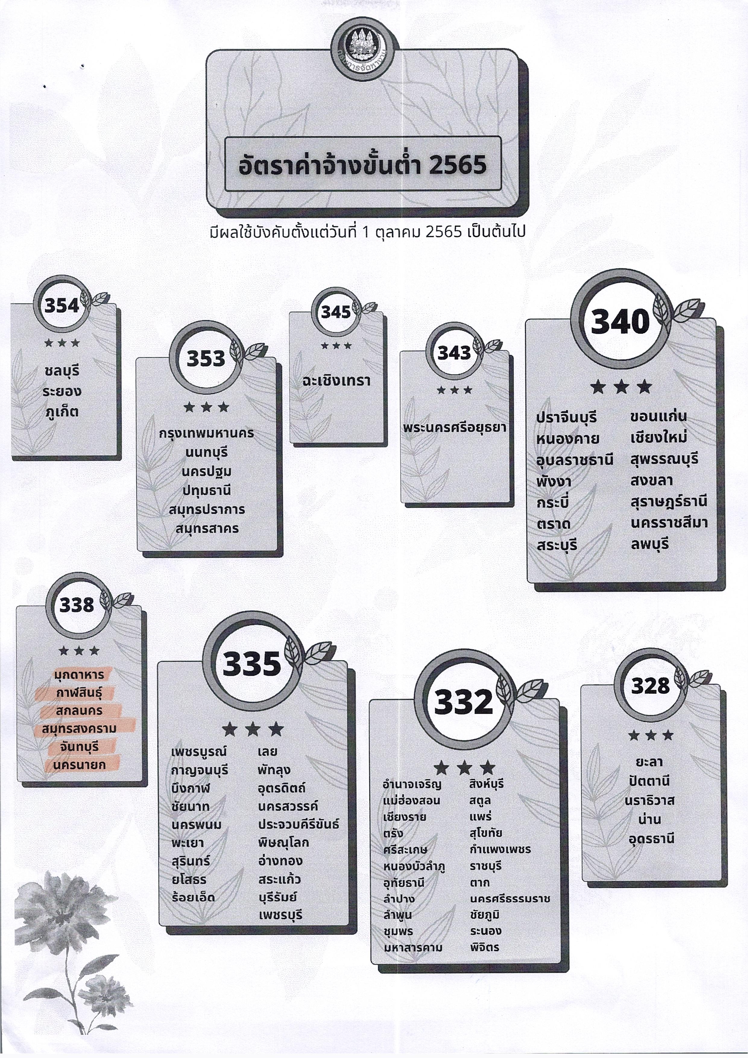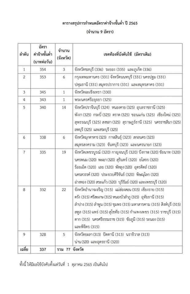 1. ค่าจ้าง 354 บาท มี 3 จังหวัด คือ ชลบุรี ระยอง และภูเก็ต