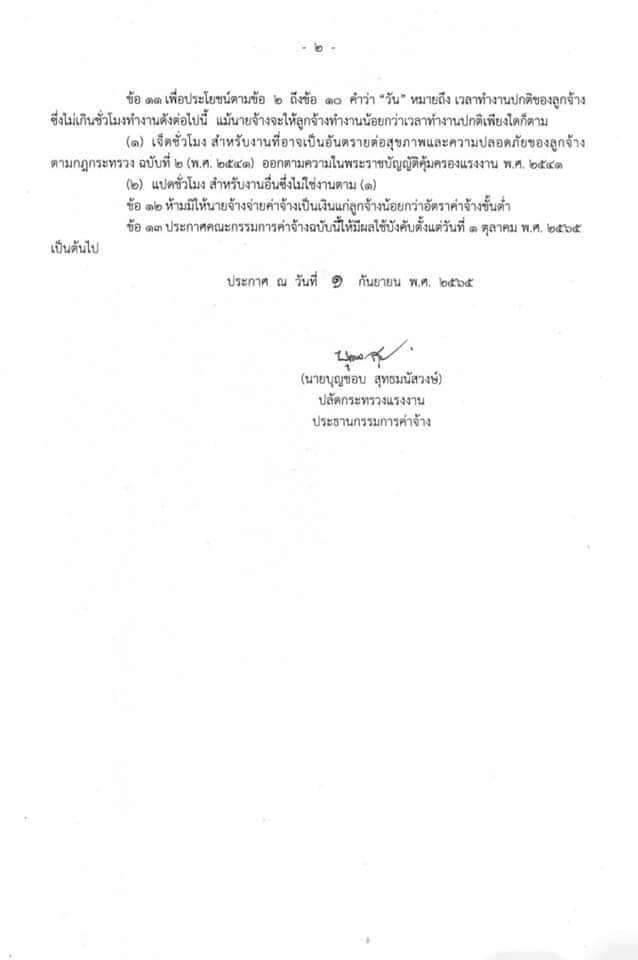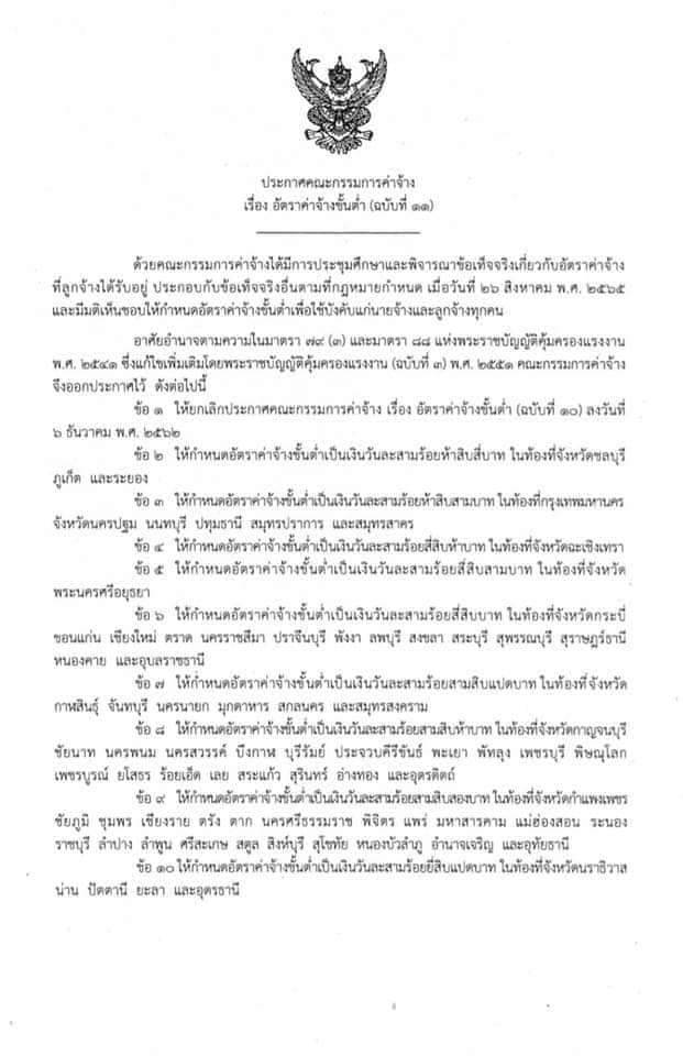 วันที่ 26 สิงหาคม 2565 มติคณะกรรมการค่าจ้าง ชุดที่ 21 ครั้งที่ 8/2565 พิจารณาและมีมติการขึ้นอัตราค่าจ้างขั้นต่ำ ประจำปี 2565 โดยได้ข้อสรุปร่วมกันในการปรับขึ้น ซึ่งแบ่งเป็น 9 อัตรา ได้แก่