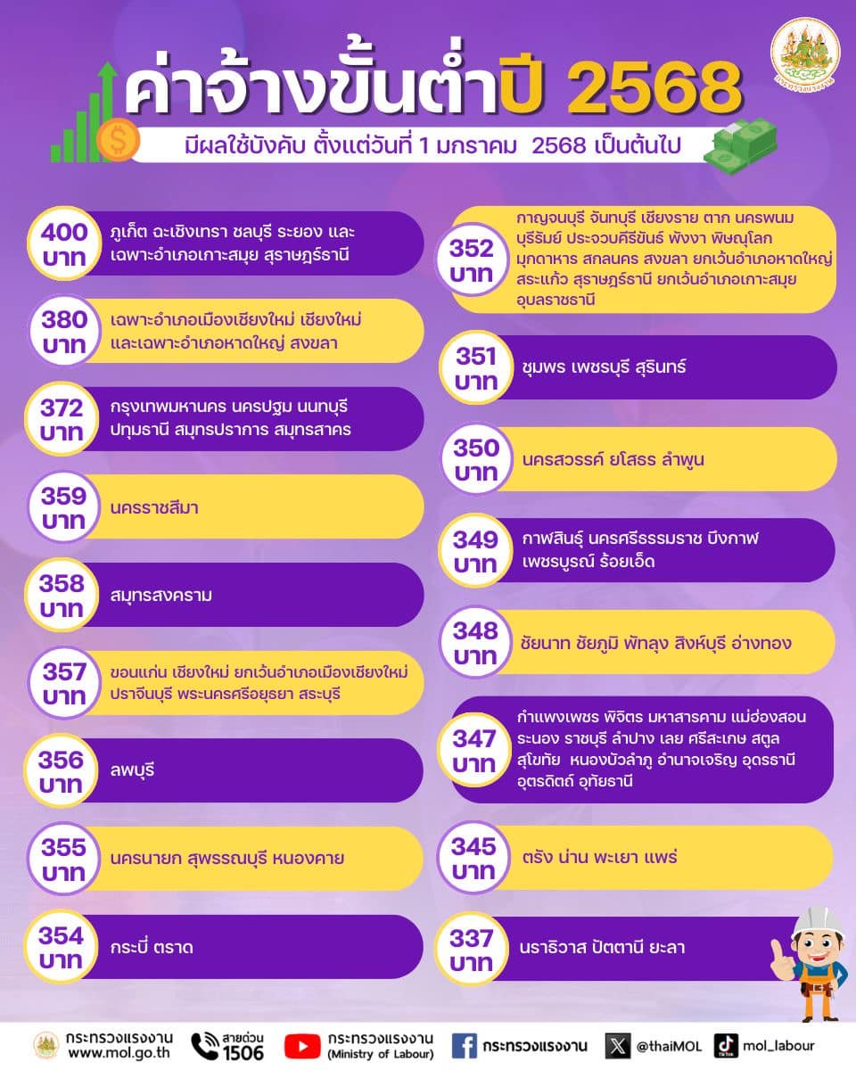 ประกาศค่าแรงขั้นต่ำ ปี 2568