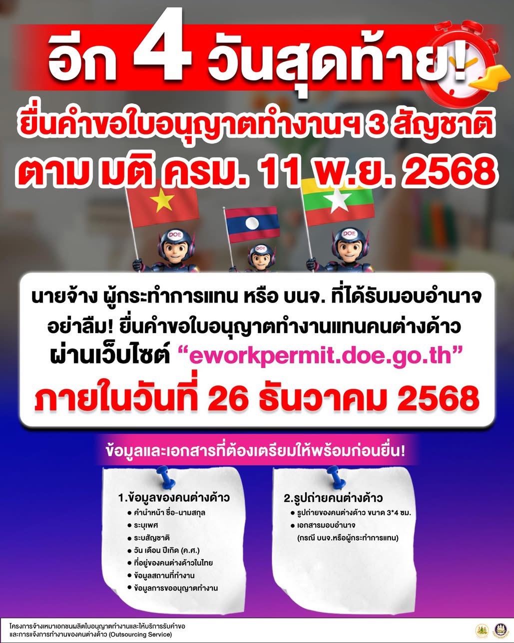 แรงงานต่างด้าว 3 สัญชาติ ยื่นขออนุญาตทำงาน ภายใน 26 ธ.ค. 68 นี้ RSS