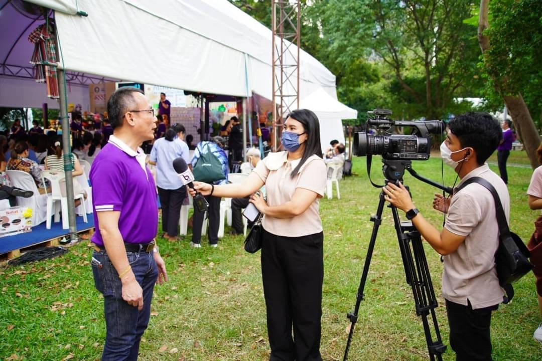 ในการนี้ รก.อธิบดีกรมการจัดหางาน ได้ให้สัมภาษณ์สื่อมวลชน สถานีโทรทัศน์ NBT เชิญชวนพี่น้องผู้ใช้แรงงาน นายจ้าง ลูกจ้าง และประชาชนทั่วไปเข้าเยี่ยมชมบูธ เล่นเกมบิงโก ที่ร้านกาชาดของกระทรวงแรงงาน