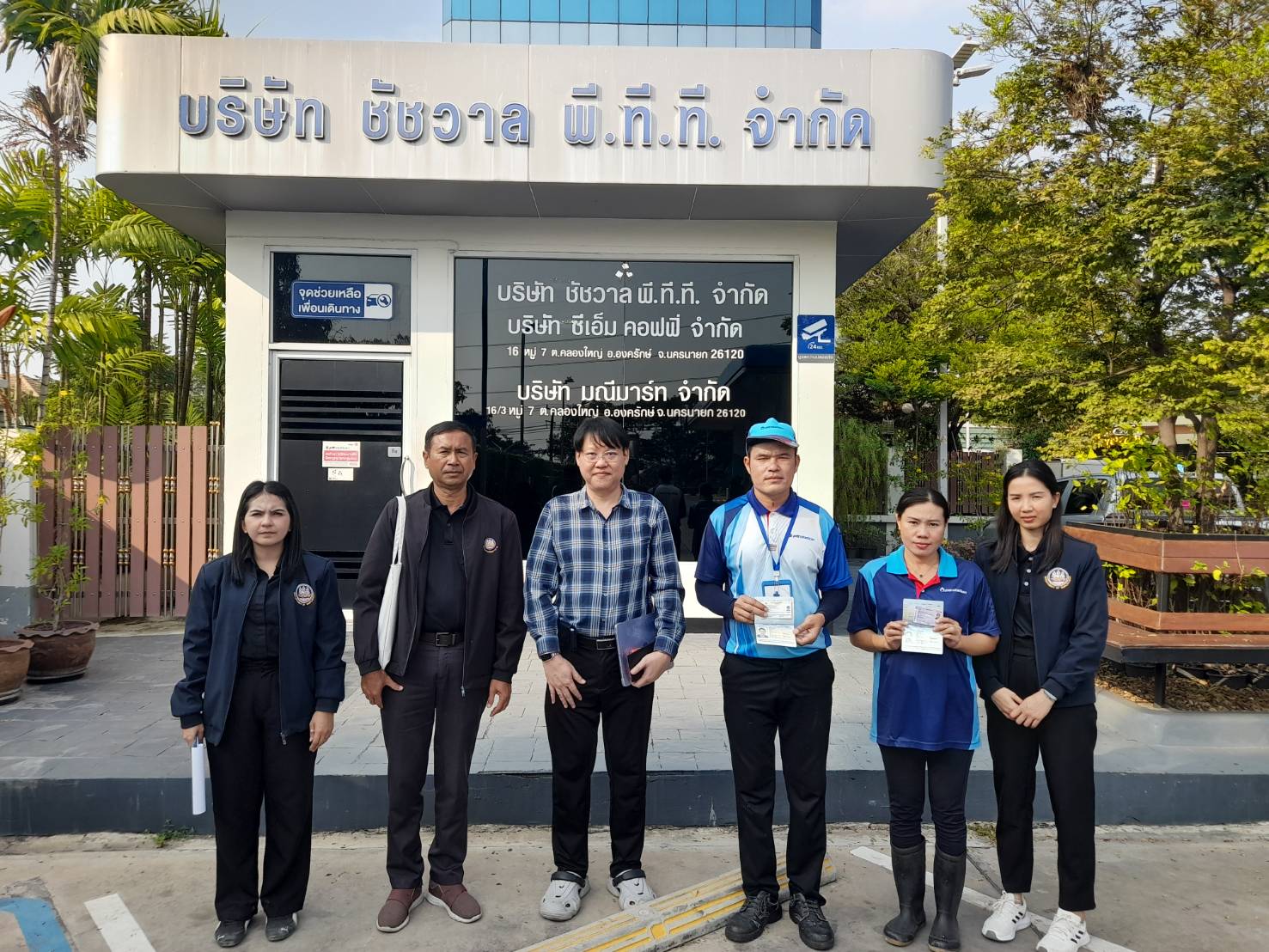 4. บริษัทชัชวาล พี.ที.ที. จำกัด สถานที่ตั้ง 16 หมู่ที่ 7 ตำบลคลองใหญ่ อำเภอองครักษ์ จังหวัดนครนายก ประกอบกิจการสถานีบริการน้ำมัน แก๊ส เชื้อเพลิง พบลูกจ้างทั้งหมด 19 คน เป็นแรงงานไทย 12 คน (ชาย 9 คน หญิง 3 คน) สัญชาติลาว 7 คน (ชาย 3 คน หญิง 4 คน)