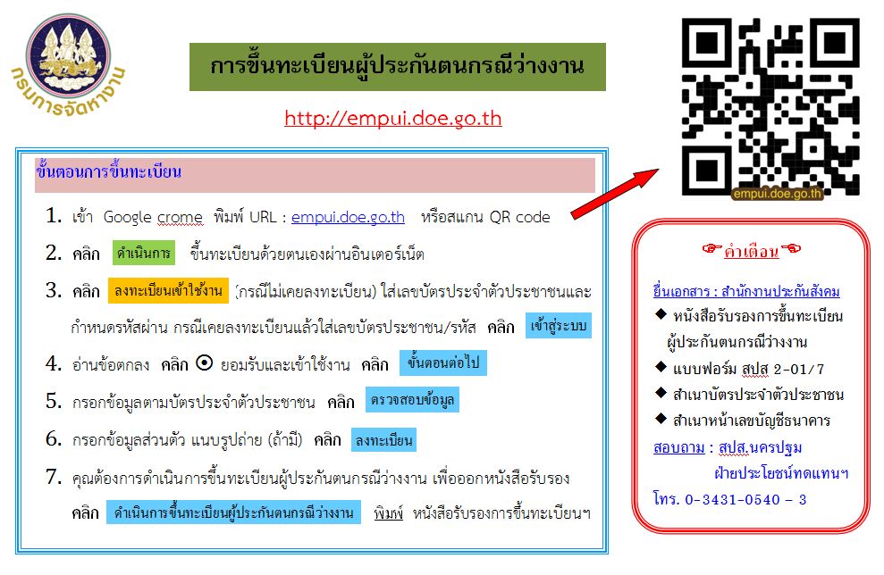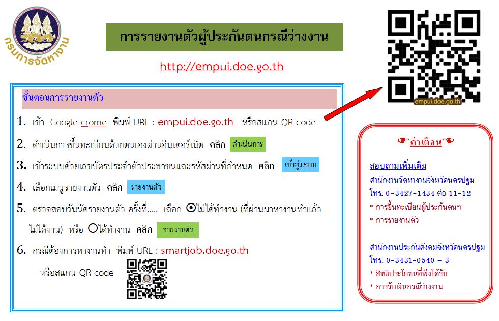 สำนักงานจัดหางานจังหวัดนครปฐม ให้บริการ On line ช่วงสถานการณ์การแพร่ระบาดโรคติดเชื้อไวรัส Covid-19 หรือสแกน OR code ด้านล่างเข้าใช้บริการตลอด 24 ชั่งโมง