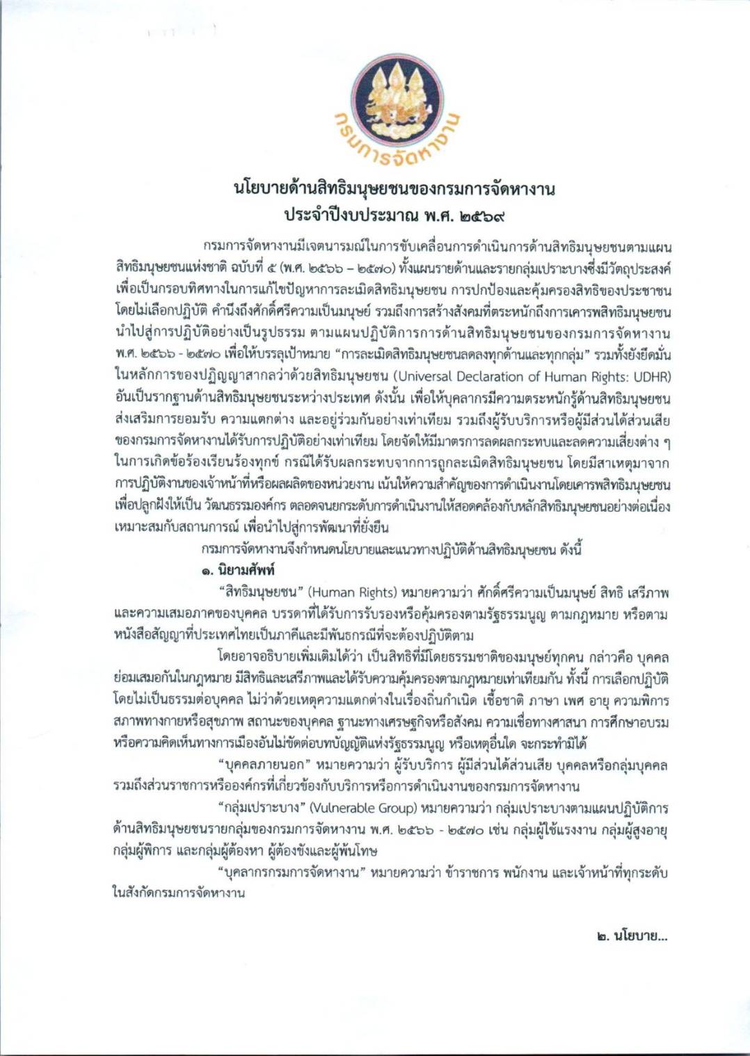 นโยบายด้านสิทธิมนุษยชนของกรมการจัดหางาน ประจำปีงบประมาณ พ.ศ. 2569 RSS