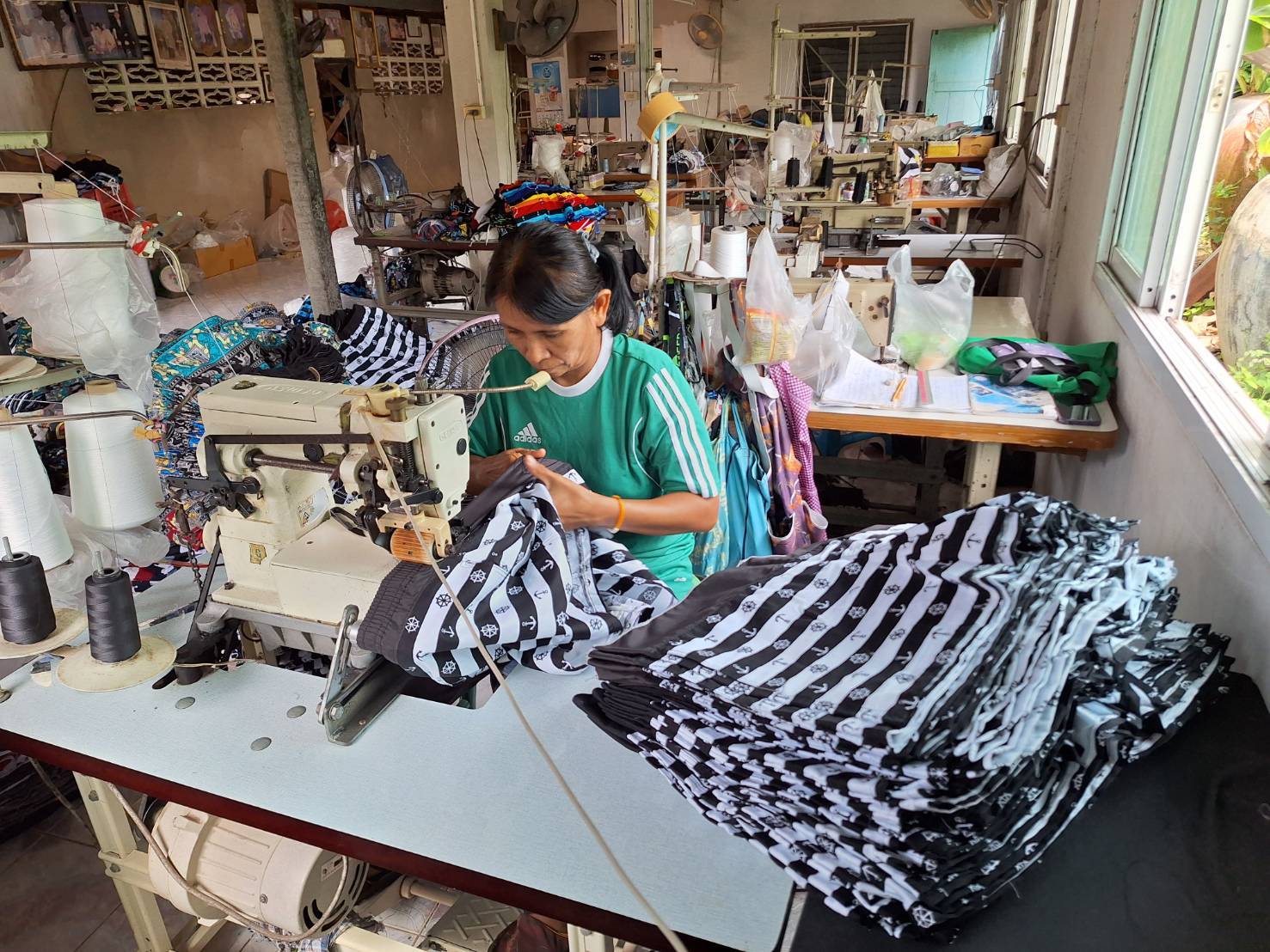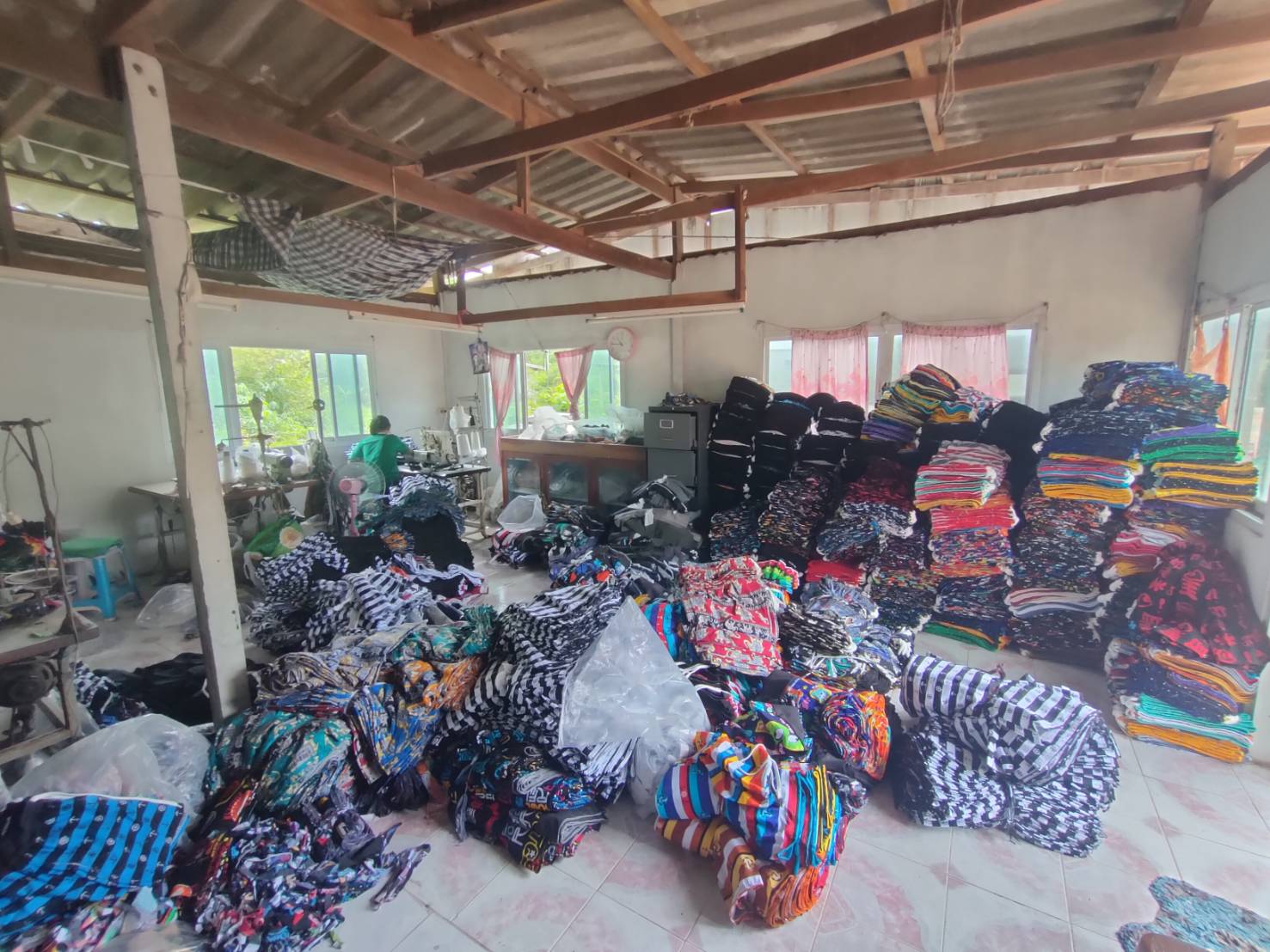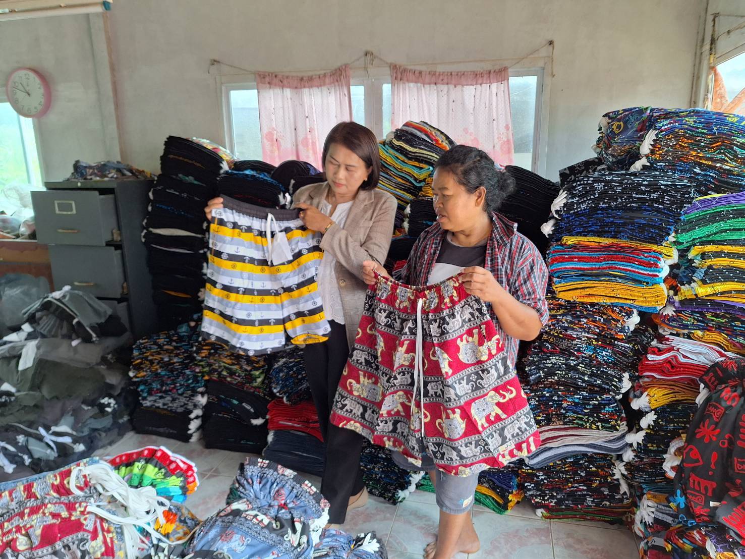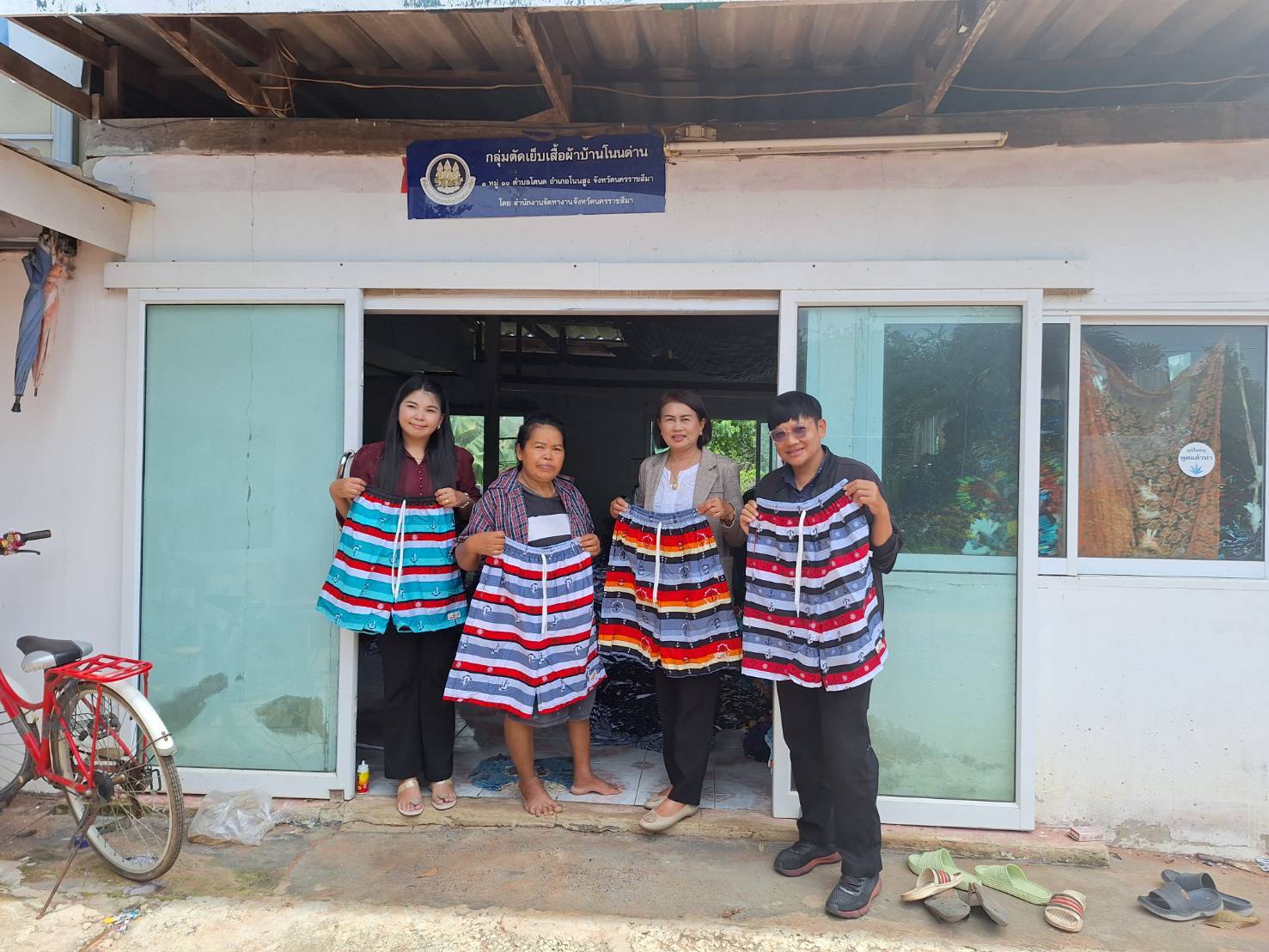 วันที่ 21 สิงหาคม 2567 ฝ่ายส่งเสริมการมีงานทำ งานแนะแนวอาชีพ ลงพื้นที่อำเภอโนนสูง เพื่อออกเยี่ยมและติดตามผลการดำเนินงานของกลุ่มผู้รับงานไปทำที่บ้าน ชื่อกลุ่มตัดเย็บเสื้อผ้าบ้านโนนด่าน (เย็บกางเกงเจเจ) ณ เลขที่ 1 หมู่ที่ 11 ตำบลโตนด อำเภอโนนสูง จังหวัดนครราชสีมา โดยกลุ่มตัดเย็บเสื้อผ้าบ้านโนนด่าน ยังคงรับงานเย็บกางเกงเจเจ จาก หจก.ไบรท์สไตล์ สปอร์ต ซึ่งเป็นผู้ว่าจ้างอย่างต่อเนื่อง ทำให้สมาชิกมีรายได้ต่อเดือนประมาณเดือนละ 5,000 - 10,000 บาท ถือเป็นการเพิ่มรายได้ให้กับสมาชิกกลุ่มอีกช่องทางหนึ่ง
