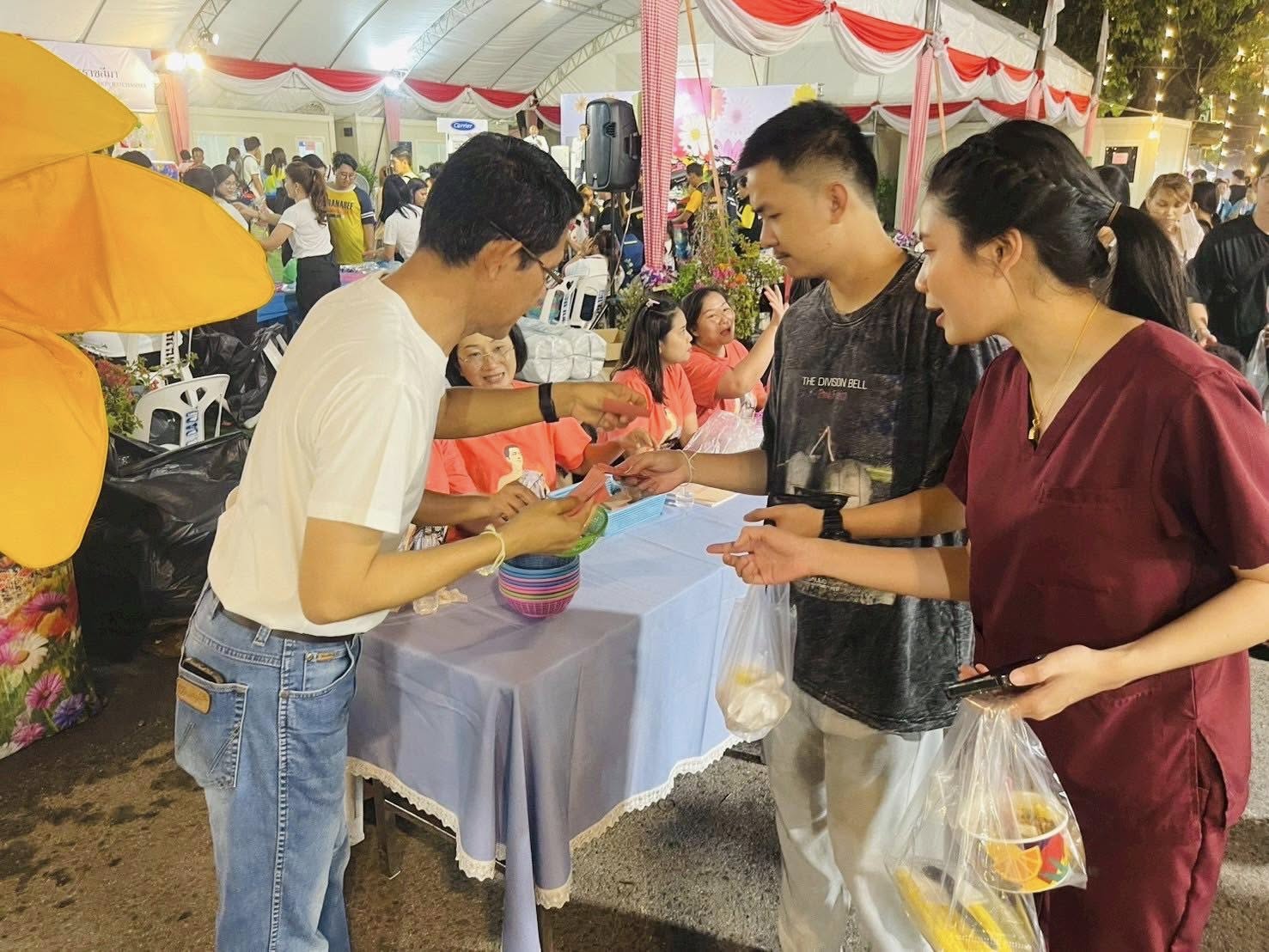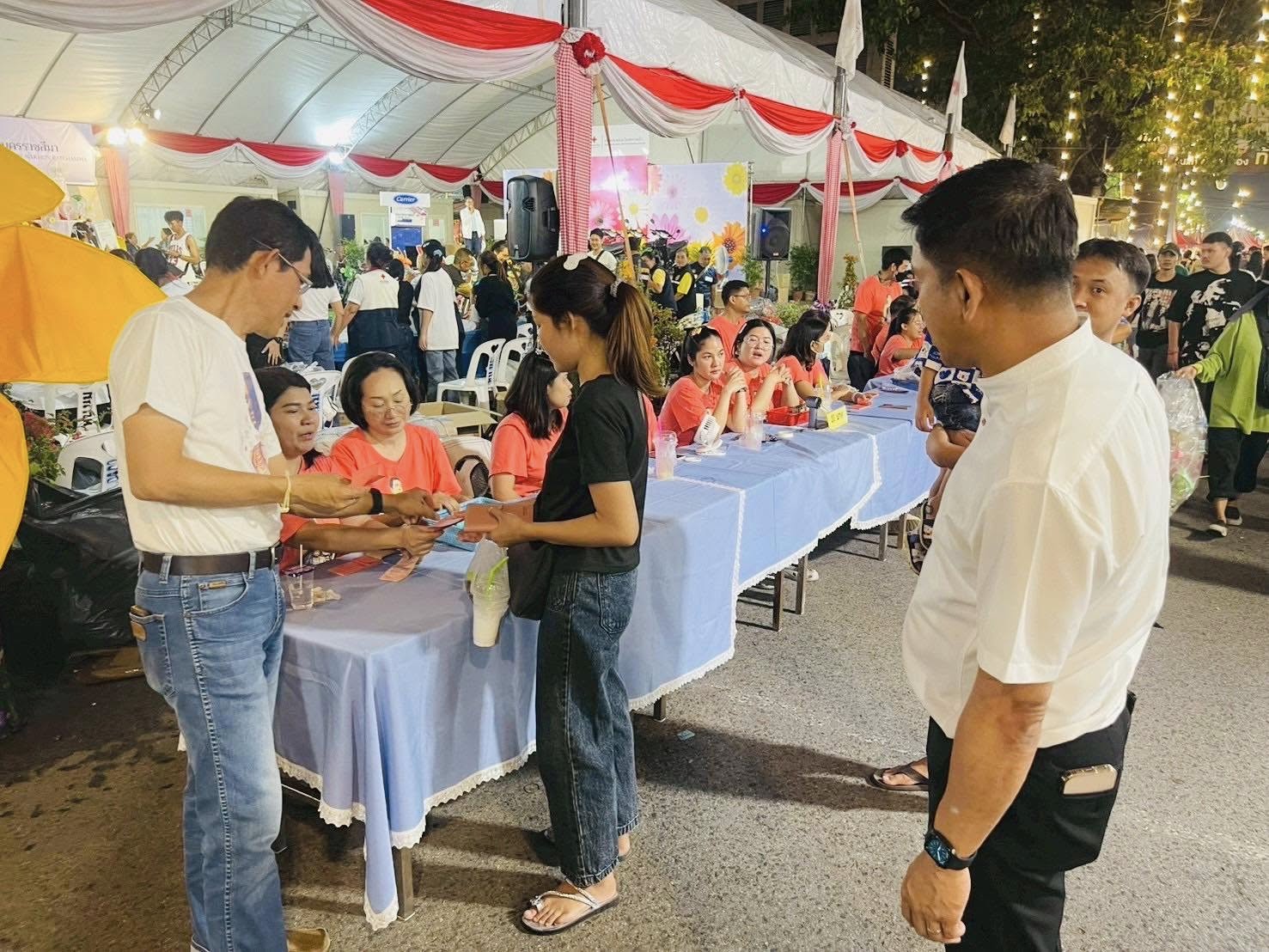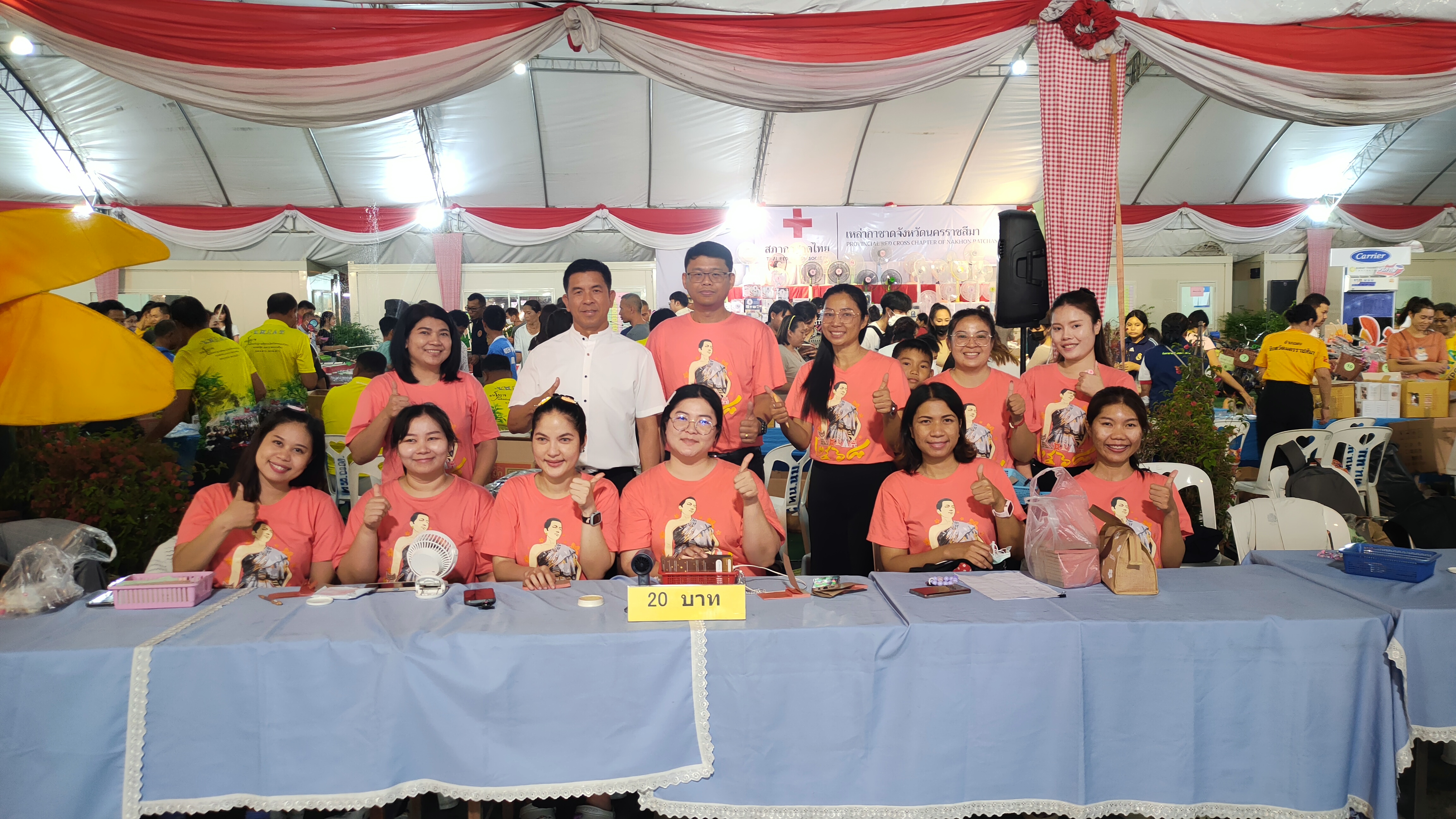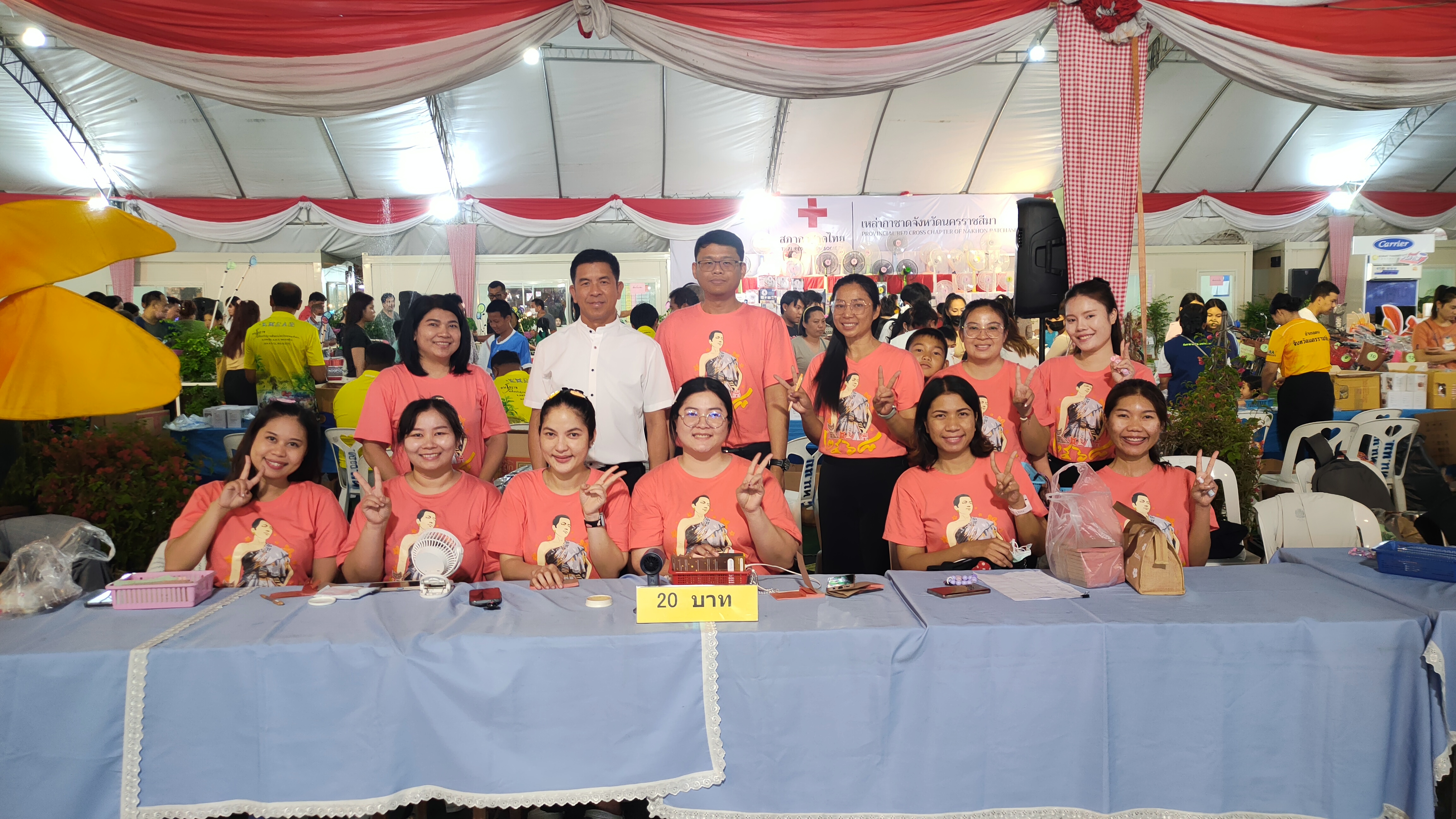 วันพุธที่ 26 มีนาคม 2567 นางนิธิอร บุญญานุสิทธิ์ จัดหางานจังหวัดนครราชสีมา มอบหมายให้นายอาจศึก ชนะหาญ นักวิชาการแรงงานชำนาญการพิเศษ (หัวหน้ากลุ่มงานส่งเสริมการมีงานทำ) นำข้าราชการและเจ้าหน้าที่สำนักงานจัดหางานจังหวัดนครราชสีมา ร่วมปฏิบัติหน้าที่สนับสนุนงานกาชาดจังหวัดนครราชสีมา ในงานฉลองวันแห่งชัยชนะของท้าวสุรนารี ประจำปี 2568 ทำหน้าที่จำหน่ายบัตรกาชาด ระหว่างเวลา 16.30 - 24.00 น. โดยมีนักท่องเที่ยวทั้งในจังหวัดและต่างจังหวัดมาร่วมงานเป็นจำนวนมาก ยอดจำหน่ายบัตรกาชาดที่สำนักงานจัดหางานฯทำได้ คิดเป็นเงินจำนวนทั้งสิ้น 173,940 บาท (หนึ่งแสนเจ็ดหมื่นสามพันเก้าร้อยสี่สิบบาทถ้วน)