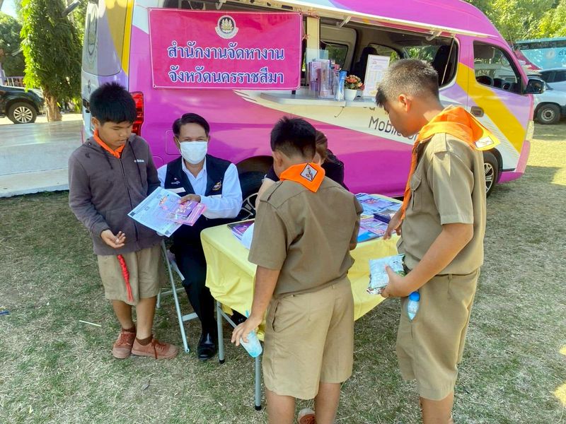 ในการนี้ ฝ่ายส่งเสริมการมีงานทำ สำนักงานจัดหางานจังหวัดนครราชสีมา นำรถโมบาย "DOE MOBILE UNIT" ออกร่วมบริการ โดยได้นำภารกิจต่างๆ ไปให้บริการพี่น้องประชาชนถึงในพื้นที่ ดังนี้