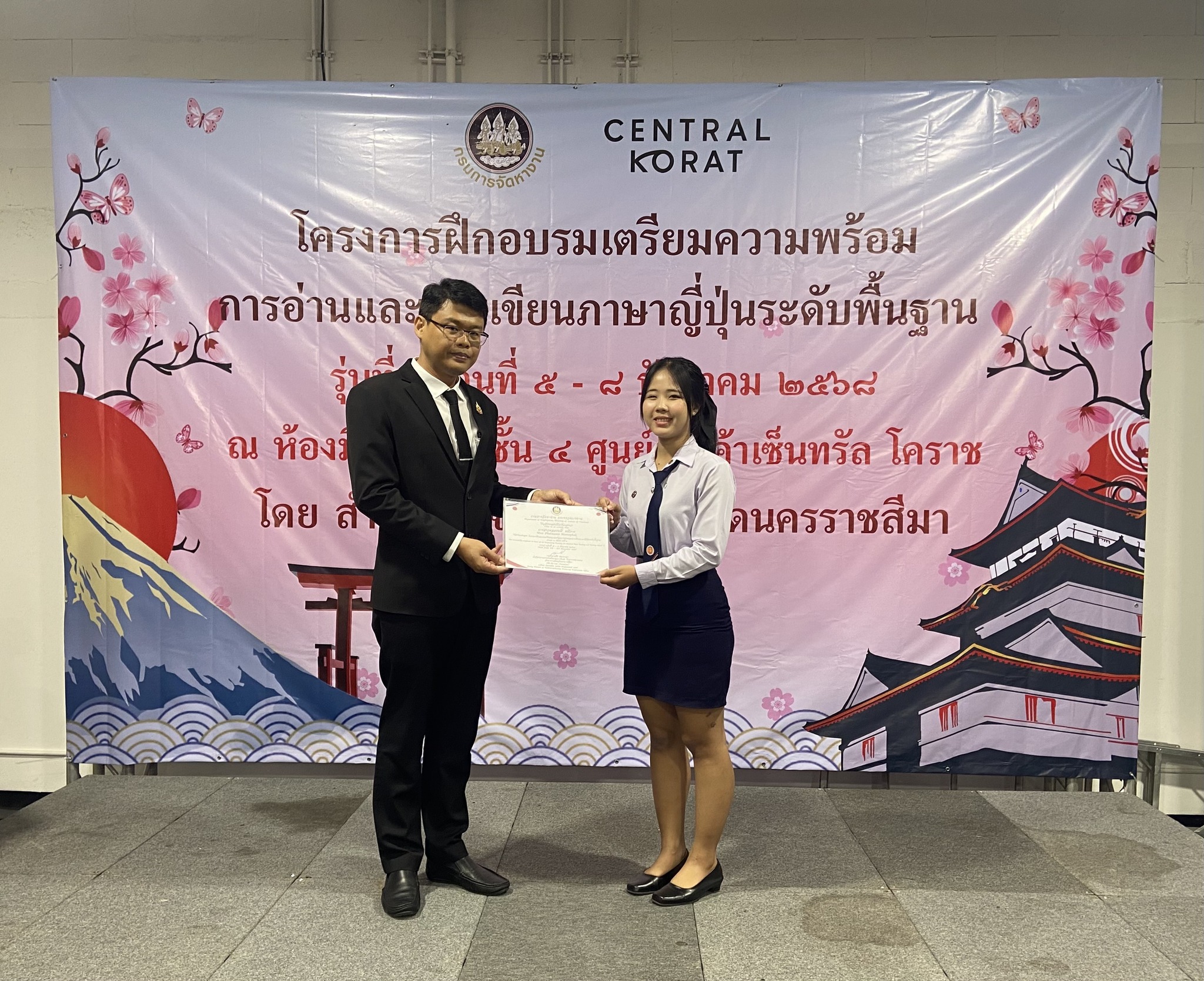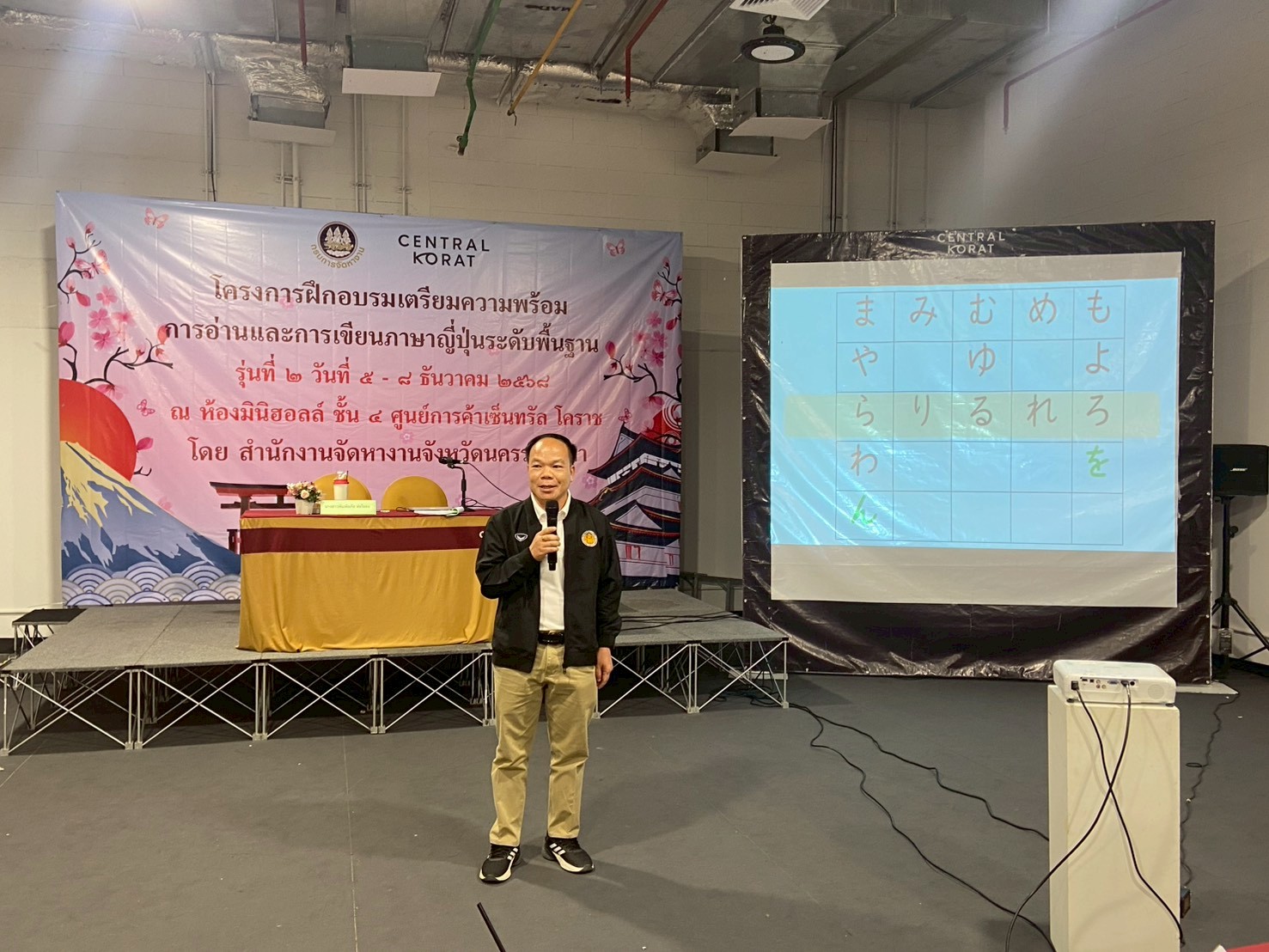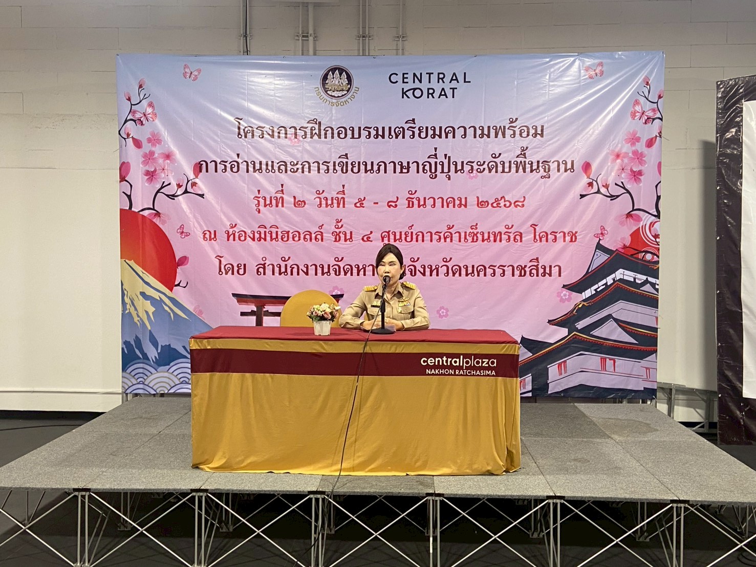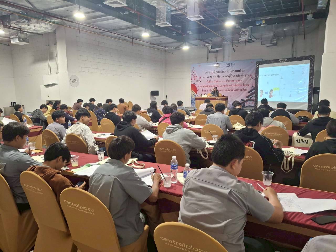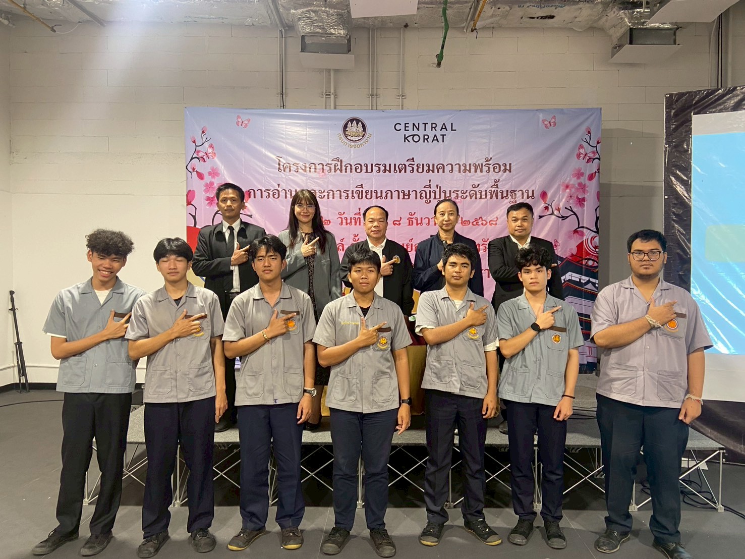 วันที่ 5 – 8 ธันวาคม 2568 ฝ่ายจัดหางานต่างประเทศ สำนักงานจัดหางานจังหวัดนครราชสีมา ได้จัดอบรมโครงการฝึกอบรมเตรียมความพร้อมการอ่านและการเขียนภาษาญี่ปุ่นระดับพื้นฐาน รุ่นที่ 2 ประจำปีงบประมาณ 2569 โดยมีวัตถุประสงค์เพื่อให้คนหางานที่เข้ารับการฝึกอบรมมีความรู้ความเข้าใจในภาษาญี่ปุ่นพื้นฐาน ในระดับที่สามารถอ่านออก เขียนได้ สามารถนําความรู้ที่ได้ไปใช้ในการทำงาน เพื่อเตรียมความพร้อมด้านภาษาญี่ปุ่นให้คนหางานให้สอดคล้องกับความต้องการของตลาดแรงงานต่างประเทศ เตรียมความพร้อมในการสอบคัดเลือกและเดินทางไปฝึกปฏิบัติงานทางเทคนิคไทยในประเทศญี่ปุ่น โดยผ่านองค์กร IM Japan และขั้นตอน วิธีการเดินทางไปทำงานอย่างถูกกฎหมาย ณ ห้องมินิฮอลล์ ศูนย์การค้าเซ็นทรัลโคราช อำเภอเมืองนครราชสีมา จังหวัดนครราชสีมา โดยมีนักศึกษาวิทยาลัยเทคนิคชัยภูมิเข้าร่วมอบรม จำนวน 49 คน