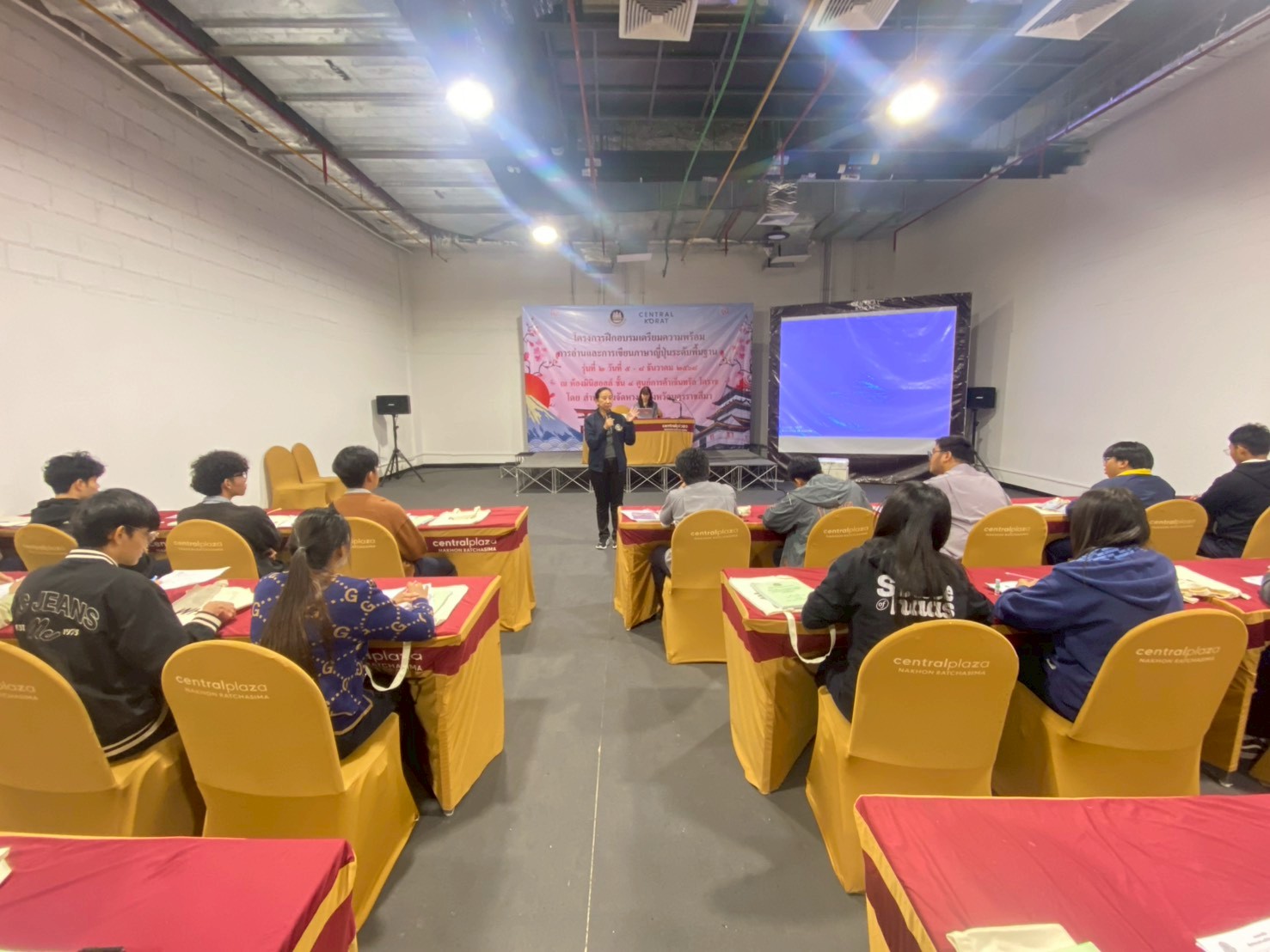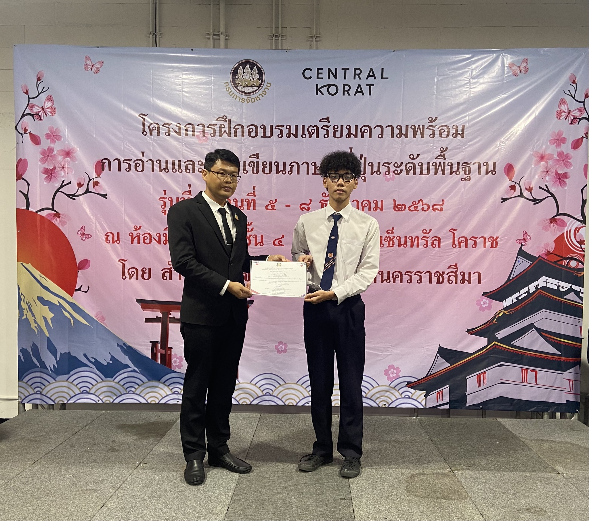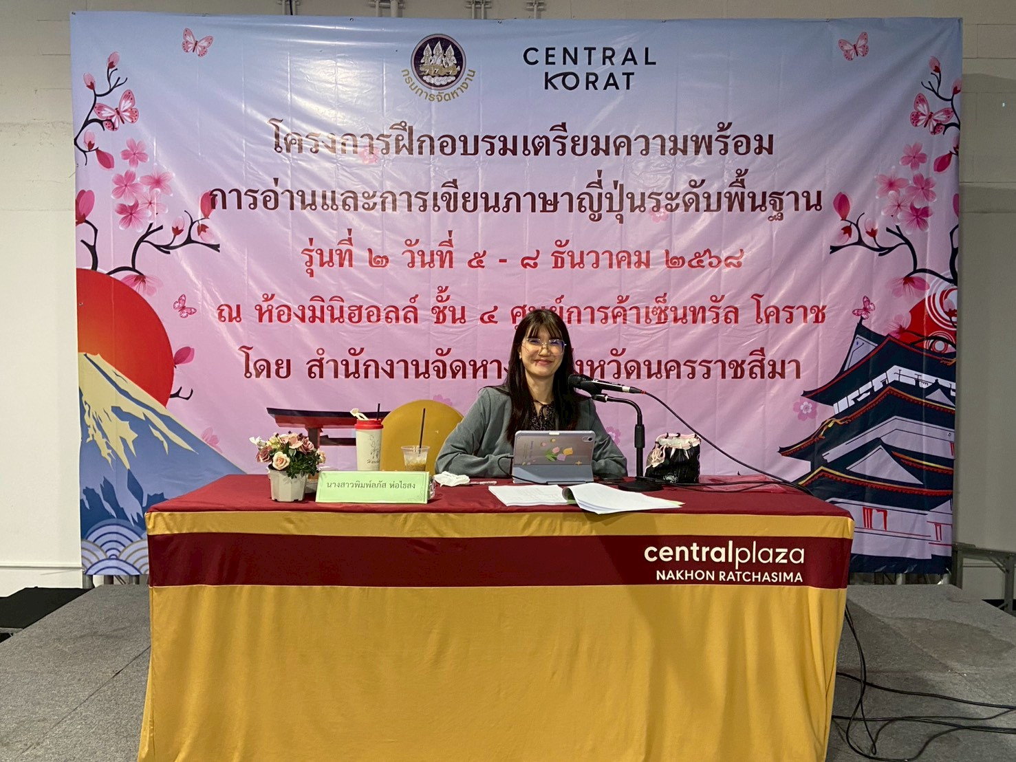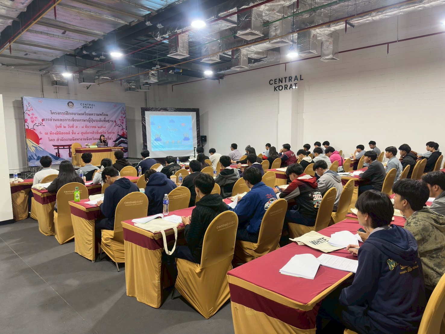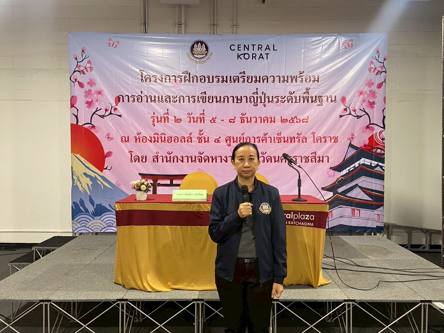 วันที่ 5 – 8 ธันวาคม 2568 ฝ่ายจัดหางานต่างประเทศ สำนักงานจัดหางานจังหวัดนครราชสีมา ได้จัดอบรมโครงการฝึกอบรมเตรียมความพร้อมการอ่านและการเขียนภาษาญี่ปุ่นระดับพื้นฐาน รุ่นที่ 2 ประจำปีงบประมาณ 2569 โดยมีวัตถุประสงค์เพื่อให้คนหางานที่เข้ารับการฝึกอบรมมีความรู้ความเข้าใจในภาษาญี่ปุ่นพื้นฐาน ในระดับที่สามารถอ่านออก เขียนได้ สามารถนําความรู้ที่ได้ไปใช้ในการทำงาน เพื่อเตรียมความพร้อมด้านภาษาญี่ปุ่นให้คนหางานให้สอดคล้องกับความต้องการของตลาดแรงงานต่างประเทศ เตรียมความพร้อมในการสอบคัดเลือกและเดินทางไปฝึกปฏิบัติงานทางเทคนิคไทยในประเทศญี่ปุ่น โดยผ่านองค์กร IM Japan และขั้นตอน วิธีการเดินทางไปทำงานอย่างถูกกฎหมาย ณ ห้องมินิฮอลล์ ศูนย์การค้าเซ็นทรัลโคราช อำเภอเมืองนครราชสีมา จังหวัดนครราชสีมา โดยมีนักศึกษาวิทยาลัยเทคนิคชัยภูมิเข้าร่วมอบรม จำนวน 49 คน