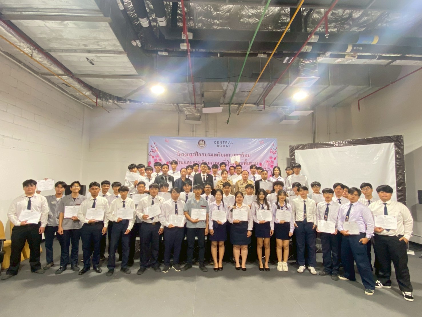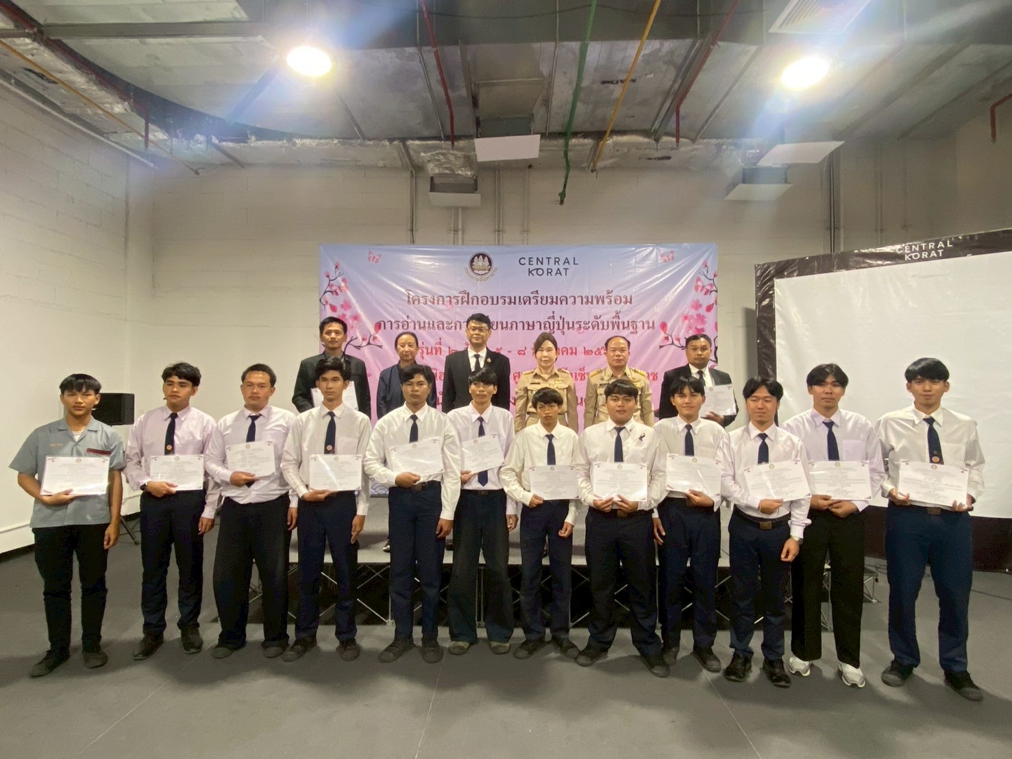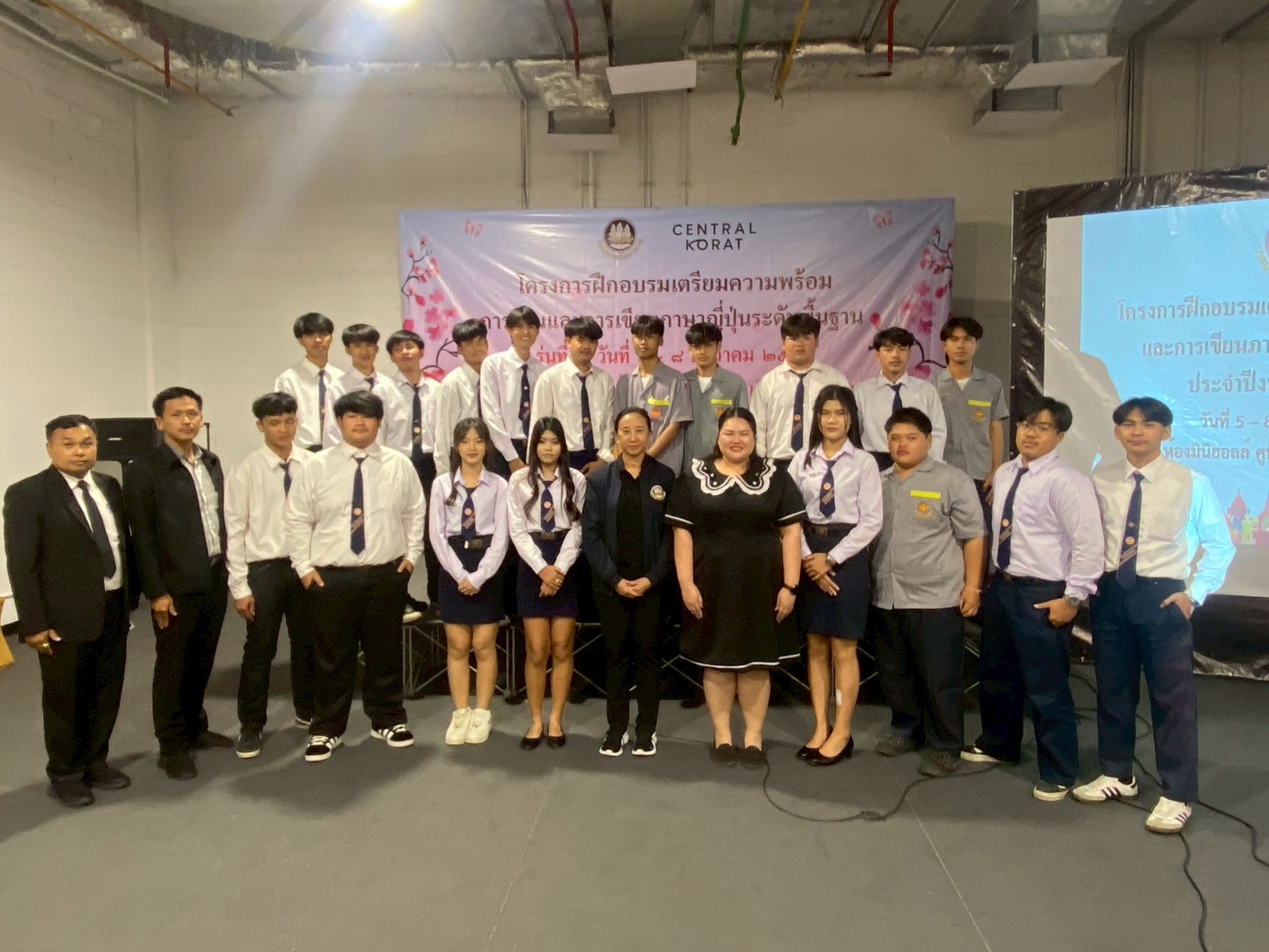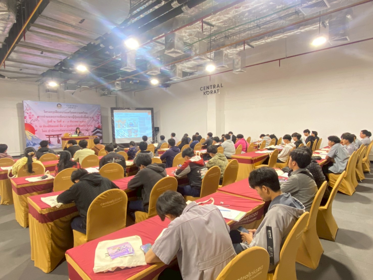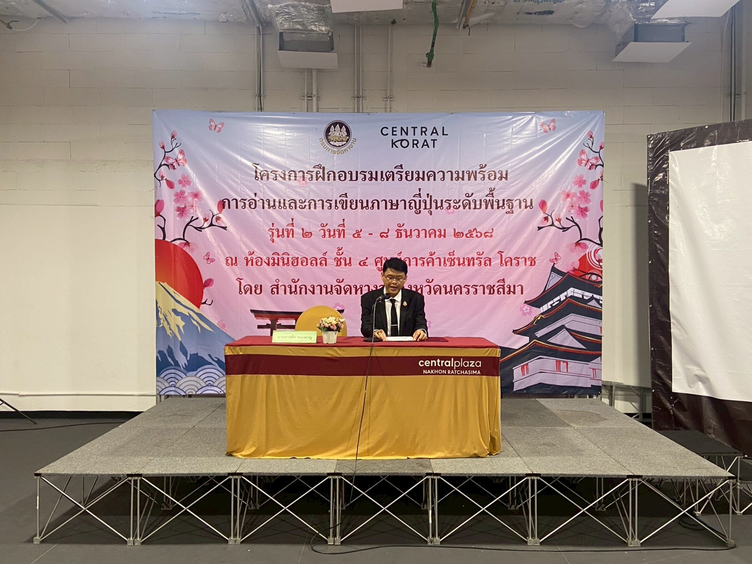วันที่ 5 – 8 ธันวาคม 2568 ฝ่ายจัดหางานต่างประเทศ สำนักงานจัดหางานจังหวัดนครราชสีมา ได้จัดอบรมโครงการฝึกอบรมเตรียมความพร้อมการอ่านและการเขียนภาษาญี่ปุ่นระดับพื้นฐาน รุ่นที่ 2 ประจำปีงบประมาณ 2569 โดยมีวัตถุประสงค์เพื่อให้คนหางานที่เข้ารับการฝึกอบรมมีความรู้ความเข้าใจในภาษาญี่ปุ่นพื้นฐาน ในระดับที่สามารถอ่านออก เขียนได้ สามารถนําความรู้ที่ได้ไปใช้ในการทำงาน เพื่อเตรียมความพร้อมด้านภาษาญี่ปุ่นให้คนหางานให้สอดคล้องกับความต้องการของตลาดแรงงานต่างประเทศ เตรียมความพร้อมในการสอบคัดเลือกและเดินทางไปฝึกปฏิบัติงานทางเทคนิคไทยในประเทศญี่ปุ่น โดยผ่านองค์กร IM Japan และขั้นตอน วิธีการเดินทางไปทำงานอย่างถูกกฎหมาย ณ ห้องมินิฮอลล์ ศูนย์การค้าเซ็นทรัลโคราช อำเภอเมืองนครราชสีมา จังหวัดนครราชสีมา โดยมีนักศึกษาวิทยาลัยเทคนิคชัยภูมิเข้าร่วมอบรม จำนวน 49 คน
