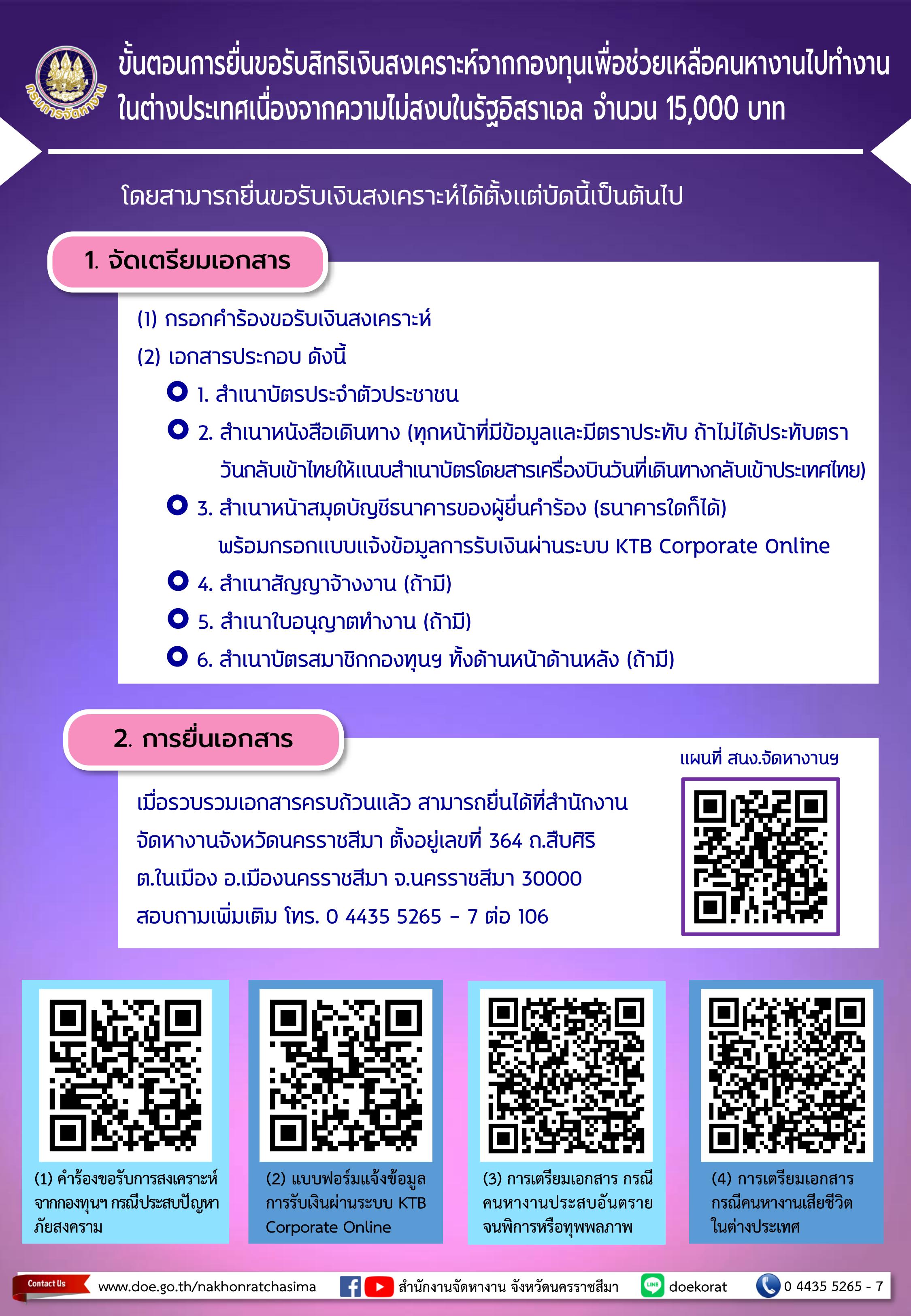 ขั้นตอนการยื่นขอรับสิทธิเงินสงเคราะห์จากกองทุนเพื่อช่วยเหลือคนหางานไปทำงานในต่างประเทศเนื่องจากความไม่สงบในรัฐอิสราเอล จำนวน 15,000 บาท