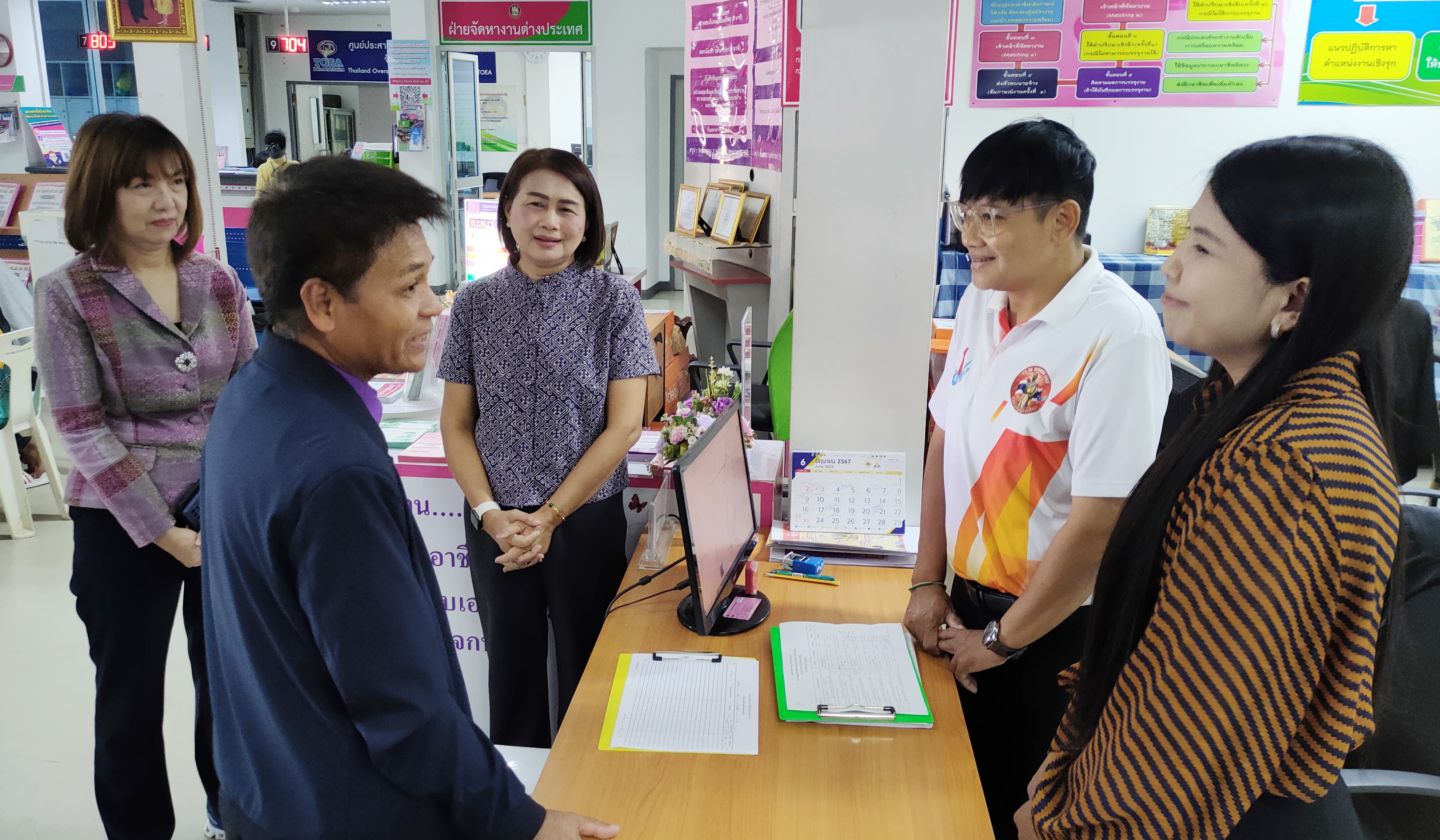 วันที่ 12 มิถุนายน 2567 นายภัทรวุธ เภอแสละ ผู้ตรวจราชการกรมการจัดหางาน เดินทางมาปฏิบัติราชการในพื้นที่จังหวัดนครราชสีมา ในโอกาสนี้ได้เข้ามาตรวจเยี่ยมสำนักงานจัดหางานจังหวัดนครราชสีมา โดยมีนางนิธิอร บุญญานุสิทธิ์ จัดหางานจังหวัดนครราชสีมา พร้อมด้วยข้าราชการและเจ้าหน้าที่สำนักงานจัดหางานจังหวัดนครราชสีมา ร่วมให้การต้อนรับ