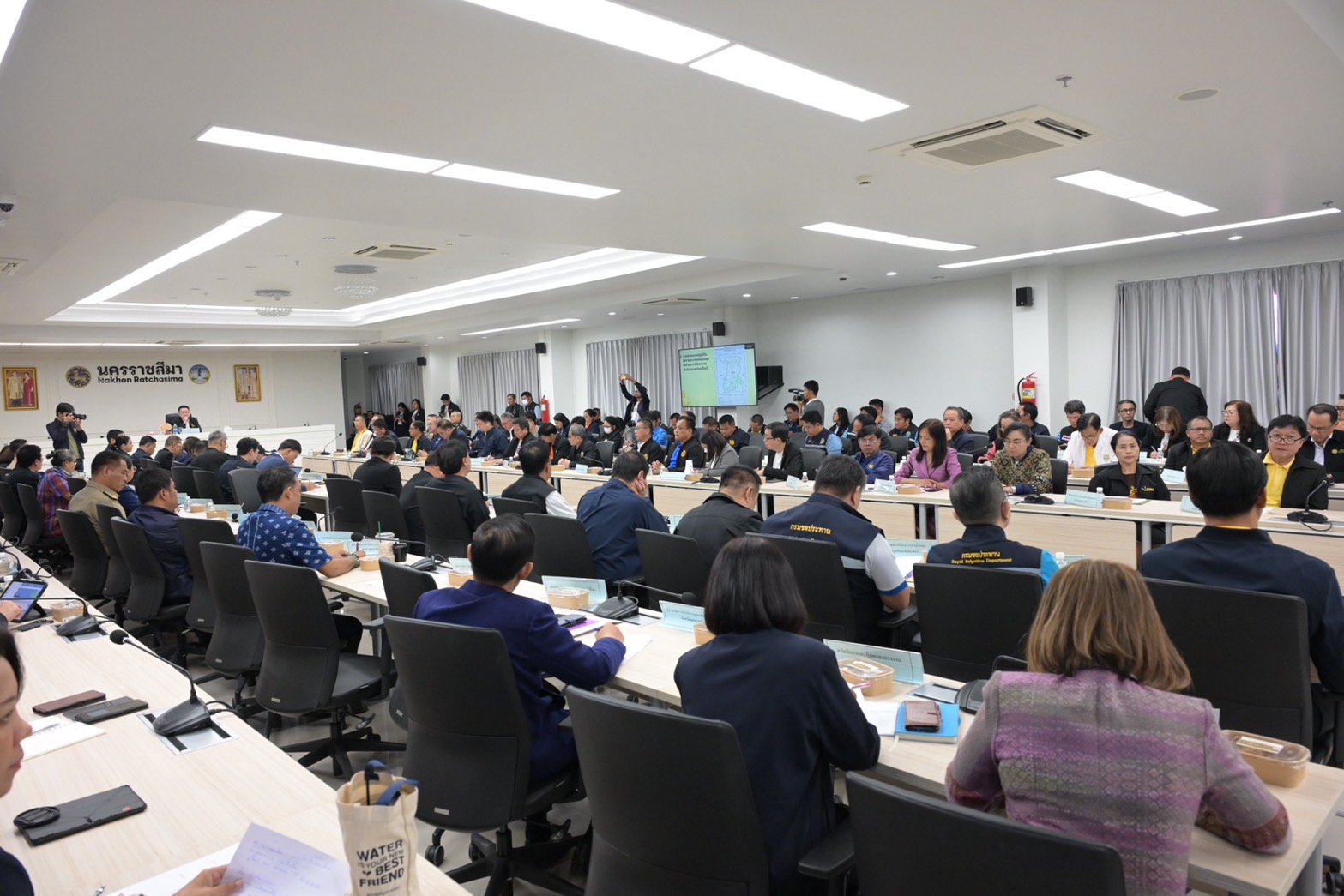 วันที่ 20 ธันวาคม 2567 นายประเสริฐ จันทรรวงทอง รองนายกรัฐมนตรี และรัฐมนตรีว่าการกระทรวงดิจิทัลเพื่อเศรษฐกิจและสังคม ลงพื้นที่กำกับและติดตามการปฏิบัติราชการในภูมิภาค ในพื้นที่เขตตรวจราชการที่ 13 (จังหวัดนครราชสีมา ชัยภูมิ บุรีรัมย์ และสุรินทร์) ณ จังหวัดนครราชสีมา โดยเป็นประธานการประชุมหารือข้อเสนอโครงการในการแก้ไขปัญหาสำคัญของจังหวัด/กลุ่มจังหวัด ณ ห้องประชุม ชั้น 4 ศาลากลางจังหวัดนครราชสีมา โดยมี ดร.สุรสีห์ กิตติมณฑล เลขาธิการสำนักงานทรัพยากรน้ำแห่งชาติ (สทนช.) พร้อมด้วยนายชัยวัฒน์ ชื่นโกสุม ผู้ว่าราชการจังหวัดนครราชสีมา นายอนันต์ นาคนิยม ผู้ว่าราชการจังหวัดชัยภูมิ นายประภาส ศรีจันทร์เวียง รองผู้ว่าราชการจังหวัดสุรินทร์ ผู้แทนจังหวัดบุรีรัมย์ และผู้แทนจากหน่วยงานที่เกี่ยวข้อง เข้าร่วมการประชุม หลังจากนั้น รองนายกรัฐมนตรีและคณะ ได้ลงพื้นที่ติดตามการบริหารจัดการน้ำ ณ เขื่อนลำตะคอง จังหวัดนครราชสีมา