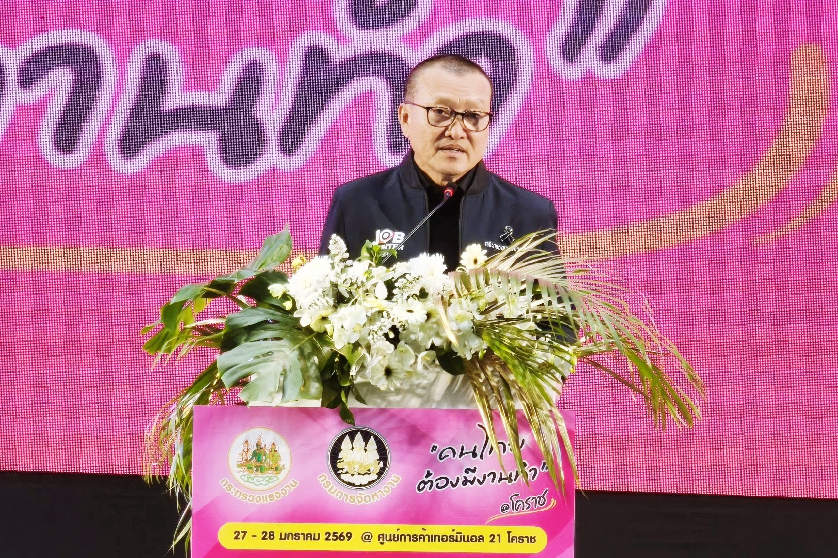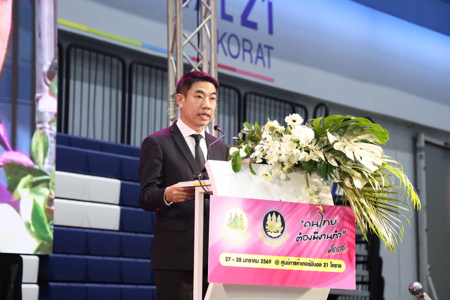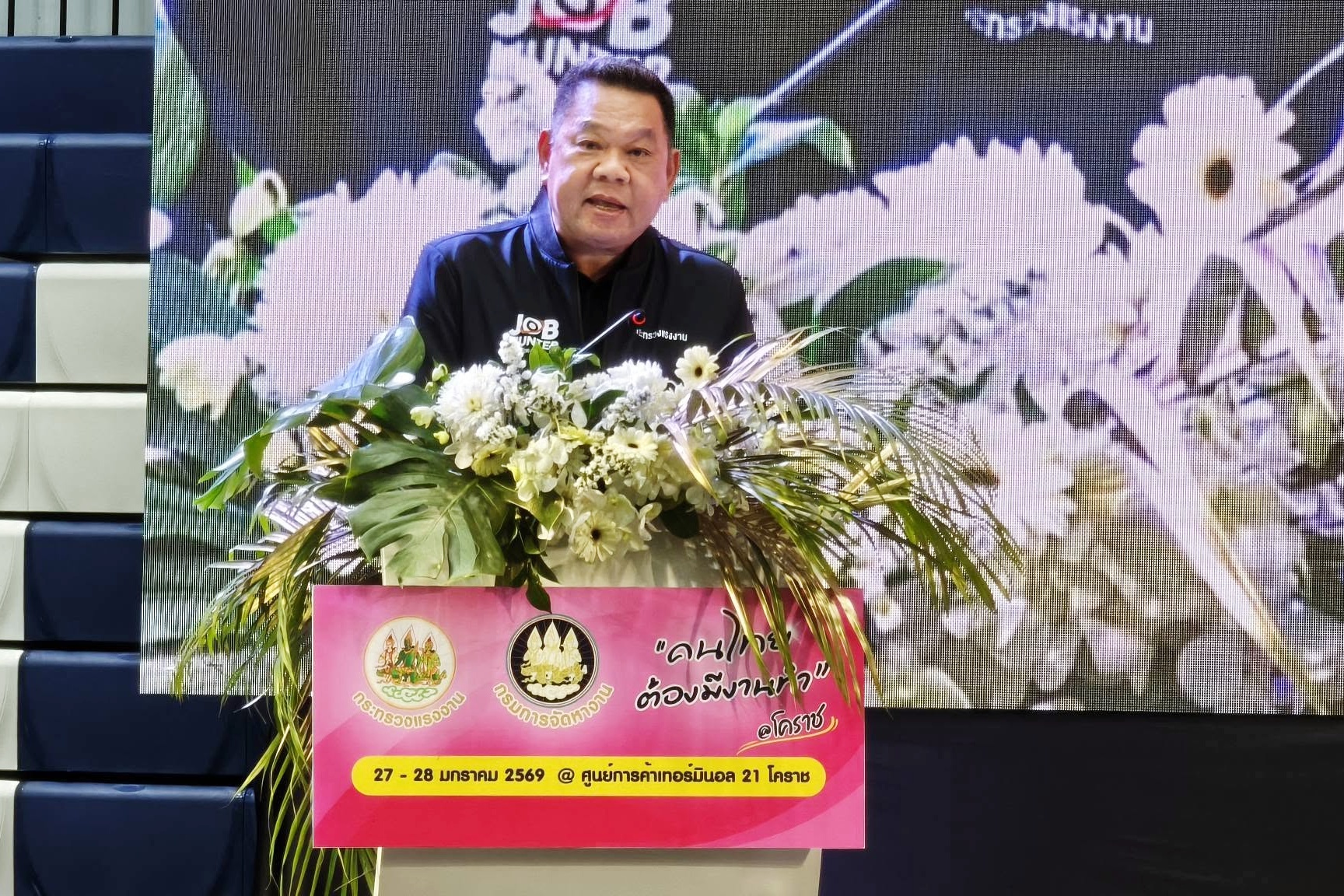 วันที่ 27 มกราคม 2569 พันตำรวจโท วรรณพงษ์ คชรักษ์ ปลัดกระทรวงแรงงาน มอบหมายให้ นายสันติ นันตสุวรรณ รองปลัดกระทรวงแรงงาน เป็นประธานพิธีเปิดงาน “คนไทยต้องมีงานทำ @ โคราช” ประจำปี 2569 โดยนายสมชาย มรกตศรีวรรณ อธิบดีกรมการจัดหางาน ได้มอบหมายให้นายมงคล สงคราม รองอธิบดีกรมการจัดหางาน กล่าวรายงาน นายบัลลังก์ ไวทย์ศิริ รองผู้ว่าราชการจังหวัดนครราชสีมา กล่าวต้อนรับ ผู้บริหารกระทรวงแรงงาน หัวหน้าส่วนราชการสังกัดกระทรวงแรงงานจังหวัดนครราชสีมา ร่วมเป็นเกียรติ ผู้อำนวยการศูนย์การค้าเทอร์มินอล 21 โคราช ผู้บริหารสถานศึกษา คณะครูอาจารย์ ผู้ประกอบการ ร่วมให้การต้อนรับ ณ เทอร์มินอลฮอลล์ ชั้น 4 ศูนย์การค้าเทอร์มินอล 21 โคราช จังหวัดนครราชสีมา