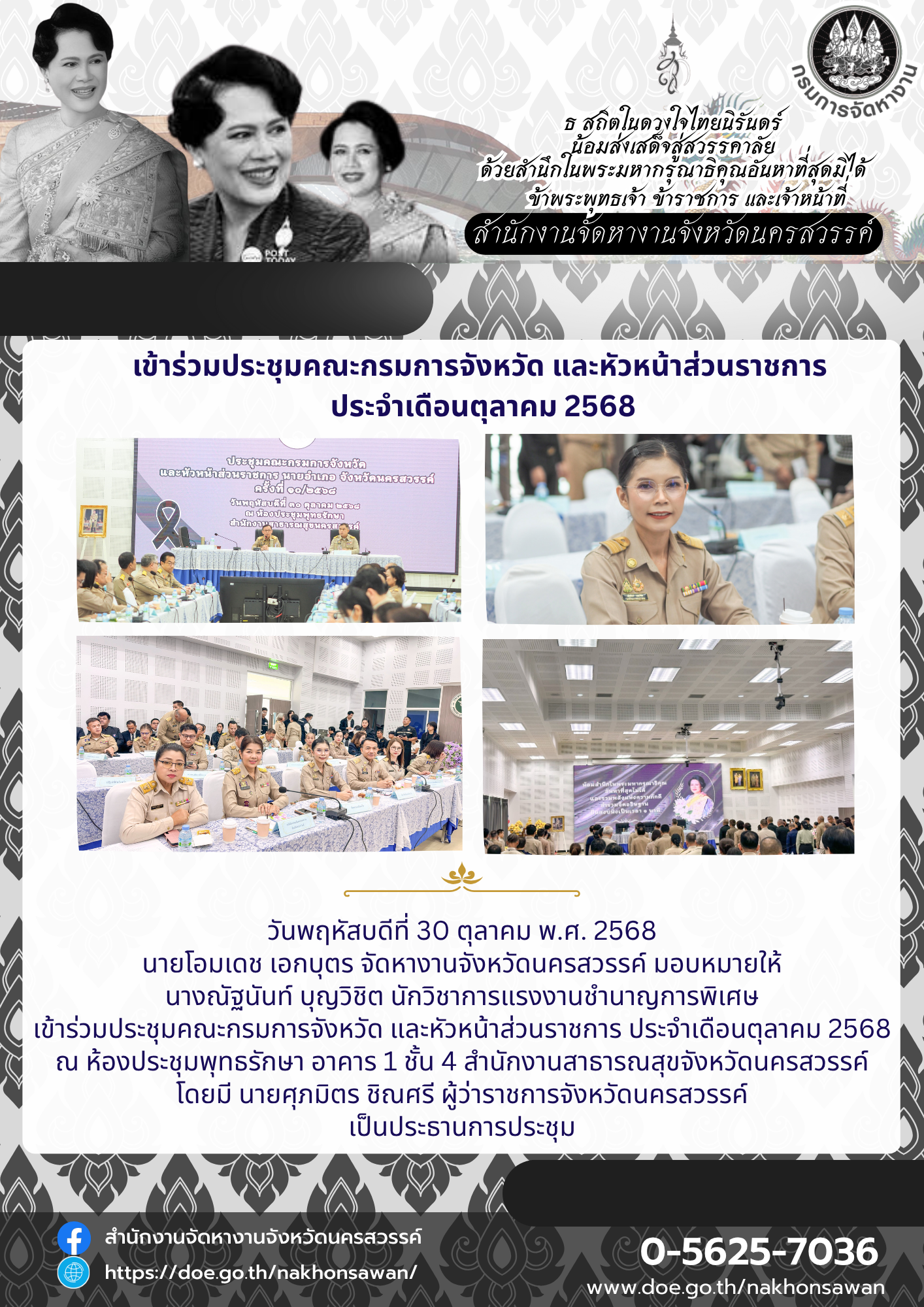 เข้าร่วมประชุมคณะกรมการจังหวัด และหัวหน้าส่วนราชการ ประจำเดือนตุลาคม 2568