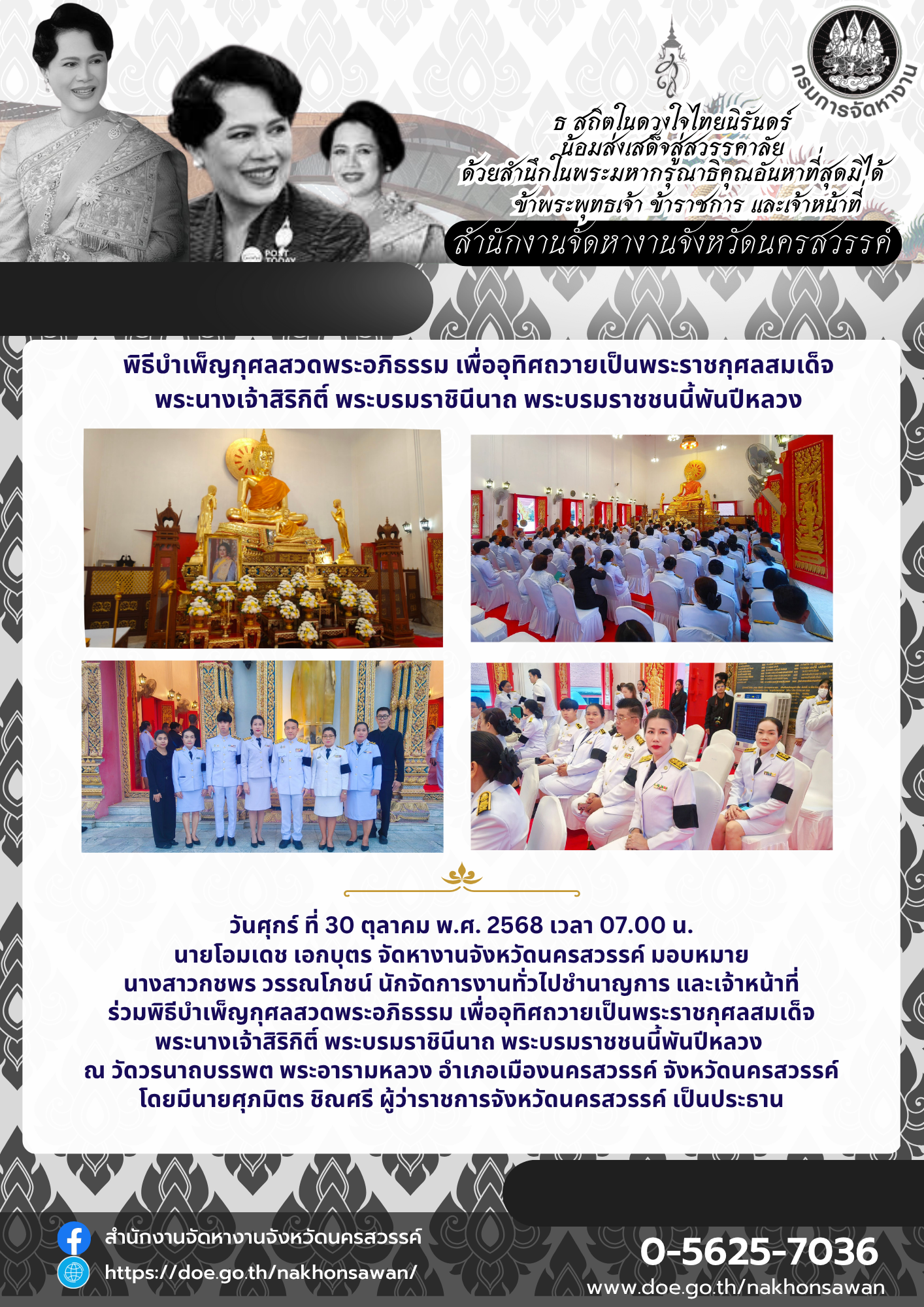 พิธีบำเพ็ญกุศลสวดพระอภิธรรม เพื่ออุทิศถวายเป็นพระราชกุศลสมเด็จ พระนางเจ้าสิริกิติ์ พระบรมราชินีนาถฯ