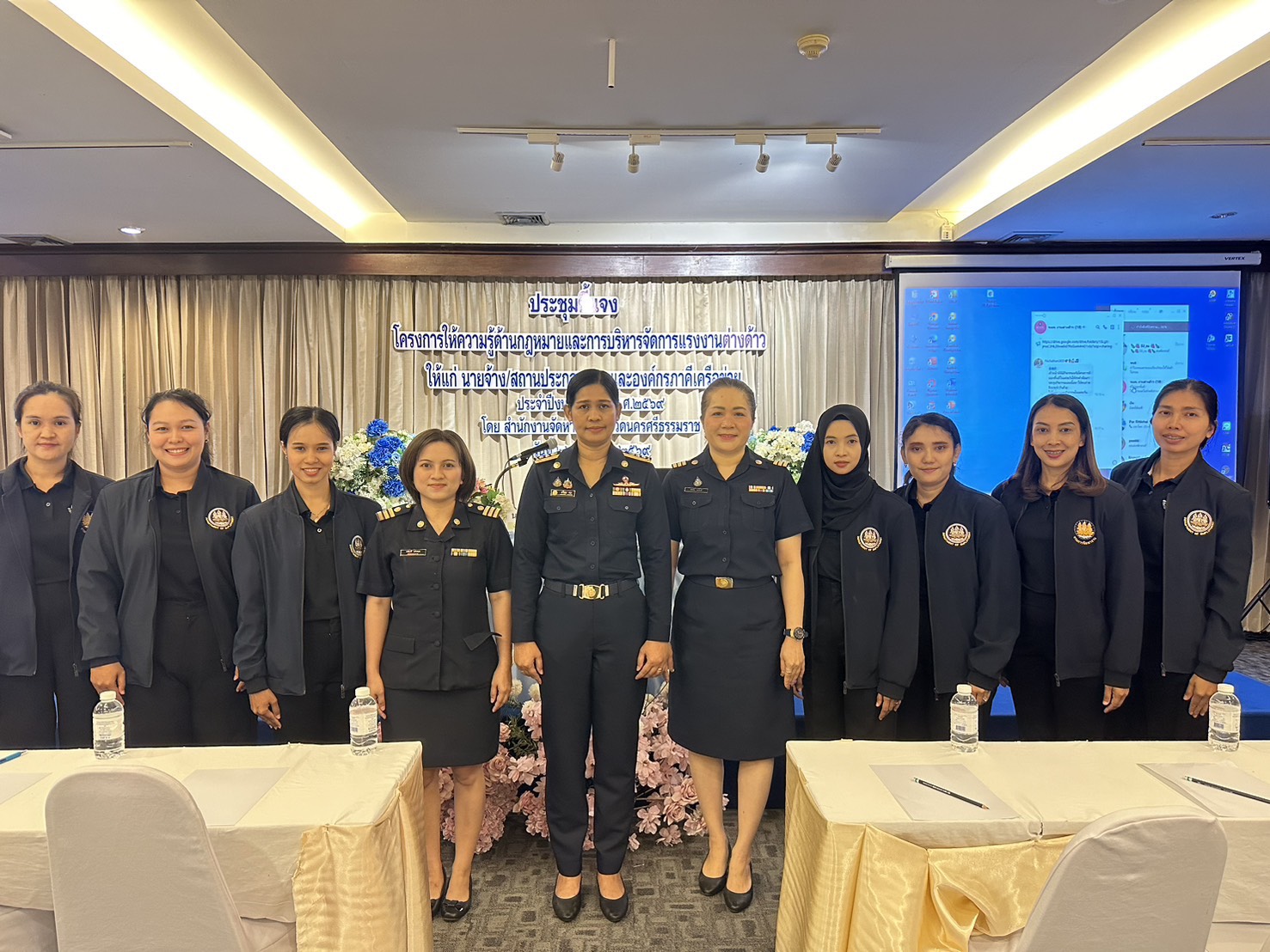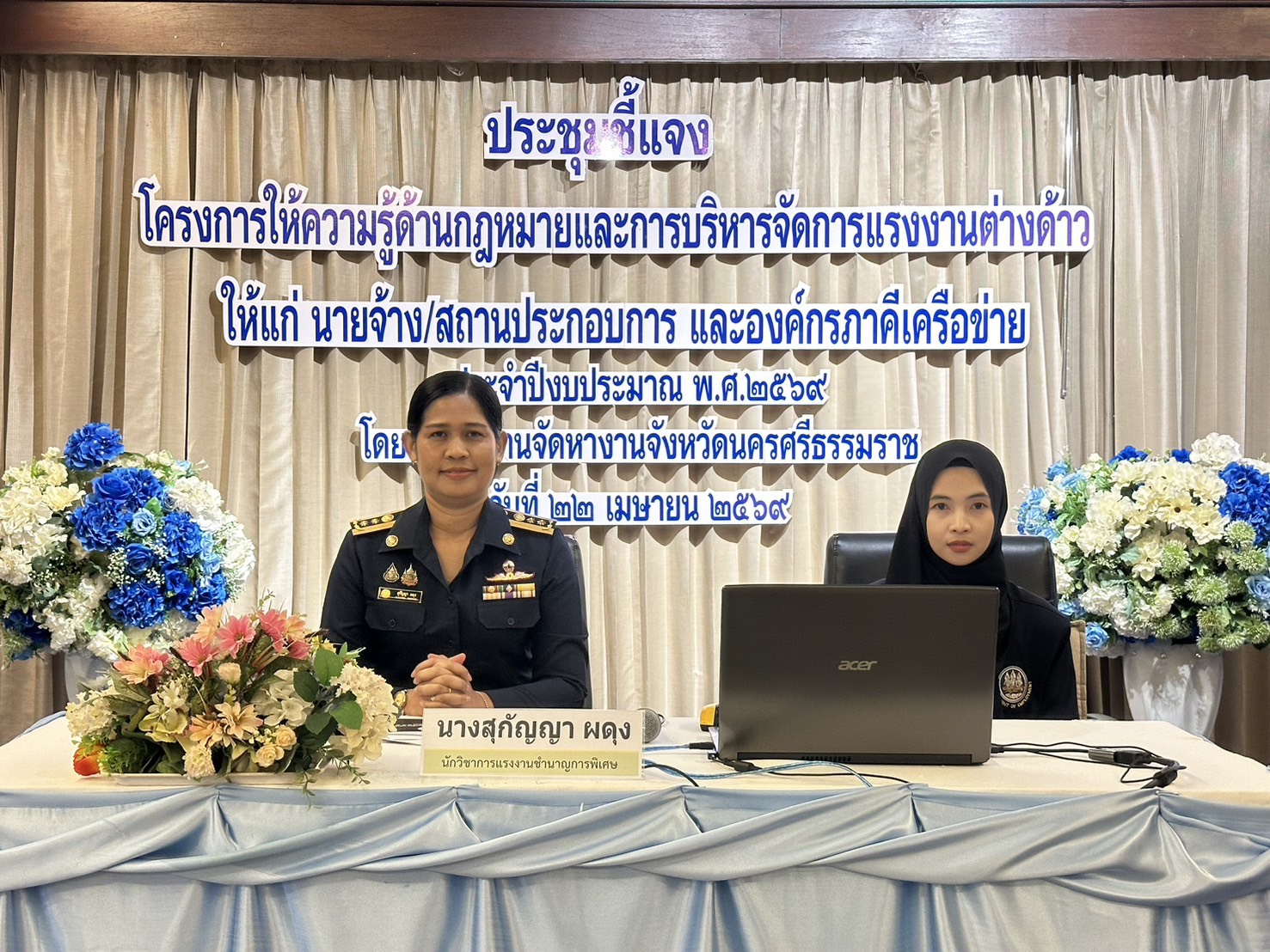 วันที่ 22 เมษายน 2569 เวลา 10.00 น. นางสาวนภัทร วัยทอง จัดหางานจังหวัดนครศรีธรรมราช เป็นประธานในพิธีเปิดการประชุมโครงการให้ความรู้ด้านกฎหมายและการบริหารจัดการแรงงานต่างด้าวให้แก่นายจ้าง/สถานประกอบการ และองค์กรภาคีเครือข่าย ประจำปีงบประมาณ พ.ศ.2569 ณ ห้องประชุมสุพรรณิการ์ โรงแรมแกรนด์เซาเทิร์น ตำบลชะมาย อำเภอทุ่งสง จังหวัดนครศรีธรรมราช