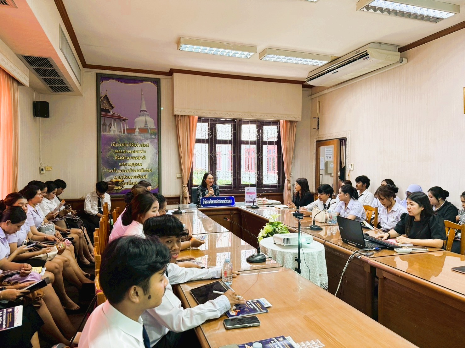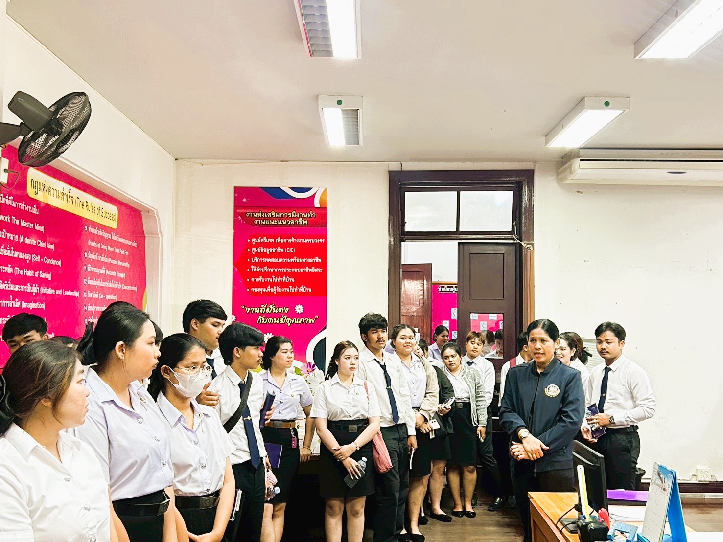 วันที่ 24 กุมภาพันธ์ 2569 นางสาวนภัทร วัยทอง จัดหางานจังหวัดนครศรีธรรมราช มอบหมายให้นางสุกัญญา ผดุง นักวิชาการแรงงานชำนาญการพิเศษ พร้อมด้วยเจ้าหน้าที่ ร่วมให้การต้อนรับอาจารย์และนักศึกษา สาขาการบริหารทรัพยากรมนุษย์ คณะวิทยาการจัดการ มหาวิทยาลัยราชภัฎนครศรีธรรมราช เข้าเยี่ยมชมสำนักงาน พร้อมทั้งรับฟังการบรรยายเรื่องการส่งเสริมการมีงานทำและการบริหารจัดการการทำงานของคนต่างด้าว ตามพระราชกำหนดการบริหารจัดการการทำงานของคนต่างด้าว พ.ศ. 2560 และที่แก้ไขเพิ่มเติม (ฉบับที่ 2) พ.ศ. 2561 ณห้องประชุมสำนักงานจัดหางานจังหวัดนครศรีธรรมราช ศาลากลางจังหวัด (หลังเก่า) ชั้น 1 ตำบลในเมือง อำเภอเมืองนครศรีธรรมราช จังหวัดนครศรีธรรมราช มีนักศึกษาเข้าร่วม จำนวน39 คน