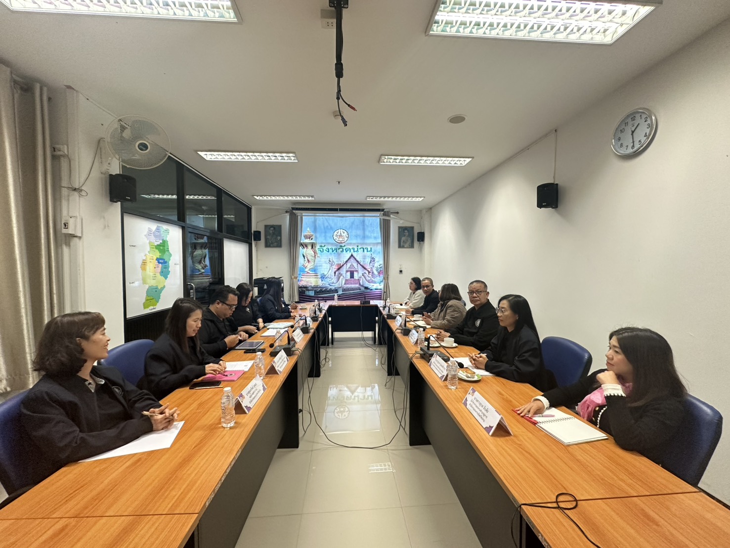วันที่ 13 มกราคม 2569 เวลา 13.30 น. นายธวัช วงค์ริน จัดหางานจังหวัดน่าน พร้อมด้วยนายพาณุ พิทักษ์ นักวิชาการแรงงานชำนาญการพิเศษ ร่วมประชุมหัวหน้าส่วนราชการสังกัดกระทรวงแรงงานจังหวัดน่านครั้งที่ 1/2569 เพื่อพิจารณาเกี่ยวกับการขับเคลื่อนนโยบายของกระทรวงแรงงาน นโยบายจังหวัด การบูรณาการ การทำงานร่วมกับหน่วยงานภายในสังกัดและนอกสังกัด ณ ห้องประชุมสำนักงานแรงงานจังหวัดน่าน ชั้น 1 ศาลากลางจังหวัดน่าน ตำบลไชยสถาน อำเภอเมืองน่าน จังหวัดน่าน