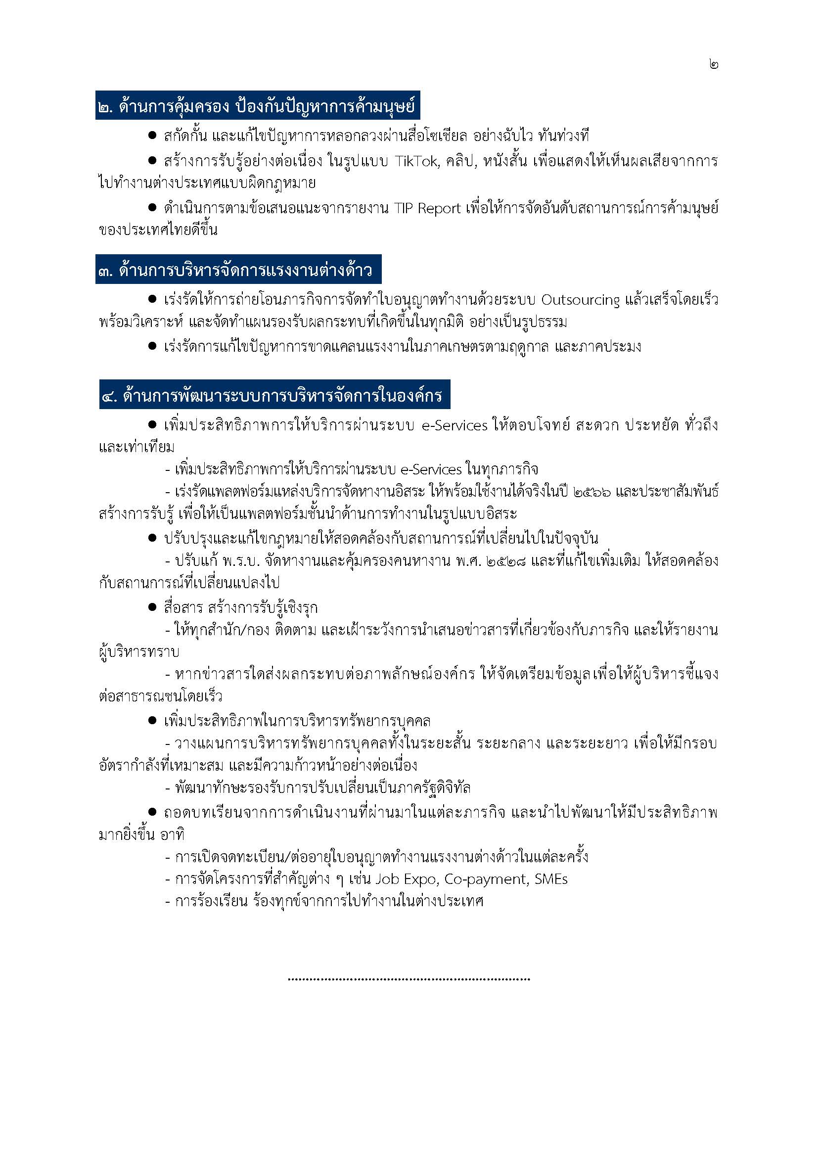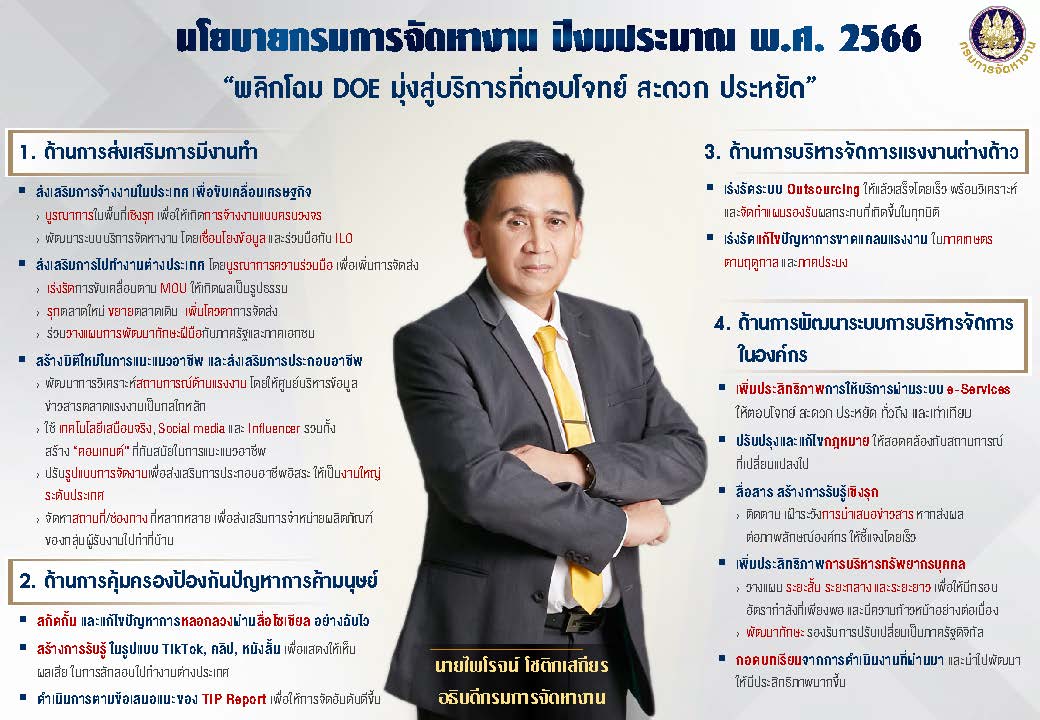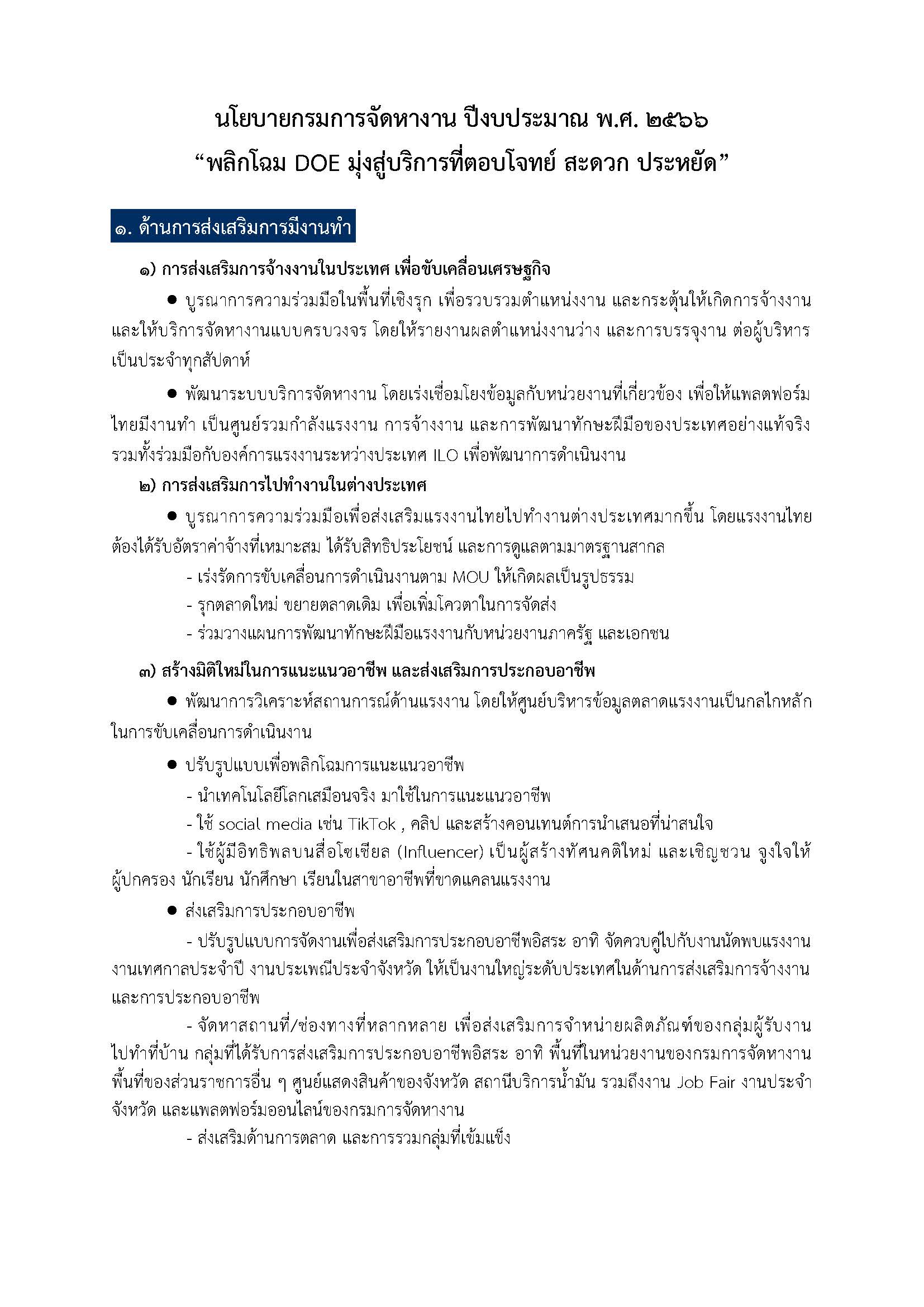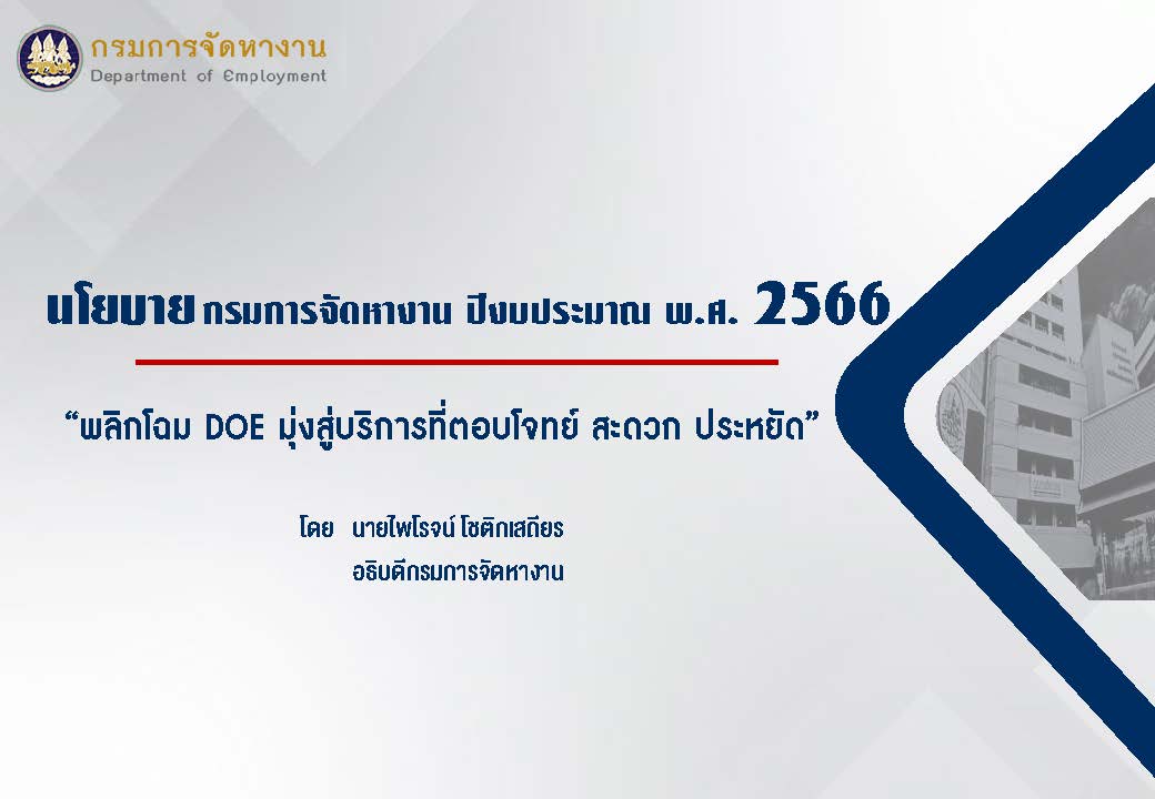 นโยบายกรมการจัดหางาน ประจำปีงบประมาณ พ.ศ. 2566