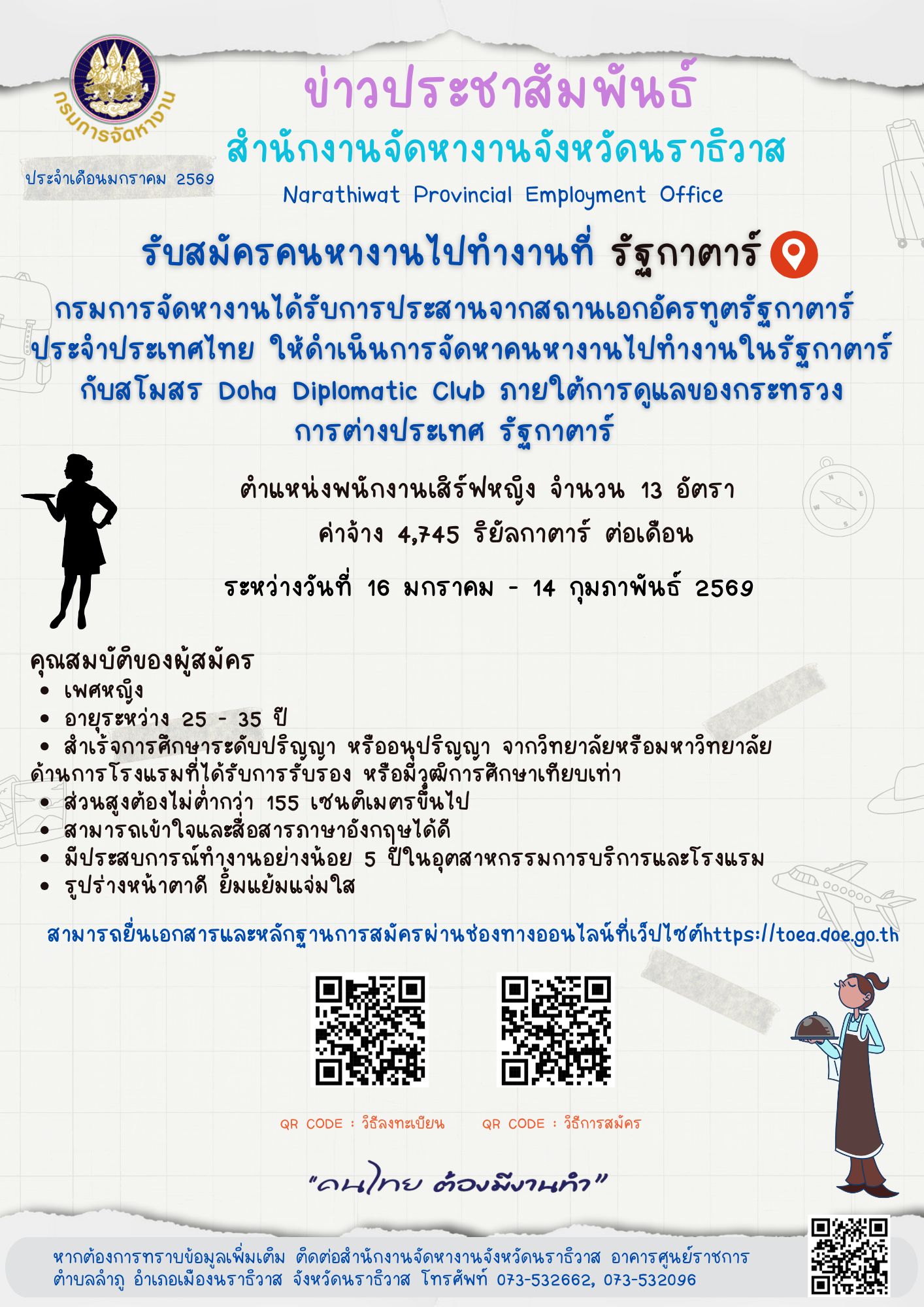 ข่าวประชาสัมพันธ์ เรื่อง รับสมัครคนหางานไปทำงานที่ รัฐกาตาร์