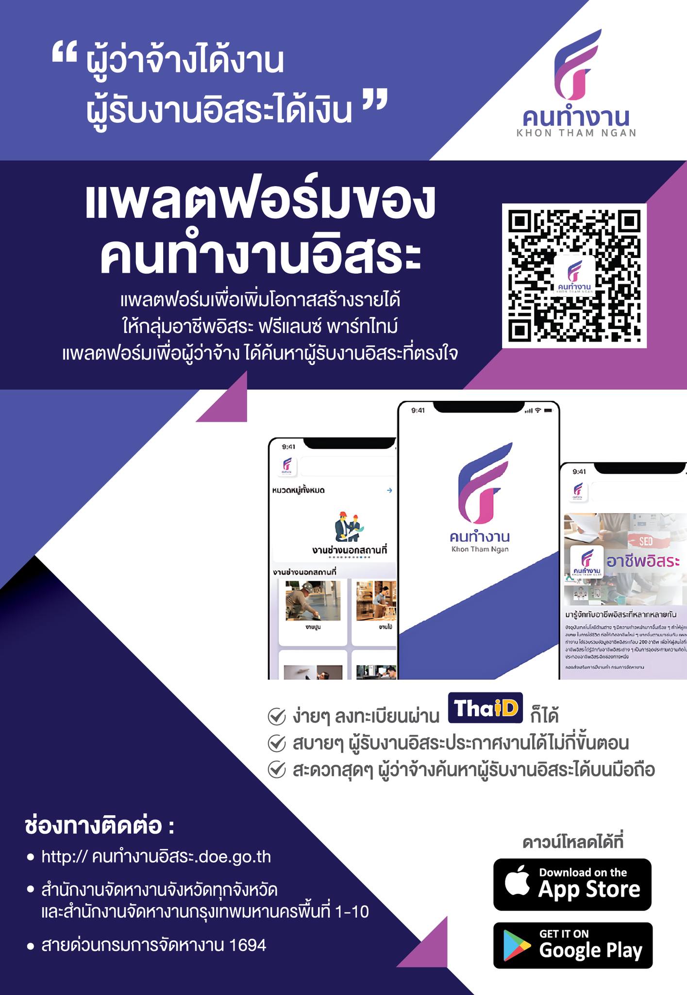 คนทำงาน Khon Tham Ngan แพลตฟอร์ม คนทำงานอิสระ ของกรมการจัดหางาน