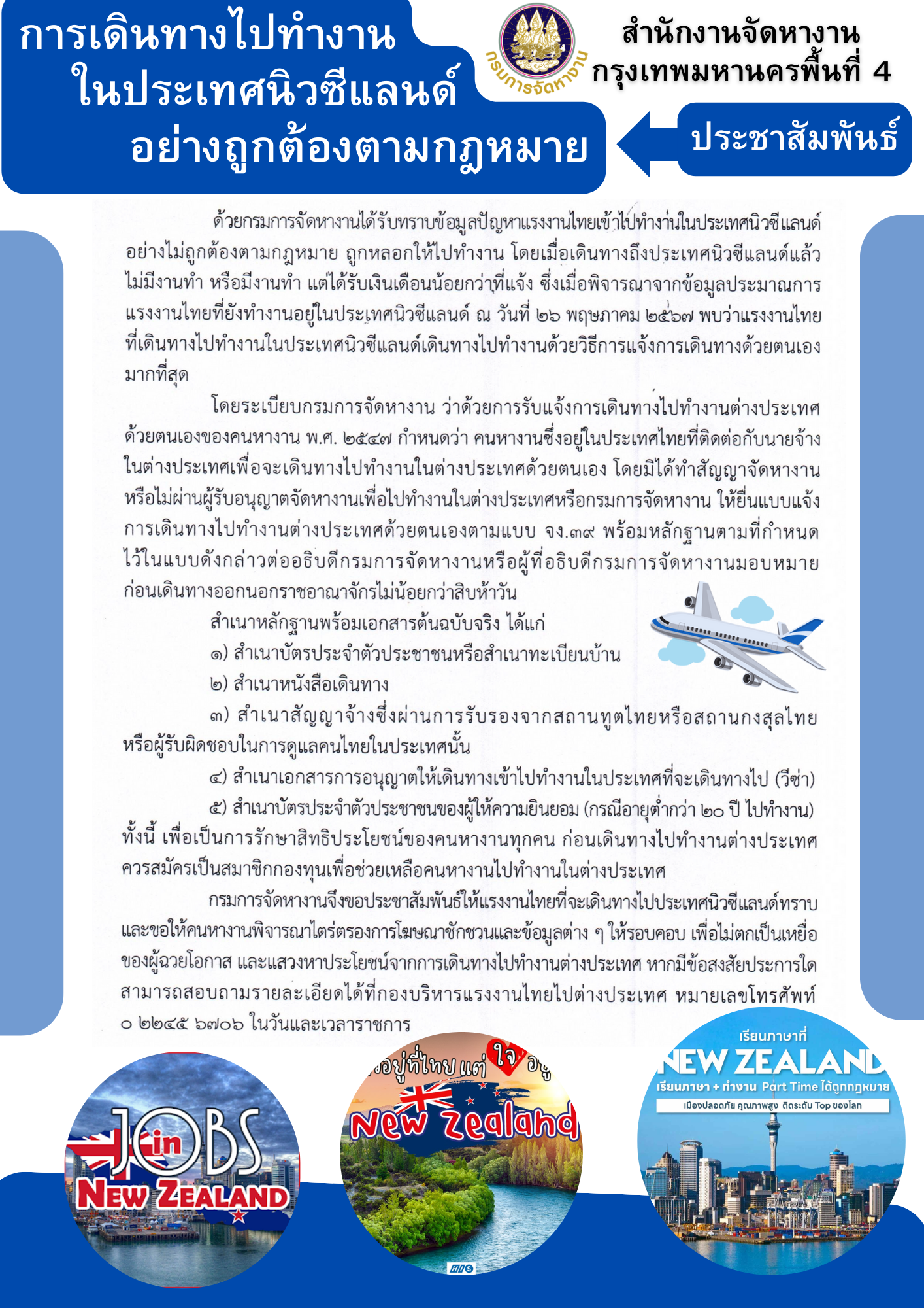 ประชาสัมพันธ์ การเดินทางไปทำงานในประเทศนิวซีแลนด์อย่างถูกต้องตามกฎหมาย