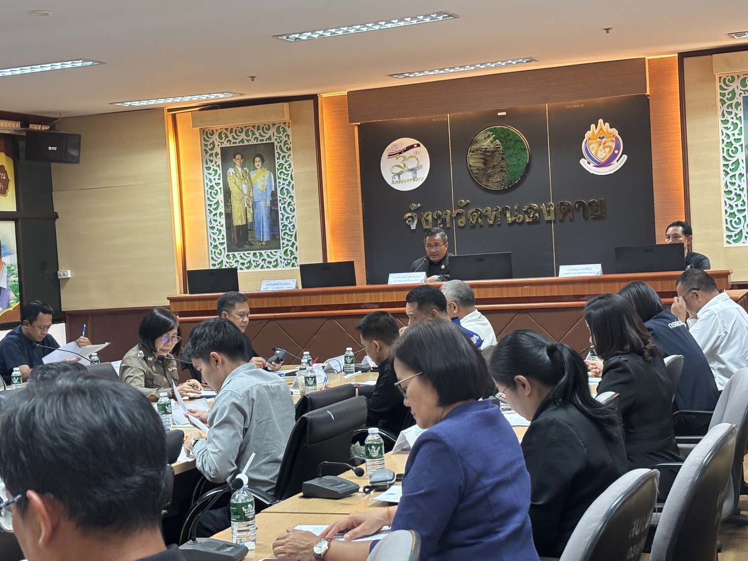 วันที่ 24 กุมภาพันธ์ 2569 เวลา 14.00 น. นายเจษฎา วรรณสาย จัดหางานจังหวัดหนองคาย มอบหมายให้นายไพรัช หมื่นตูม นักวิชาการแรงงานชำนาญการพิเศษ พร้อมด้วยเจ้าหน้าที่สำนักงานจัดหางานจังหวัดหนองคาย ร่วมประชุมติดตามความคืบหน้าผลการเตรียมการจัดงาน "ฉลองอนุสาวรีย์ปราบฮ่อใต้ร่มพระบารมีเมืองหนองคาย และงานกาชาด พ.ศ.2569" ณ ห้องประชุมปทุมเทวาภิบาล ชั้น 4 ศาลากลางจังหวัดหนองคาย อำเภอเมืองหนองคาย จังหวัดหนองคาย โดยมีนายศรัญย์ศักดิ์ ศรีเครือเนตร ผู้ว่าราชการจังหวัดหนองคาย เป็นประธานในพิธีฯ