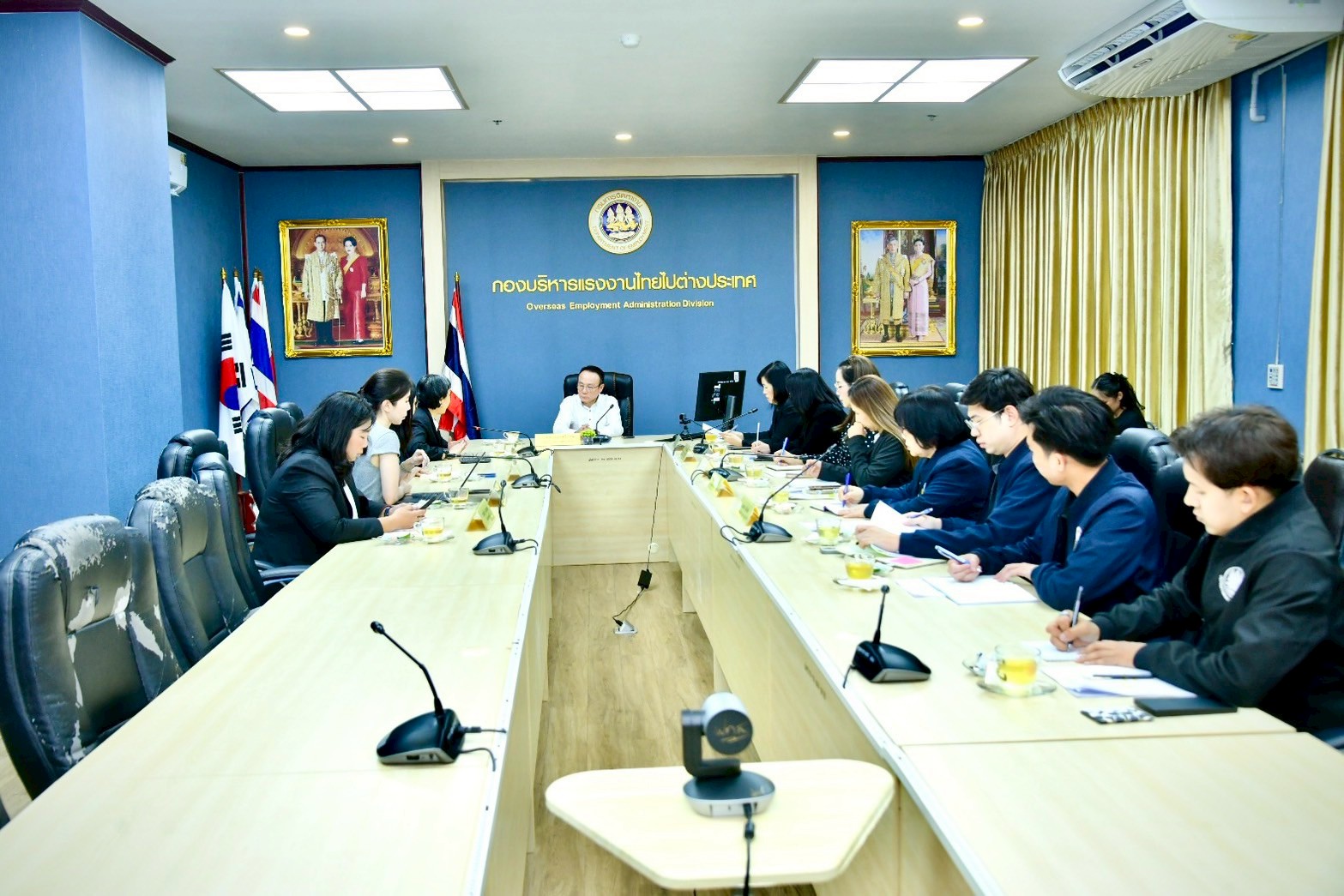 วันที่ 11 มีนาคม 2569 เวลา 14.00 น. นายสมชาย มรกตศรีวรรณ อธิบดีกรมการจัดหางาน ให้การต้อนรับนางสาวจุลลดา มีจุล ผู้อำนวยการสถาบันคุณวุฒิวิชาชีพ (องค์การมหาชน) และคณะ ในโอกาสเข้าพบเพื่อหารือข้อราชการในประเด็นความร่วมมือระหว่างสถาบันคุณวุฒิวิชาชีพ (องค์การมหาชน) กับ Human Resources Development Service of Korea เกี่ยวกับการดำเนินงานความร่วมมือเพื่อการยอมรับคุณวุฒิช่างเชื่อมร่วมกัน โดยมีนางสาวทิพวรรณ ธงศรี ผู้อำนวยการกองบริหารแรงงานไทยไปต่างประเทศ เจ้าหน้าที่ และหน่วยงานที่เกี่ยวข้องร่วมประชุม ณ ห้องประชุมกองบริหารแรงงานไทยไปต่างประเทศ ชั้น 10 อาคารสำนักงานประกันสังคมกรุงเทพมหานครพื้นที่ 3