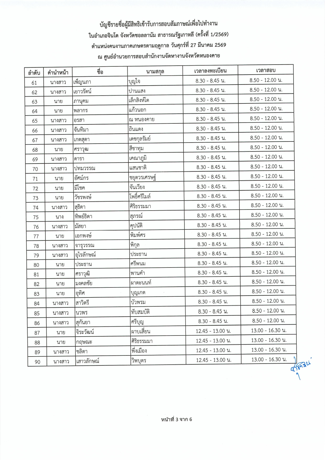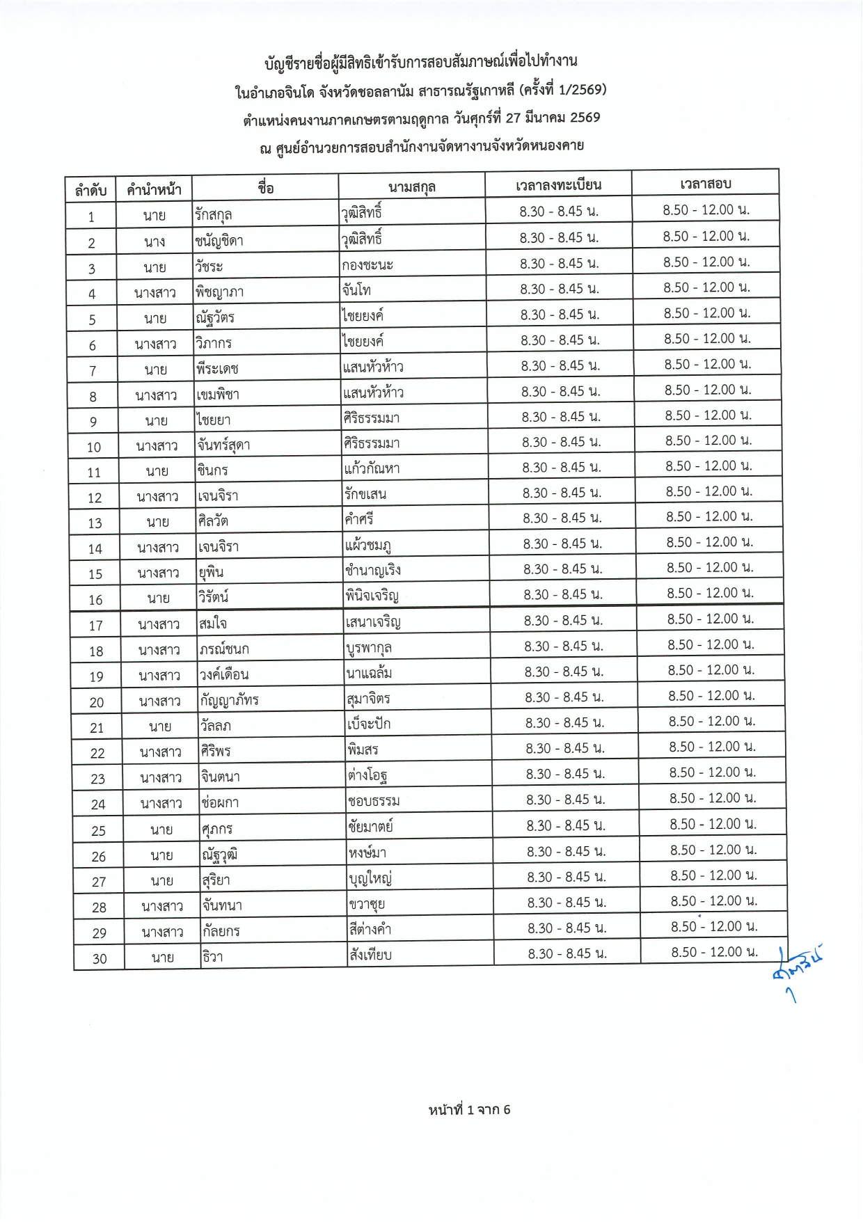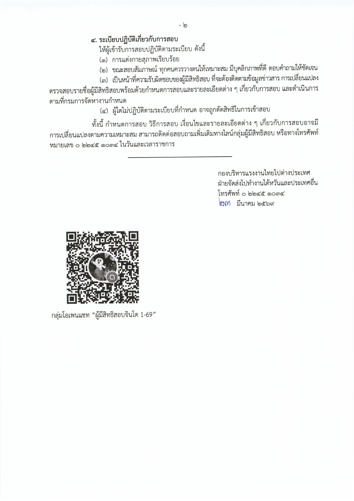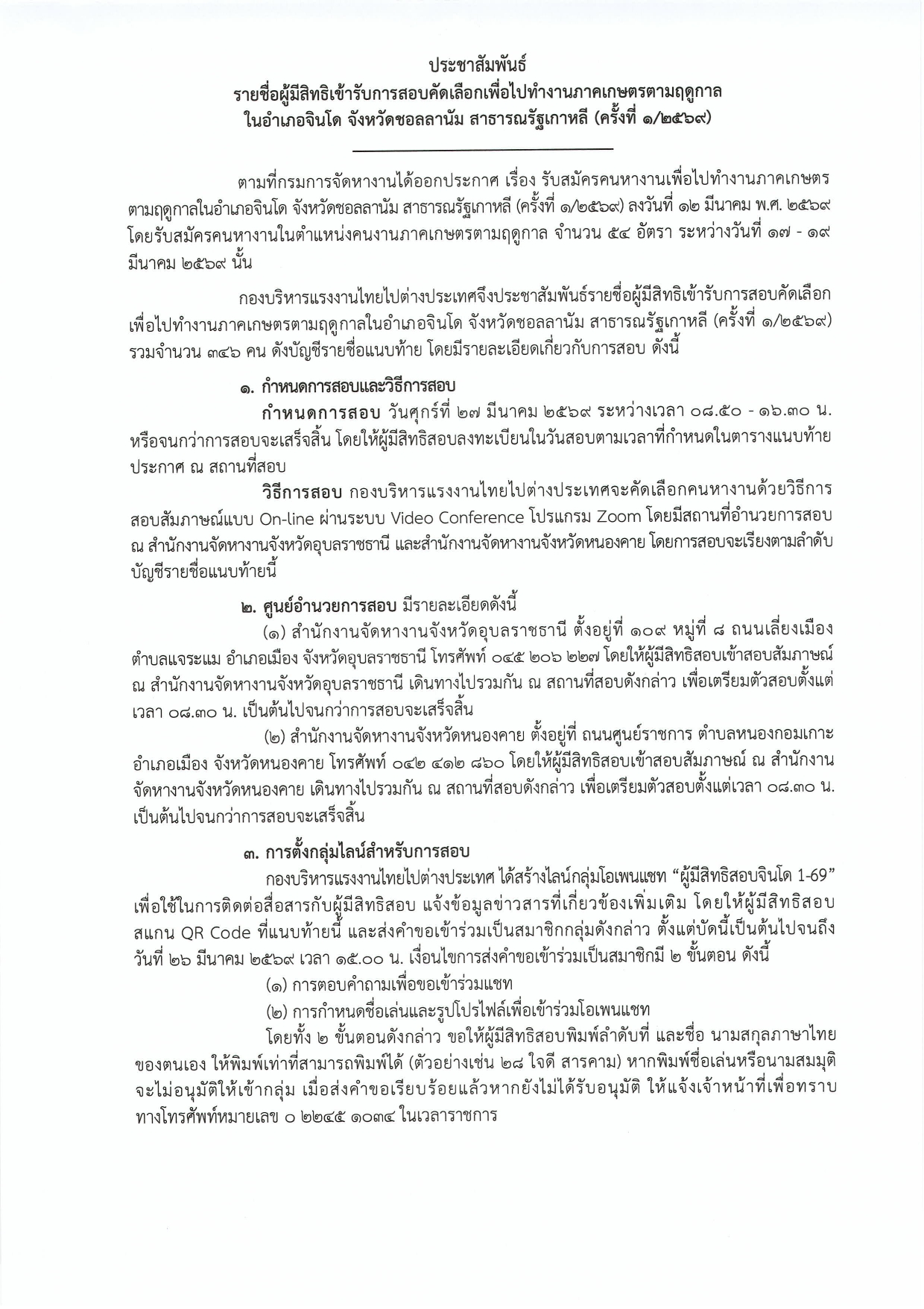 ประชาสัมพันธ์ รายชื่อผู้มีสิทธิเข้ารับการสอบคัดเลือกเพื่อไปทำงานภาคเกษตรตามฤดูกาลในอำเภอจินโด จังหวัดชอลลานัม สาธารณรัฐเกาหลี (ครั้งที่ 1/2569)
