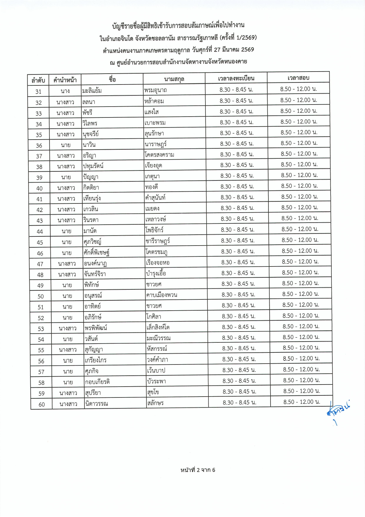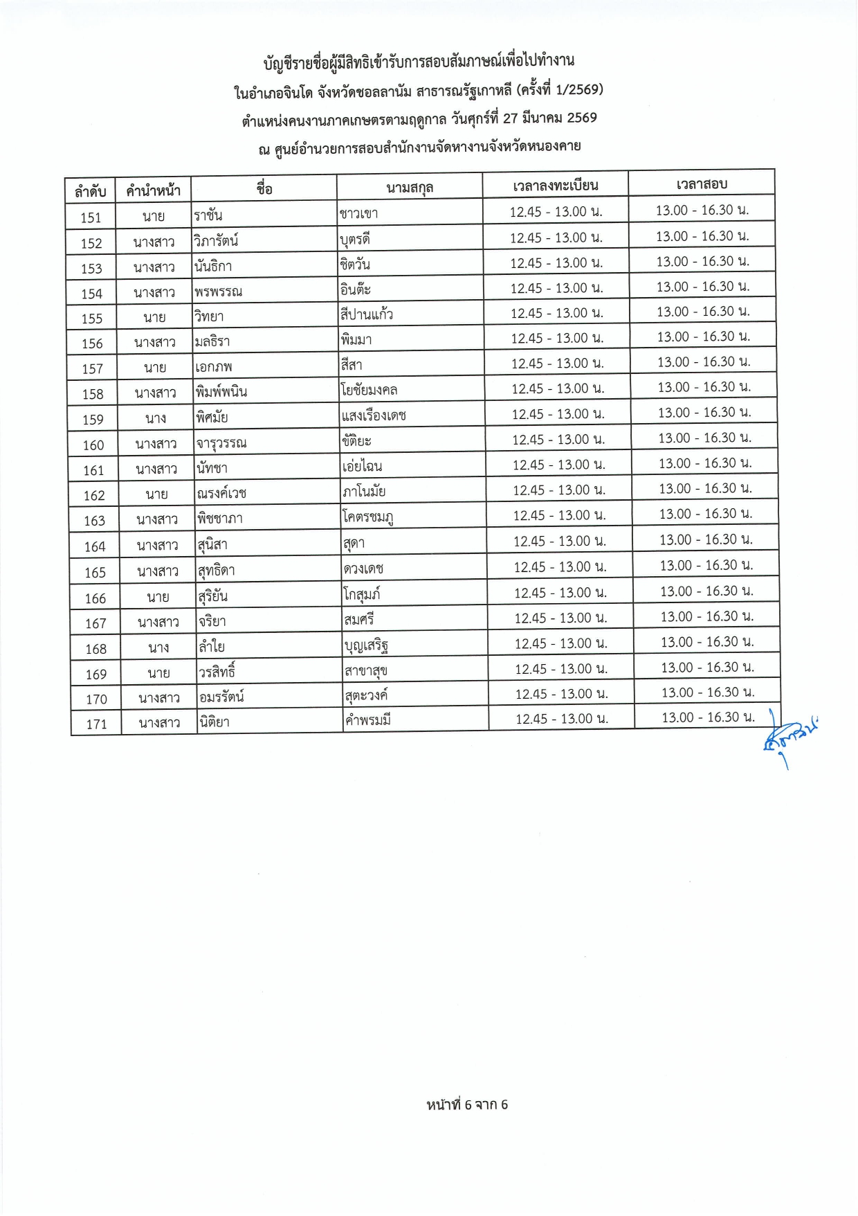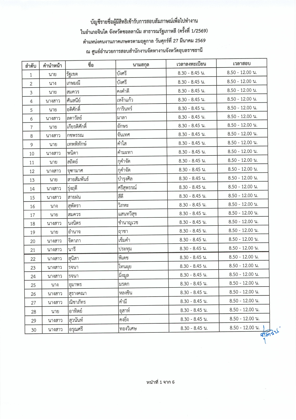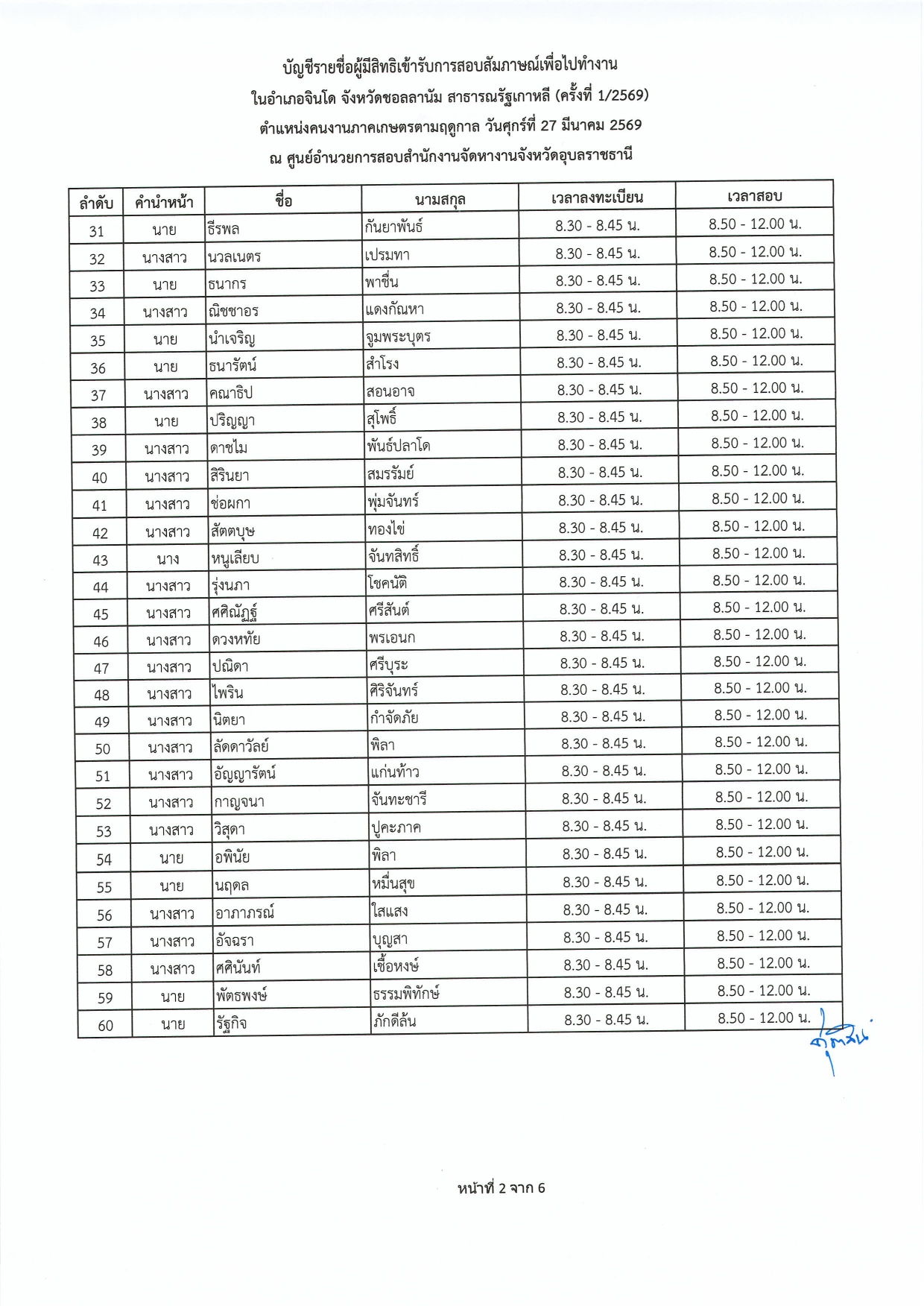 ประชาสัมพันธ์ รายชื่อผู้มีสิทธิเข้ารับการสอบคัดเลือกเพื่อไปทำงานภาคเกษตรตามฤดูกาลในอำเภอจินโด จังหวัดชอลลานัม สาธารณรัฐเกาหลี (ครั้งที่ 1/2569)