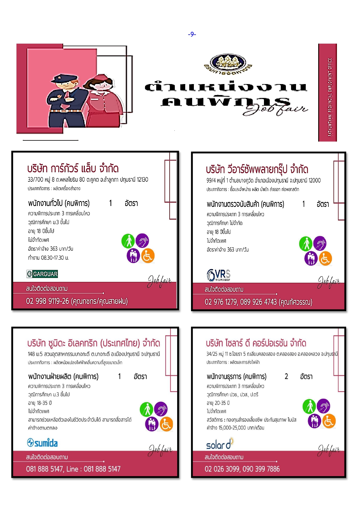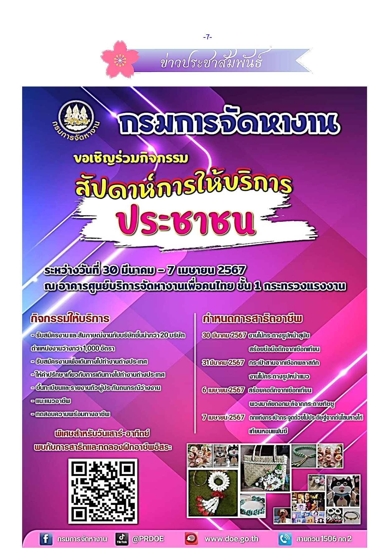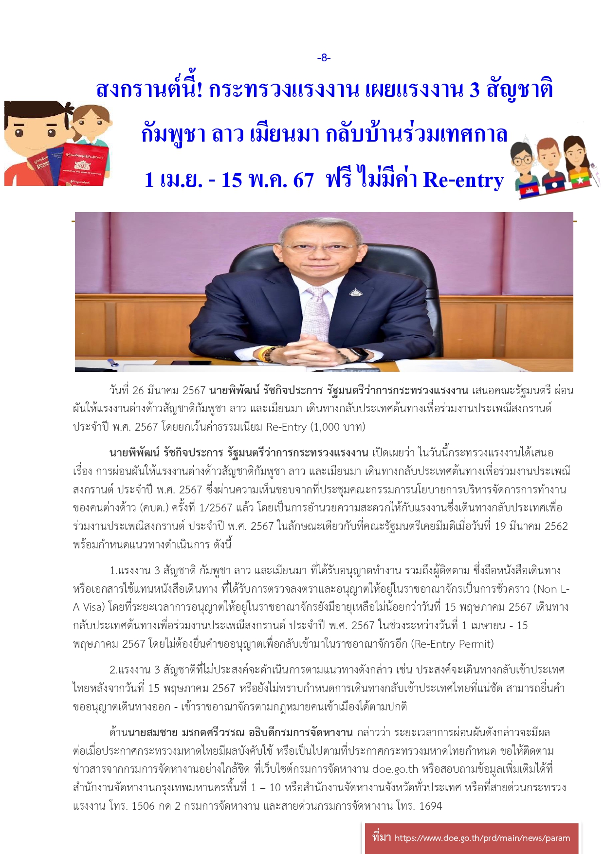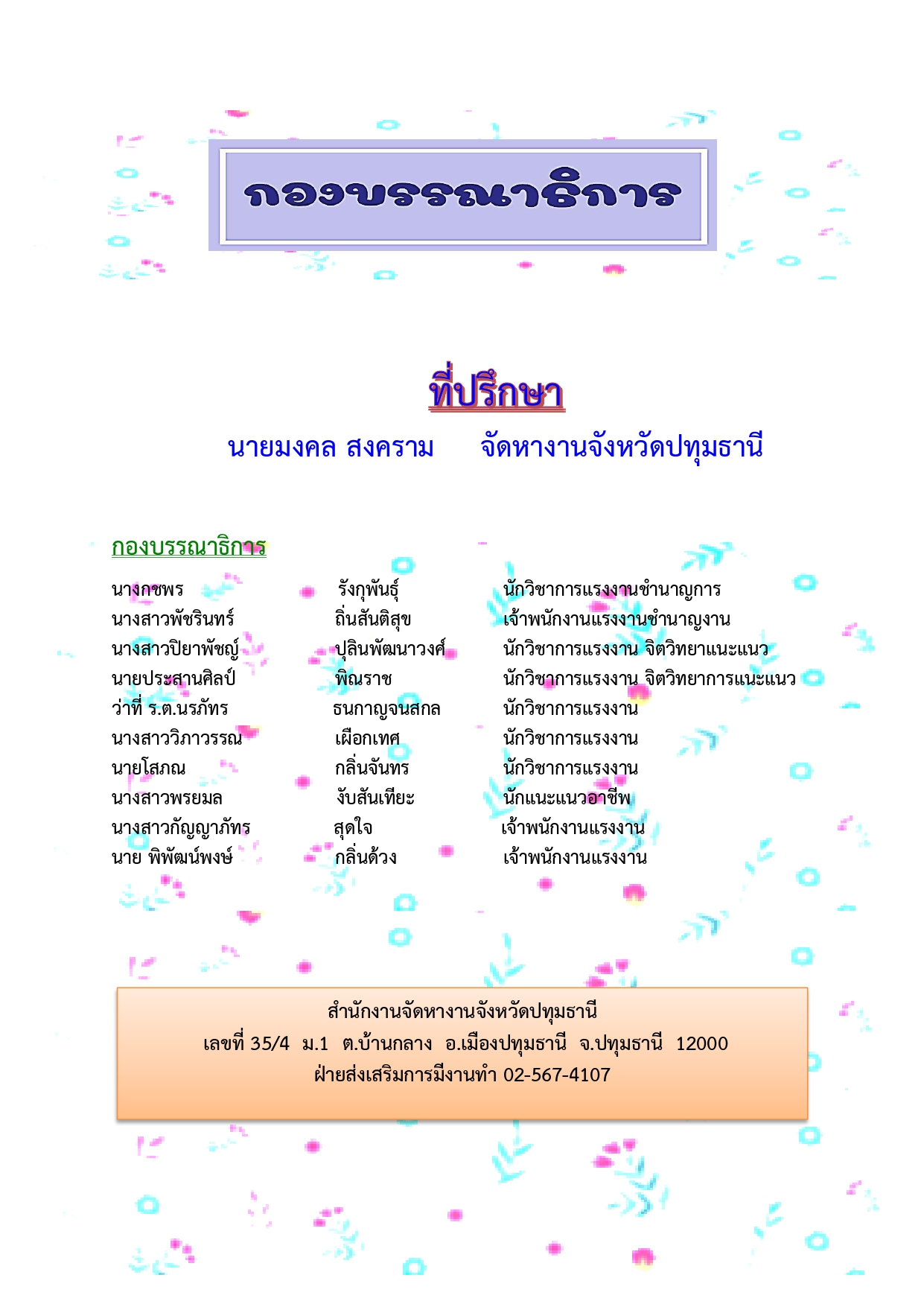 โทรศัพท์ : งานต่างด้าว 025670630 งานว่างงาน 025674107,งานต่างประเทศ 025670632 งานบริหาร 025670633