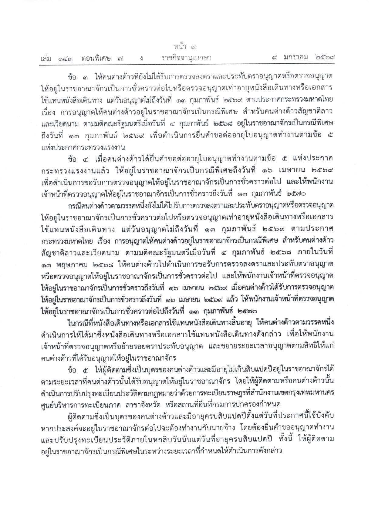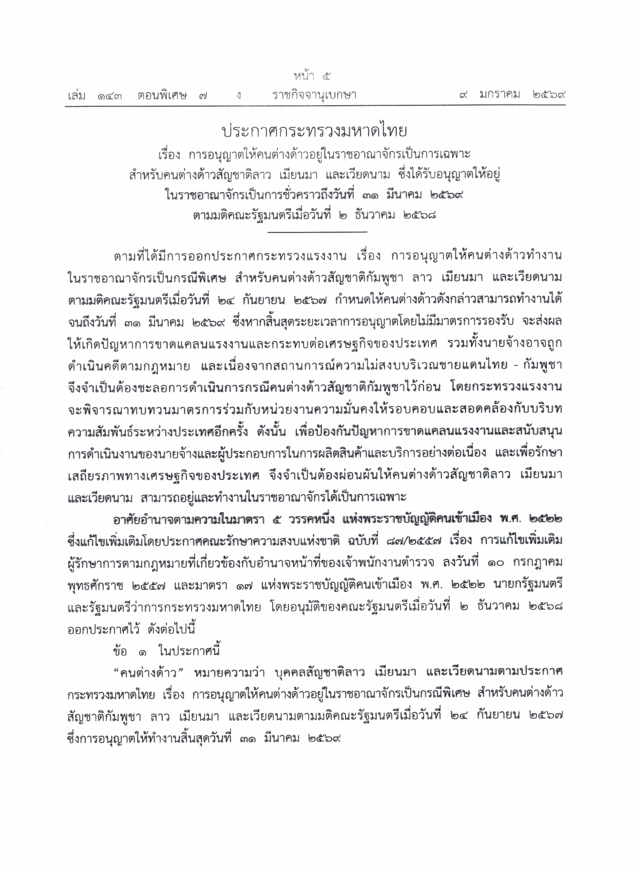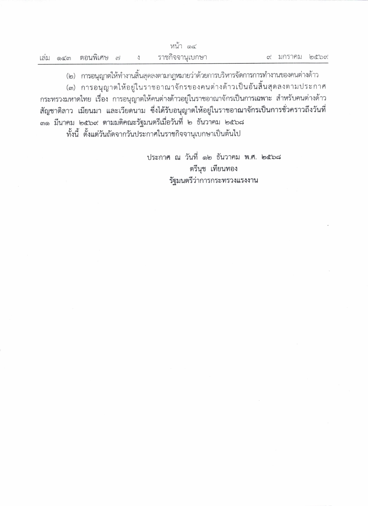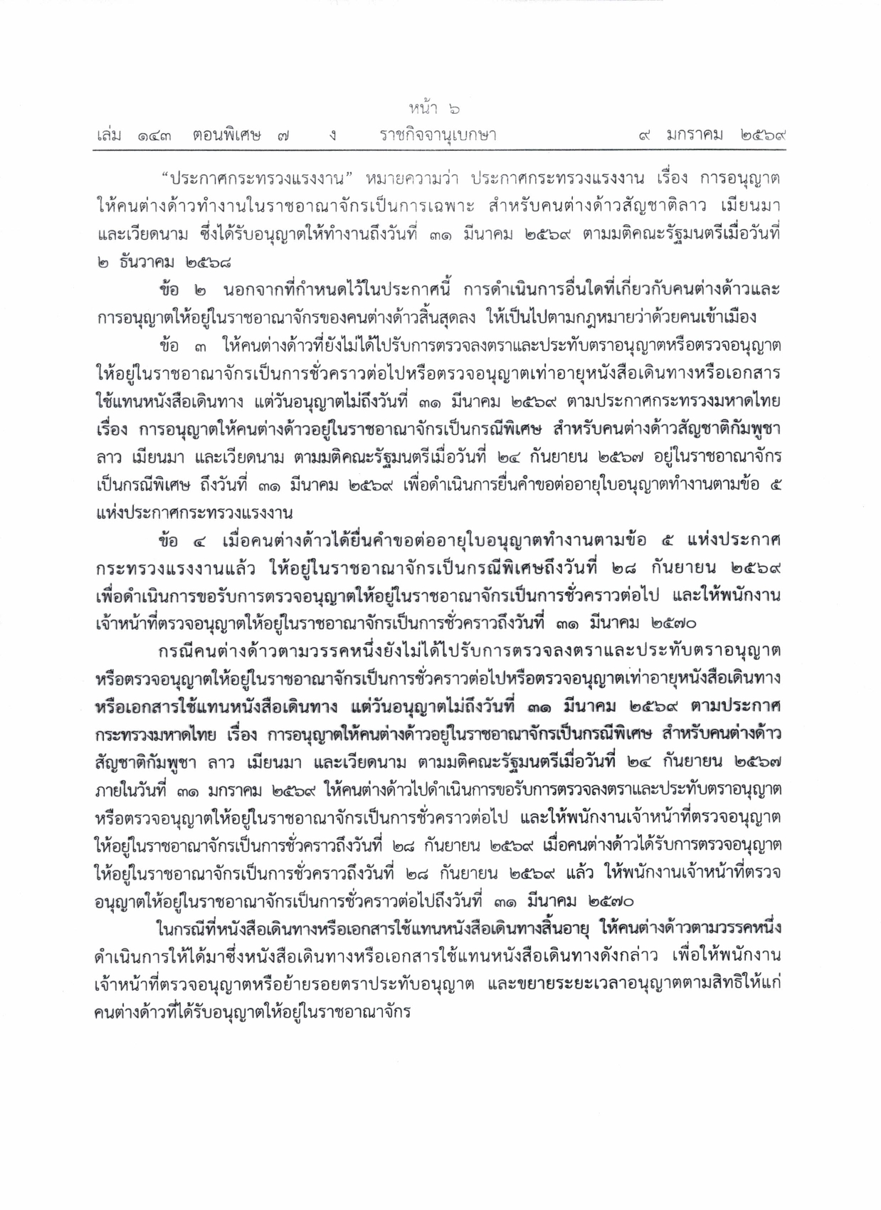 ประชาสัมพันธ์แนวทางการต่ออายุใบอนุญาตทำงานตามมติคณะรัฐมนตรีเมื่อวันที่ ๒ ธันวาคม ๒๕๖๘ ให้กับคนต่างด้าวสัญชาติลาว เมียนมา และเวียดนาม ที่ได้รับอนุญาตทำงานตามมติคณะรัฐมตรีเมื่อวันที่ ๒๔ กันยายน ๒๕๖๗ และวันที่ ๔ กุมภาพันธ์ ๒๕๖๘