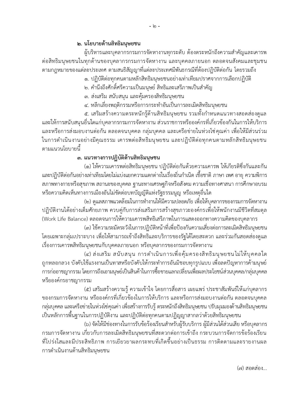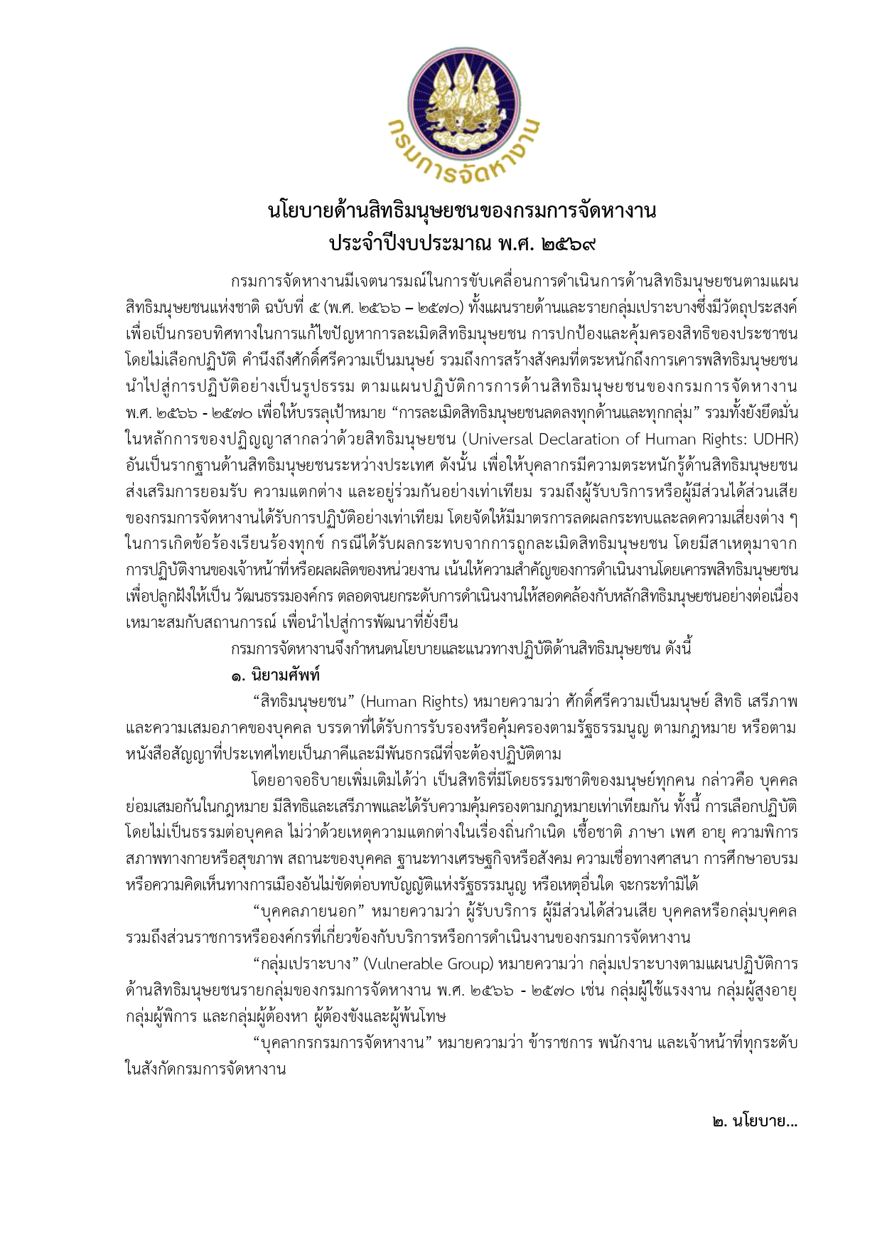 นโยบายด้านสิทธิมนุษยชนของกรมการจัดหางาน ประจำปีงบประมาณ พ.ศ. ๒๕๖๙