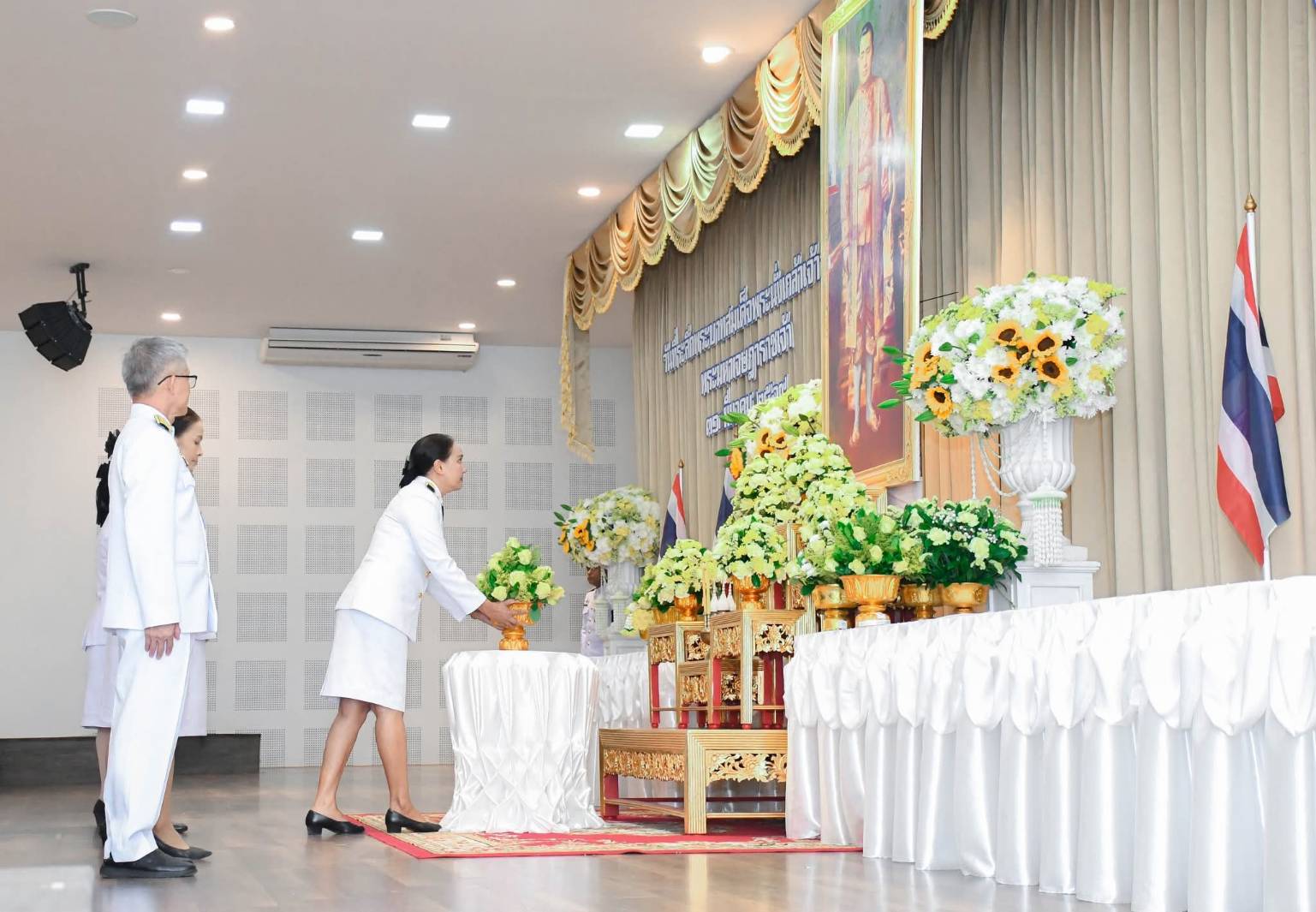 นางเรณู ขุนเศรษฐ์ จัดหางานจังหวัดพัทลุง เข้าร่วมพิธีถวายพานพุ่มดอกไม้ เครื่องราชสักการะ และกล่าวถวายราชสดุดี เพื่อน้อมสำนึกในพระมหากรุณาธิคุณ พระบาทสมเด็จพระนั่งเกล้าเจ้าอยู่หัว พระมหาเจษฎาราชเจ้า ณ หอประชุมจังหวัดพัทลุง อำเภอเมืองพัทลุง จังหวัดพัทลุง โดยมีนายสุจินต์ วาจากิจ ผู้ว่าราชการจังหวัดพัทลุง เป็นประธานในพิธี