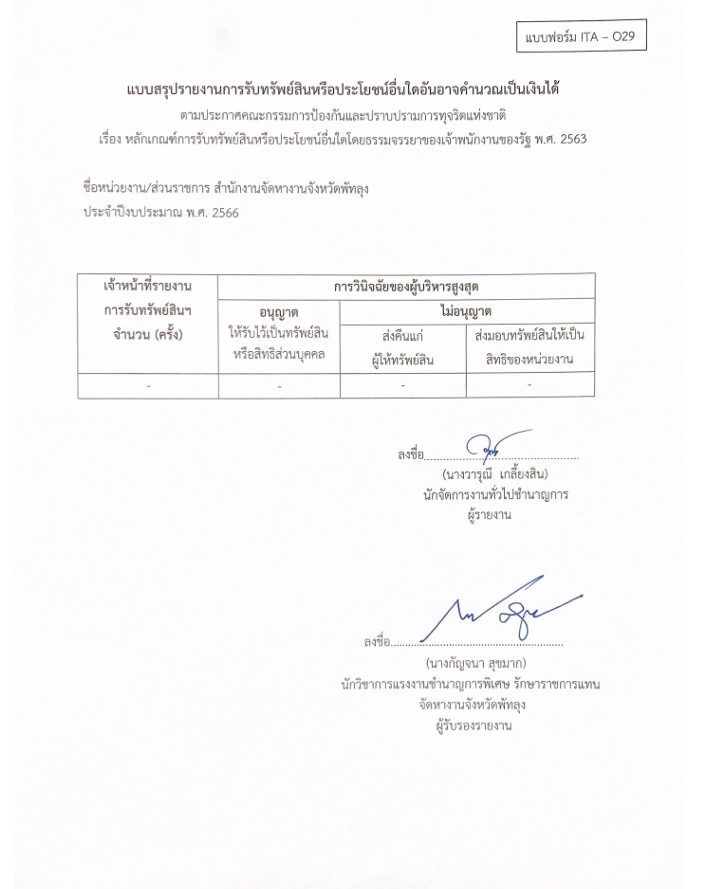 รายงานการรับทรัพย์สินหรือประโยชน์อื่นใดโดยธรรมจรรยา