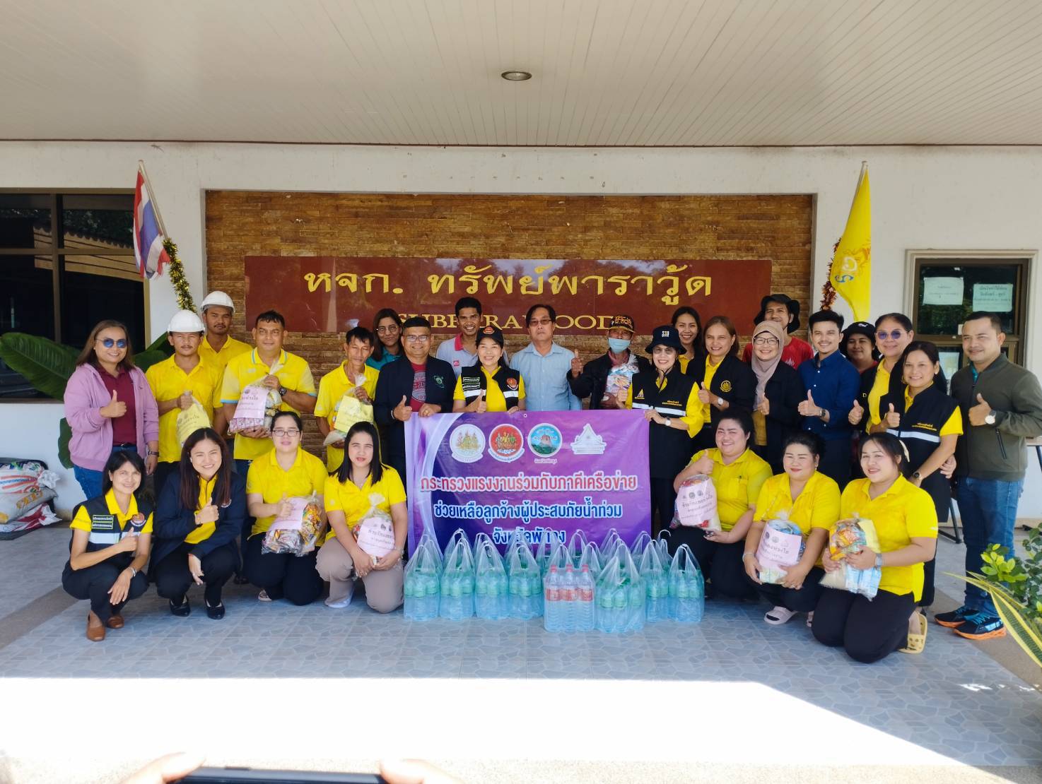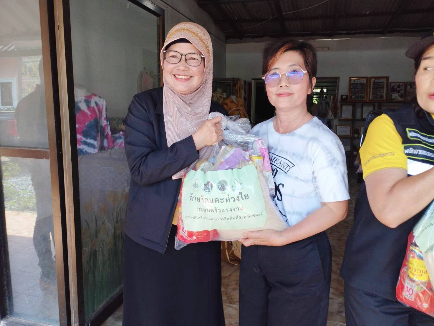 นางกัญจนา สุขมาก นักวิชาการแรงงานชำนาญการพิเศษ รักษาราชการแทน จัดหางานจังหวัดพัทลุง ร่วมกับหัวหน้าส่วนราชการสังกัดกระทรวงแรงงานและภาคีเครือข่าย ลงพื้นที่เพื่อเป็นกำลังใจและมอบถุงยังชีพช่วยเหลือครอบครัวแรงงาน ลูกจ้างที่ทำงานในสถานประกอบการ รวมถึงกลุ่มผู้รับงานไปทำที่บ้านที่ได้รับผลกระทบจากอุทกภัยในพื้นที่จังหวัดพัทลุง จำนวน 11 แห่ง ณ อำเภอป่าบอน อำเภอบางแก้ว อำเภอตะโหมด และอำเภอเมืองพัทลุง จังหวัดพัทลุง